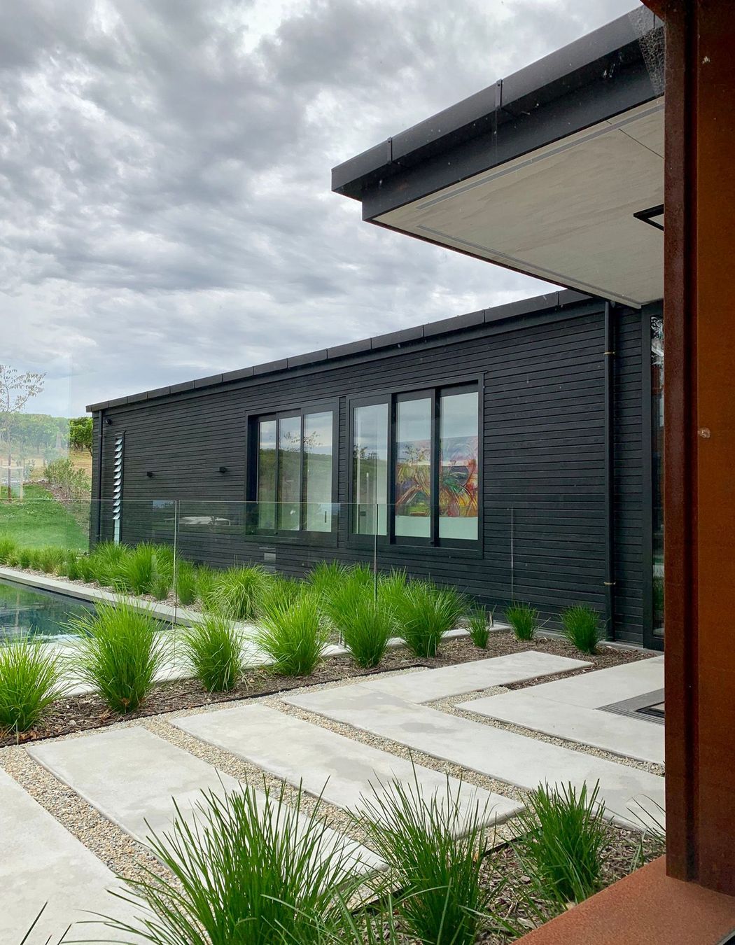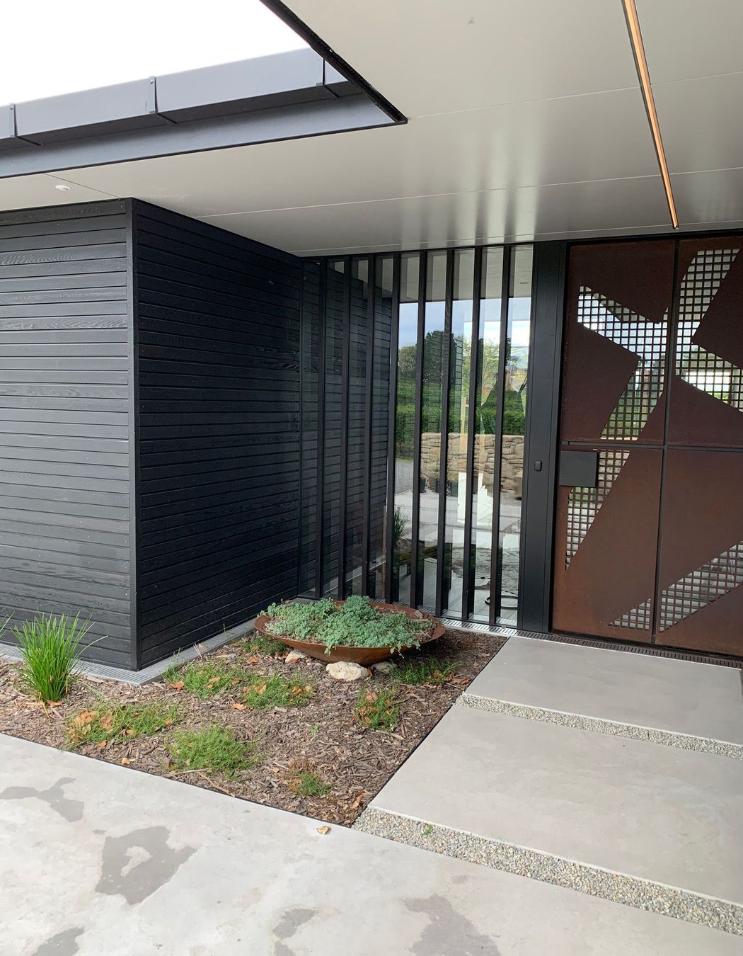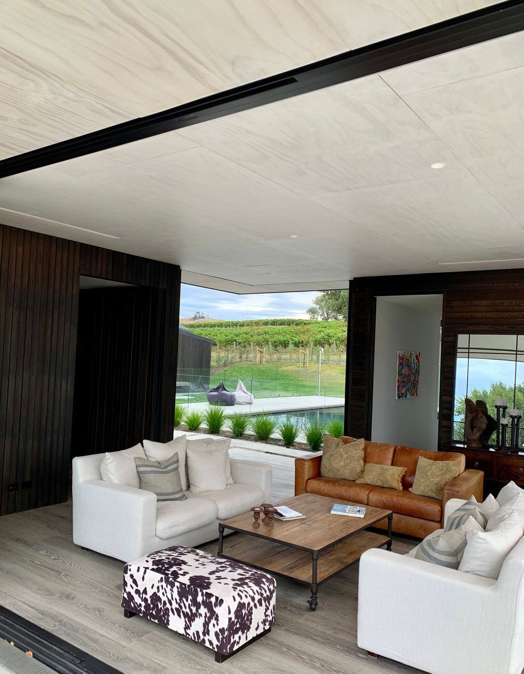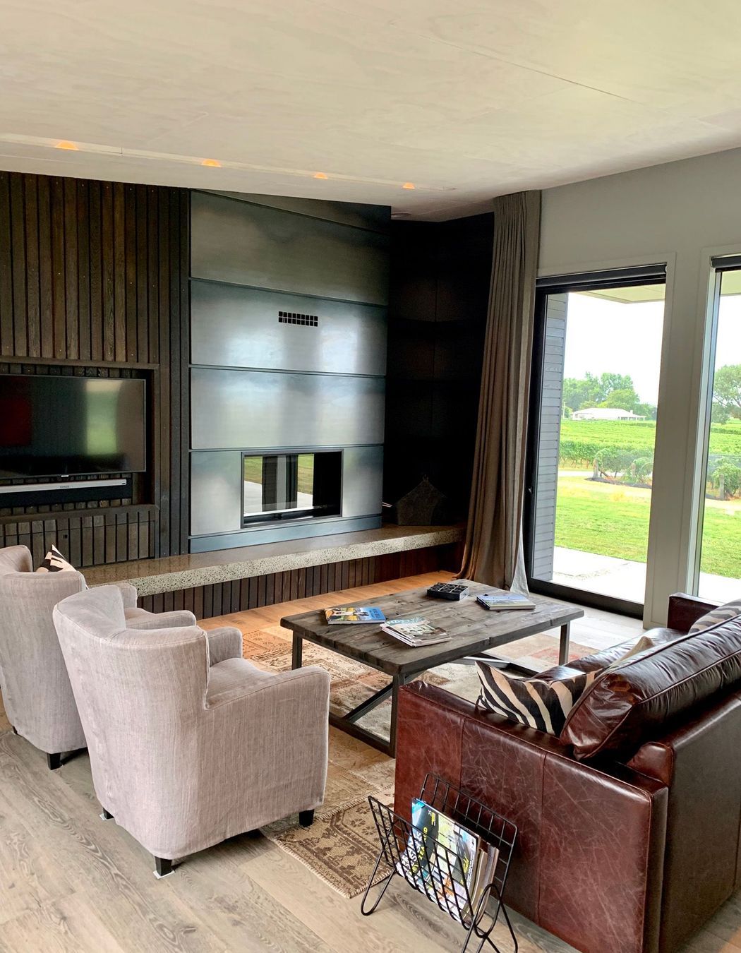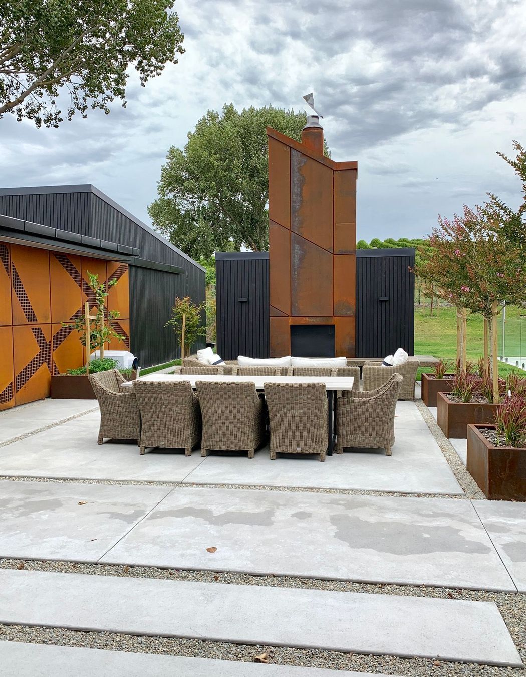 ArchiPro Project Summary - Award-winning modern home in rural Napier, featuring cedar and Corten steel cladding, four bedrooms, four bathrooms, and expansive views of the east coast and local vineyards, designed around a central courtyard for seamless indoor-outdoor living.