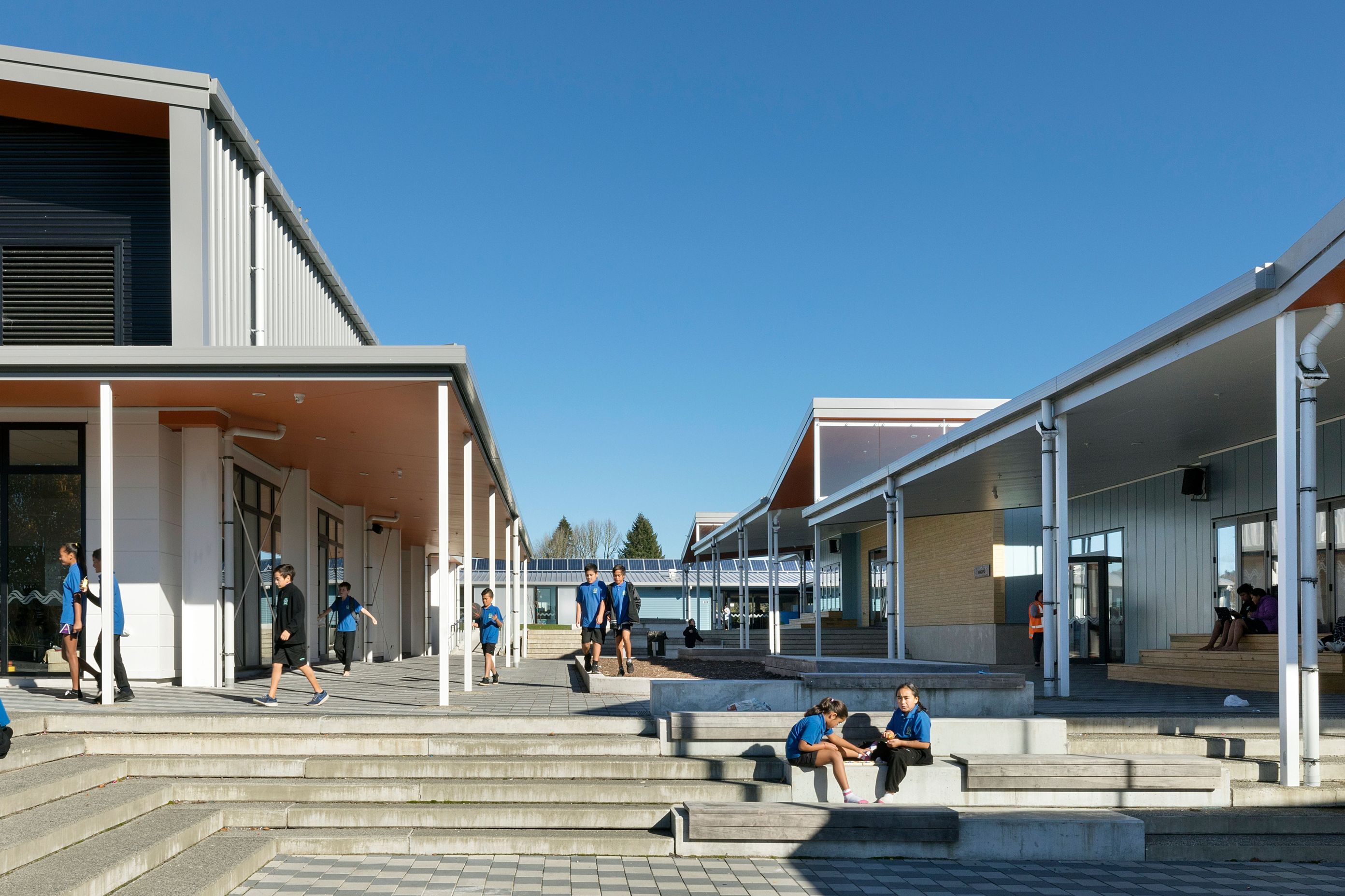ArchiPro Project Summary - Innovative educational facility blending modern design with cultural heritage, featuring 80% new construction and 20% redevelopment, accommodating students from preschool to Year 13, and inspired by local natural elements.