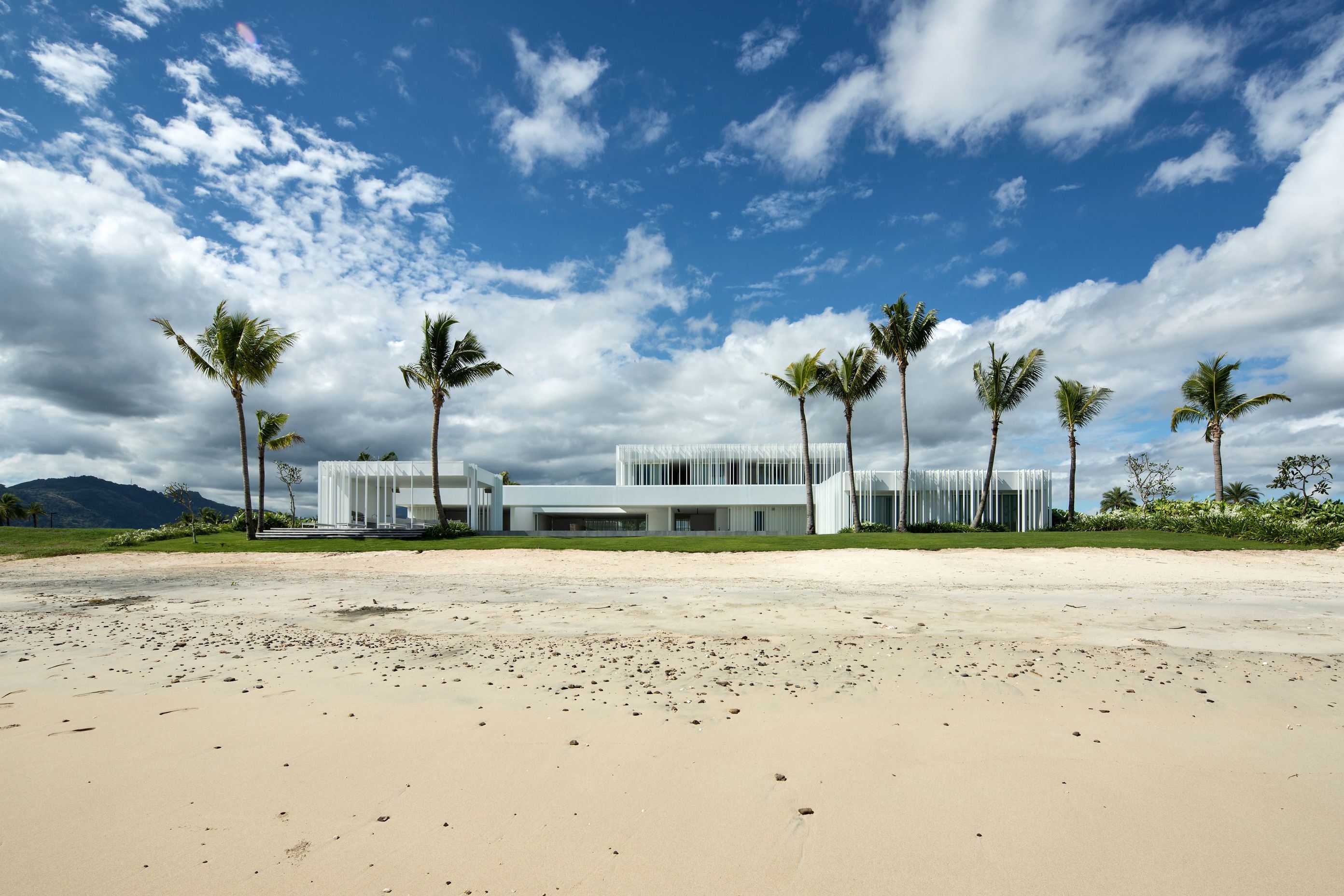 ArchiPro Project Summary - Tropical home on Naisoso Island, Fiji, blending security with contemporary living, featuring local materials, cyclone-resistant design, and stunning views of the Mamanuca and Yasawa islands.