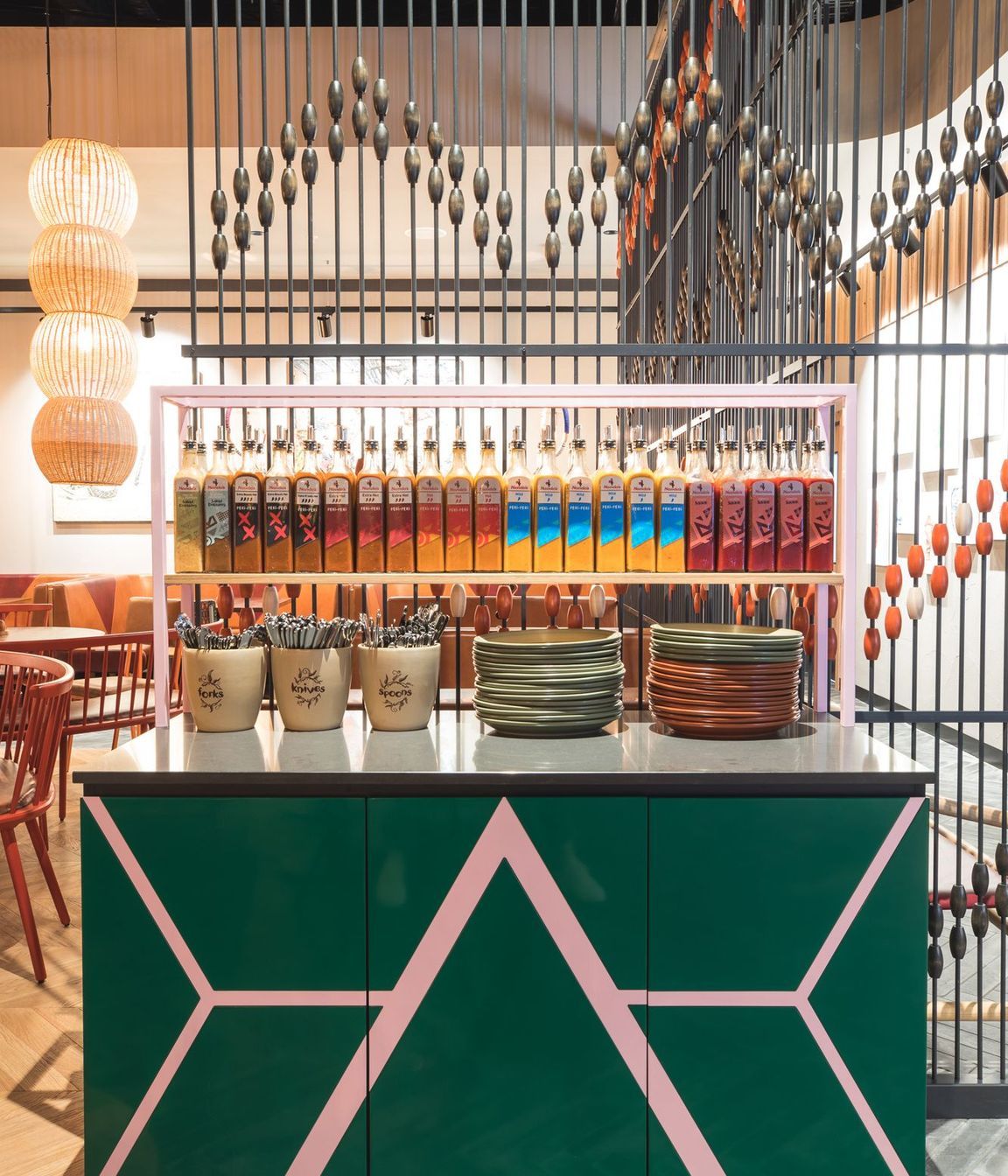 ArchiPro Project Summary - Joinery installation for Nando's flagship store at Sylvia Park, featuring a unique South African concept and Australian architectural design, including a curved counter, serving counters, feature screens, and custom cabinetry.