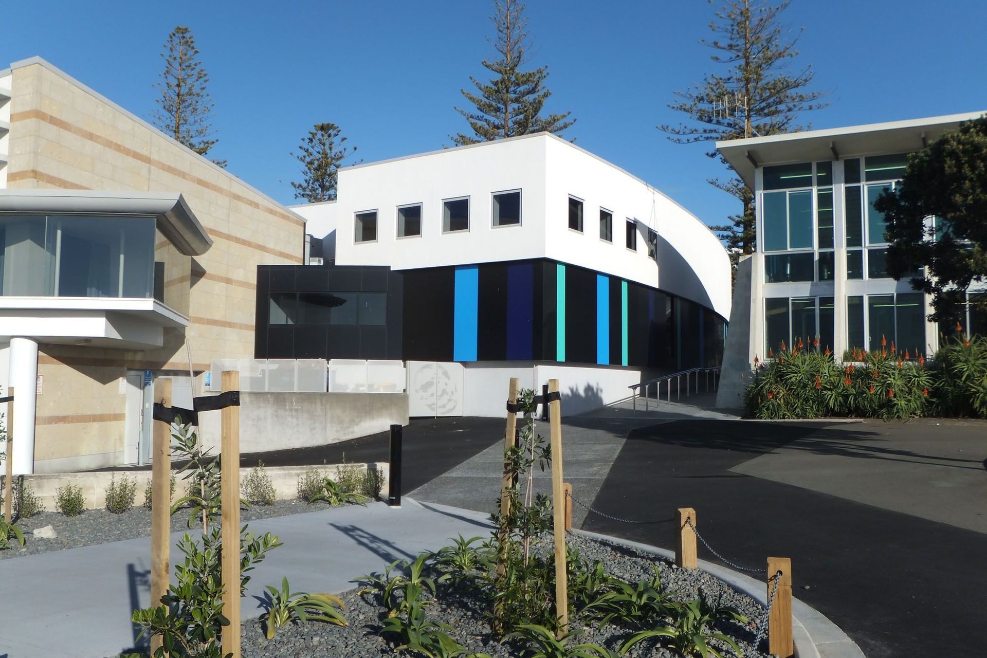 ArchiPro Project Summary - Comprehensive upgrade of the Napier Conference Centre featuring a new exhibition hall, expanded entry foyer, and enhanced seismic resilience, creating a vibrant urban space with a striking façade inspired by the colors of paua shell.