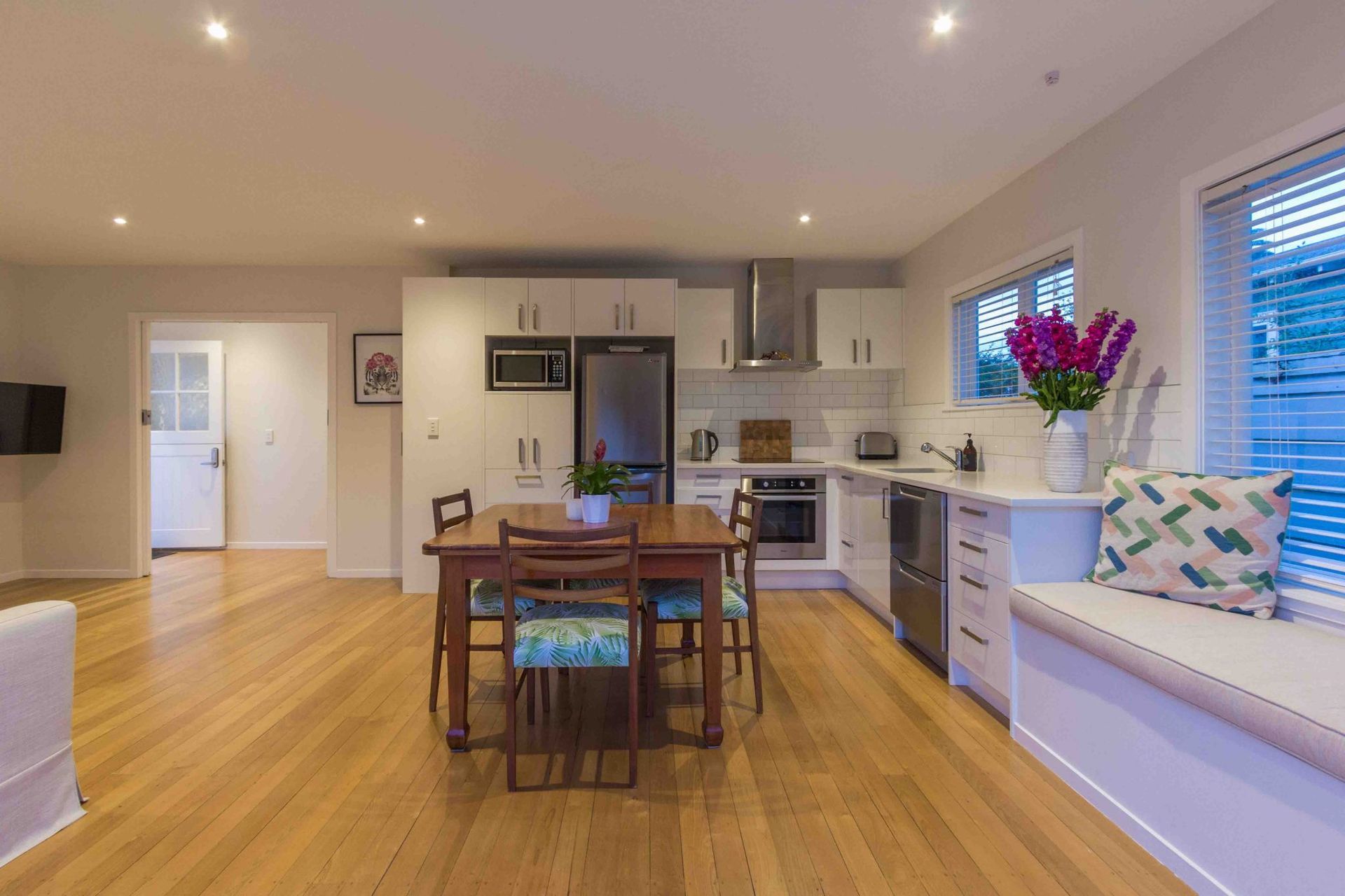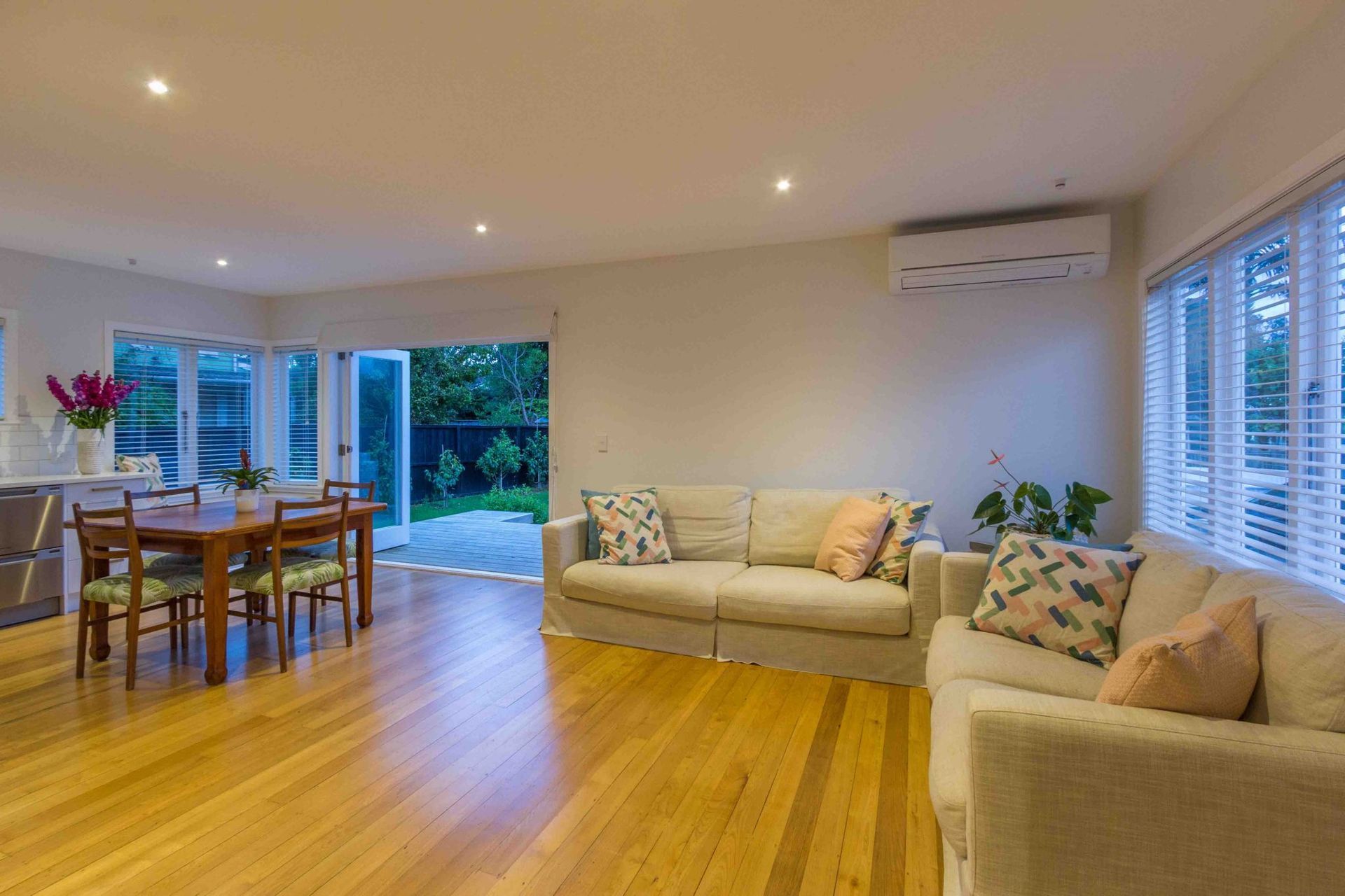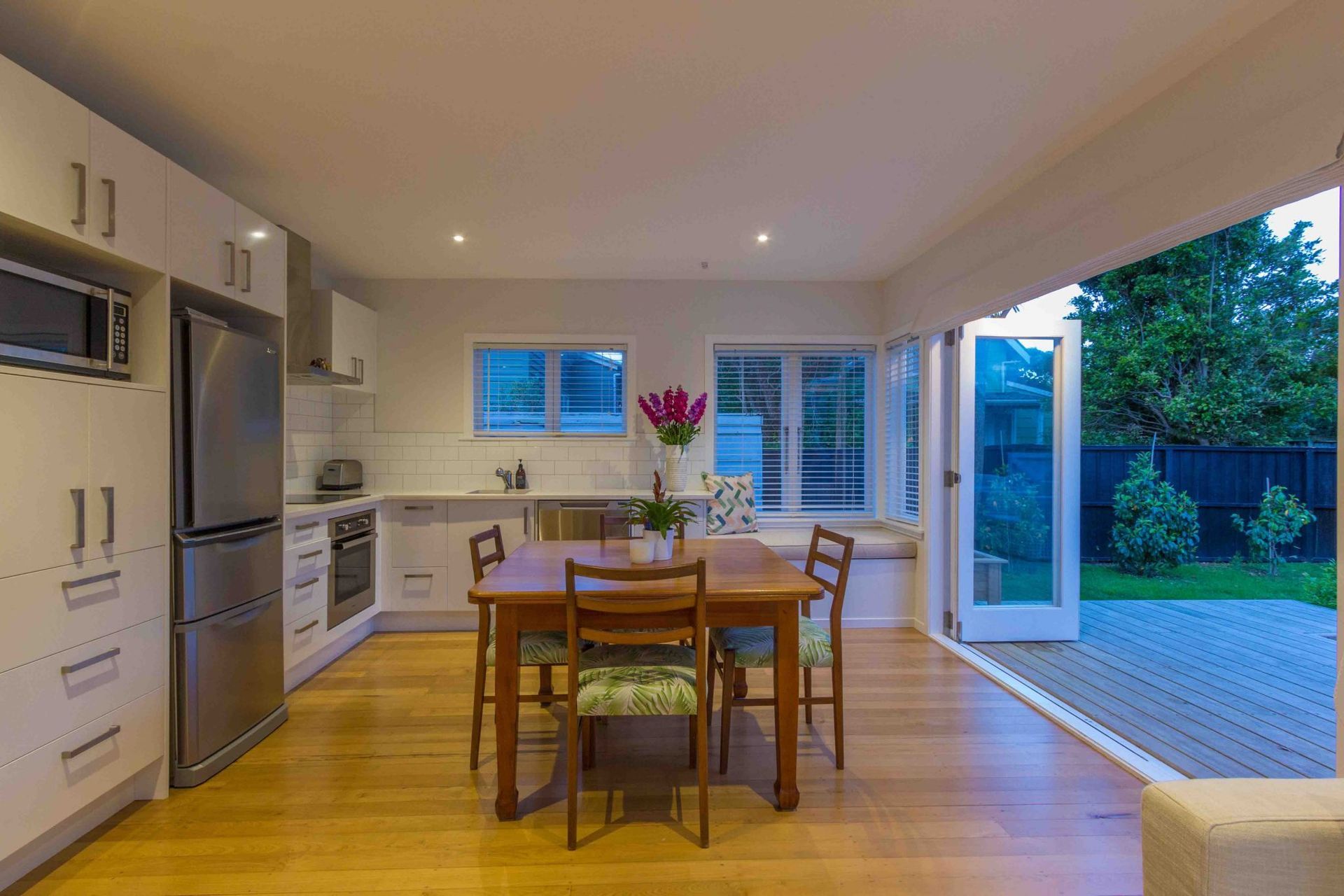 ArchiPro Project Summary - Comprehensive renovation transforming a neglected unit in Narrow Neck into a modern, inviting home with enhanced indoor-outdoor flow, additional bedroom and en-suite, restored matai flooring, and extensive outdoor decking.