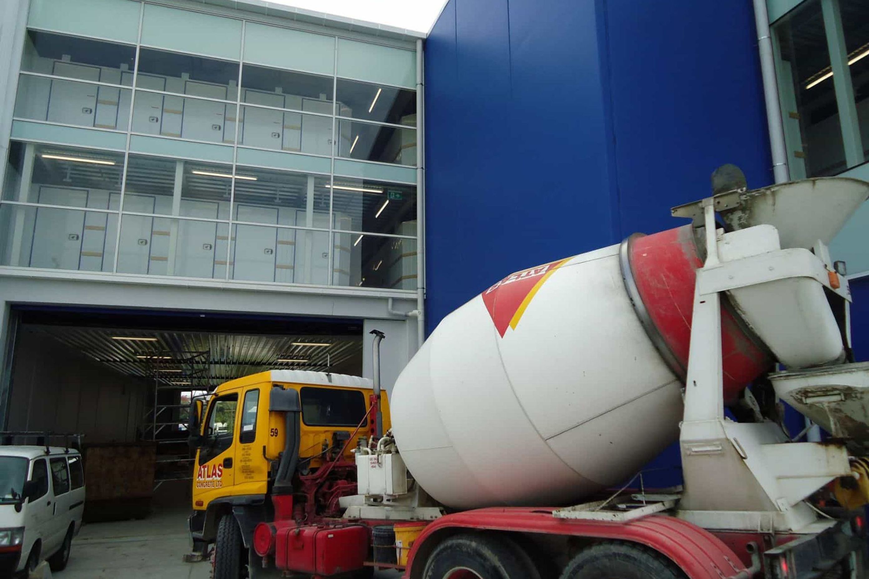ArchiPro Project Summary - Extension of National Mini Storage in Albany featuring over 1200 cubic meters of specialized concrete mixes for foundations, suspended floor slabs, and site works, including a custom pumpable mix for shrinkage cracking reduction.