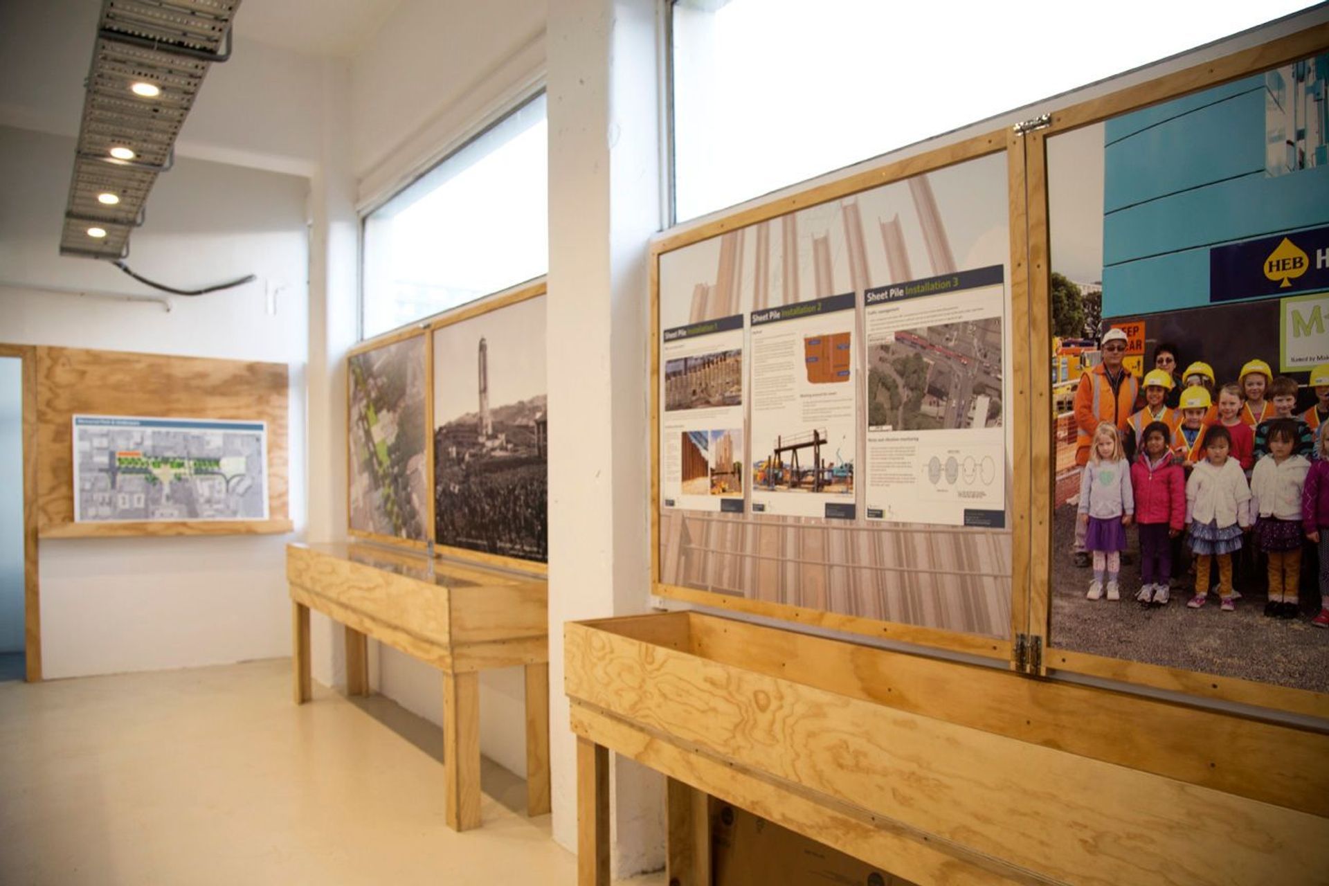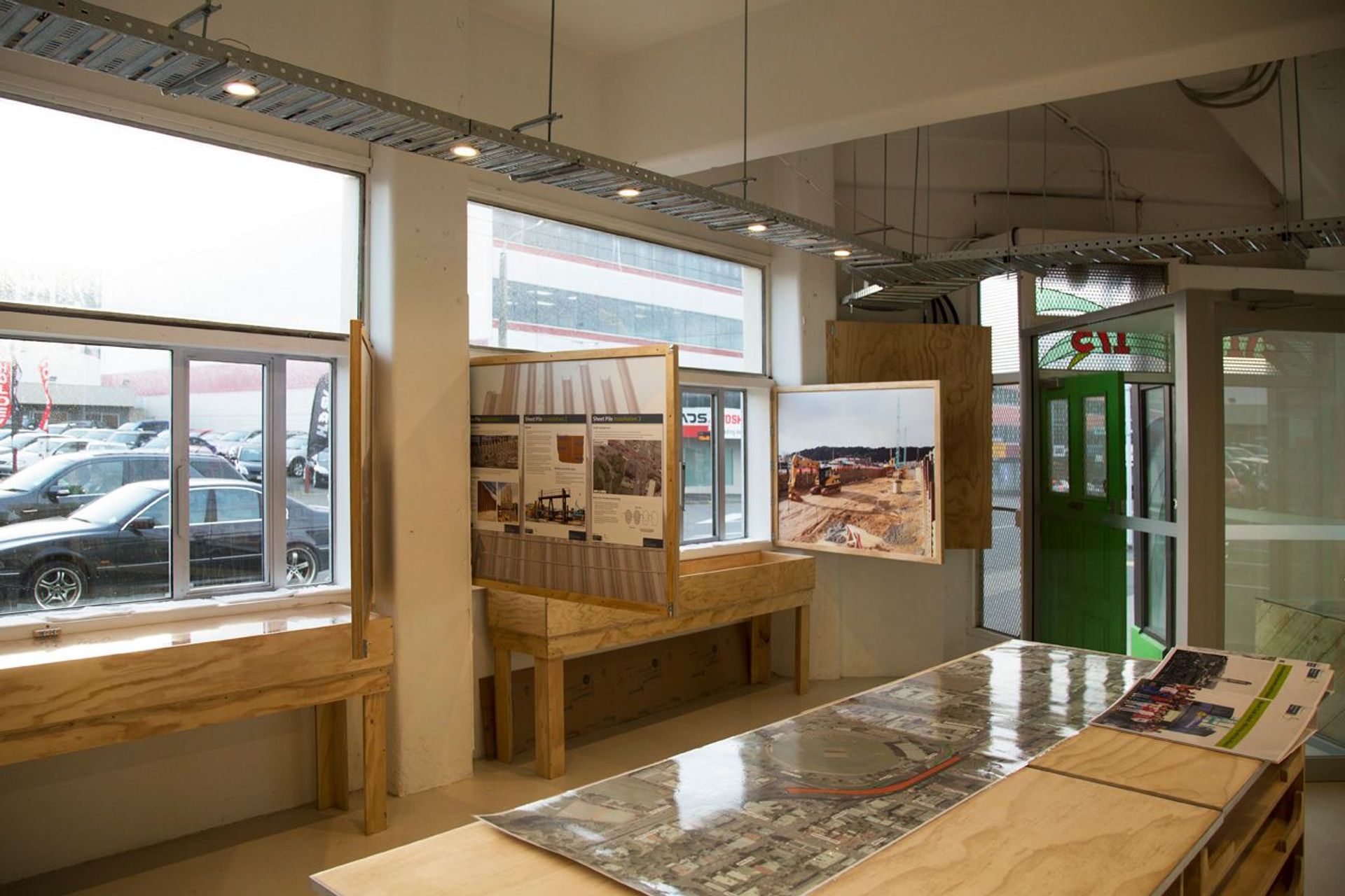 ArchiPro Project Summary - Development of temporary office facilities and community outreach gallery space for the National War Memorial Park project, involving the conversion of upper floor apartments and a disused garage by the Memorial Park Alliance Team.