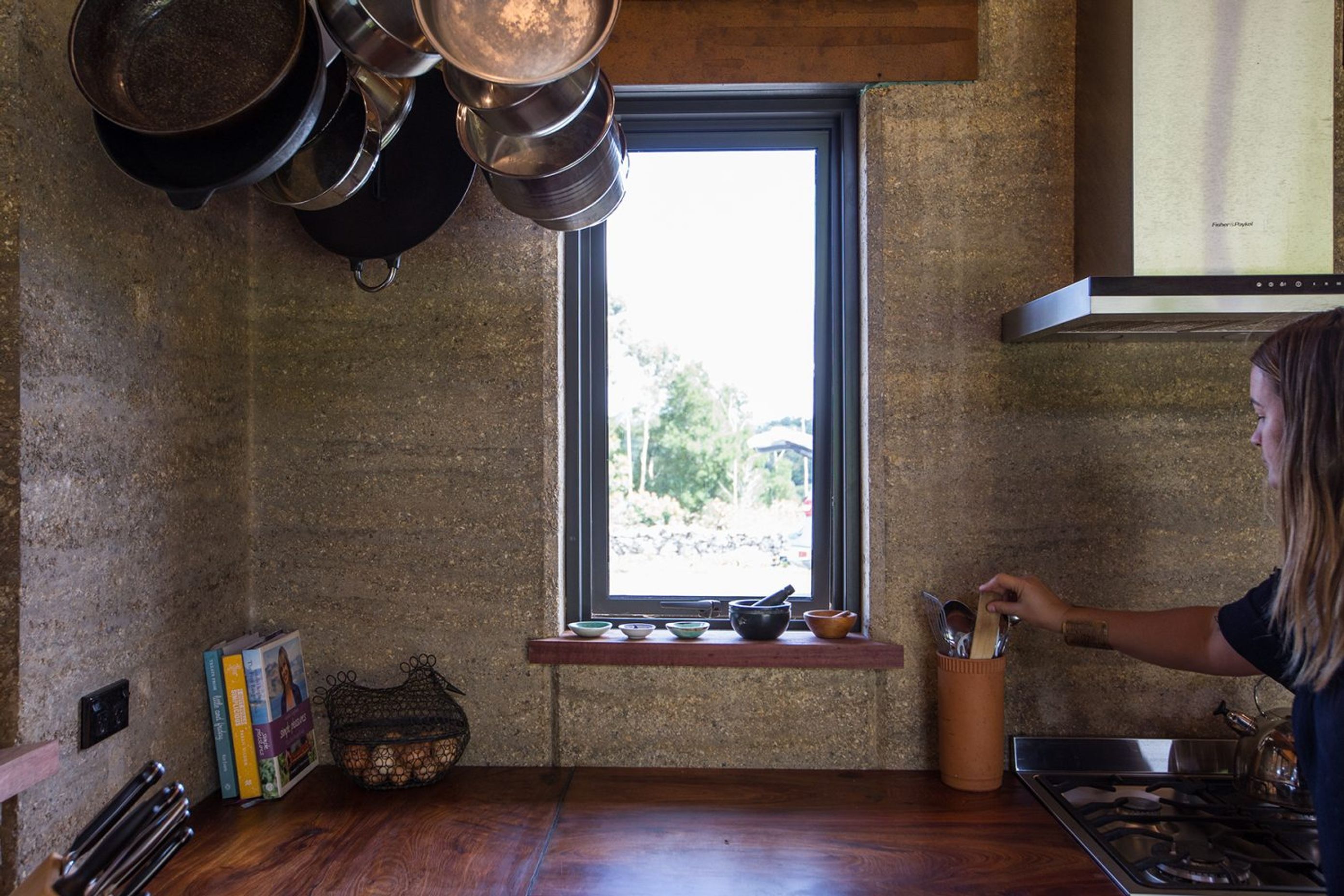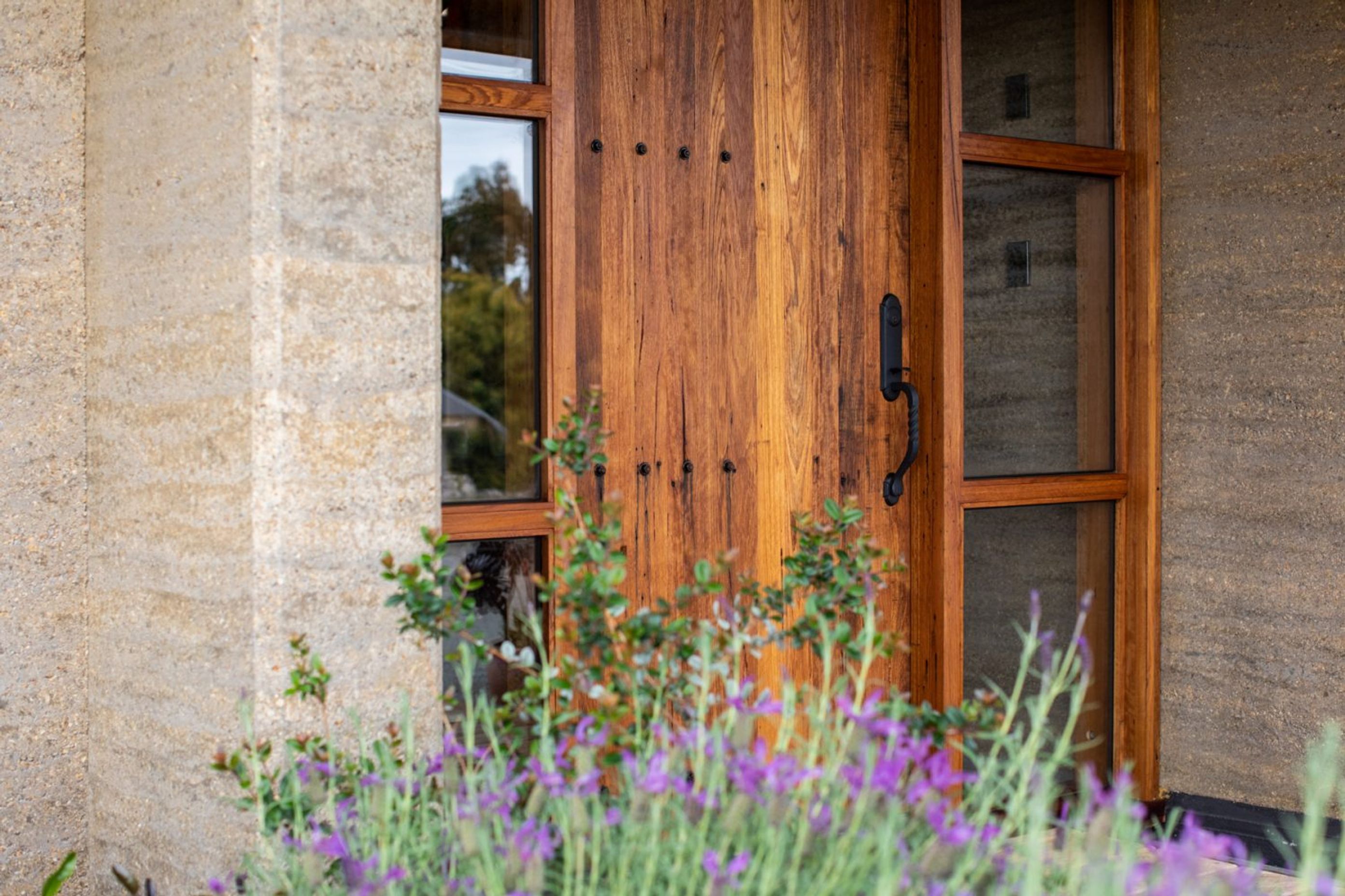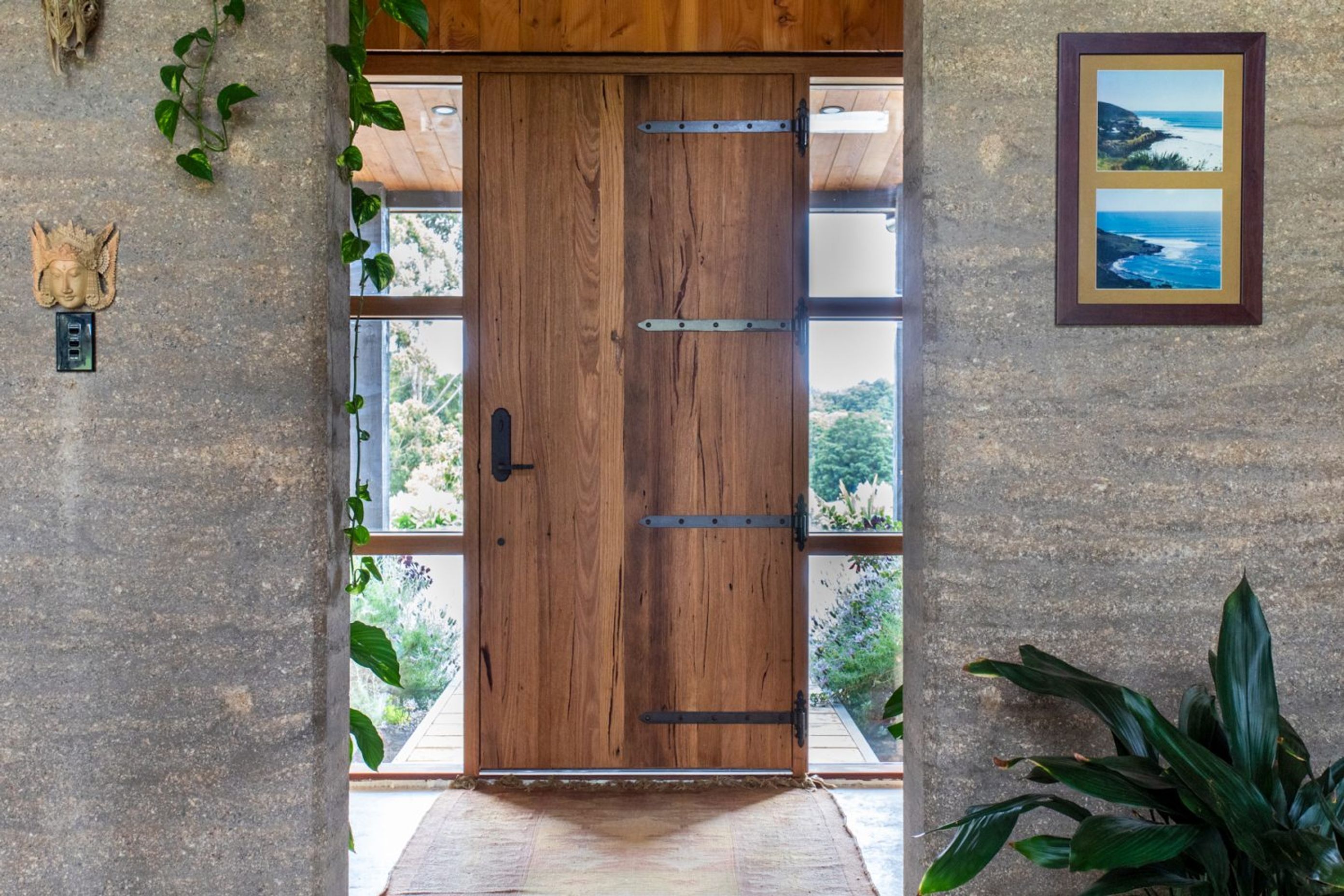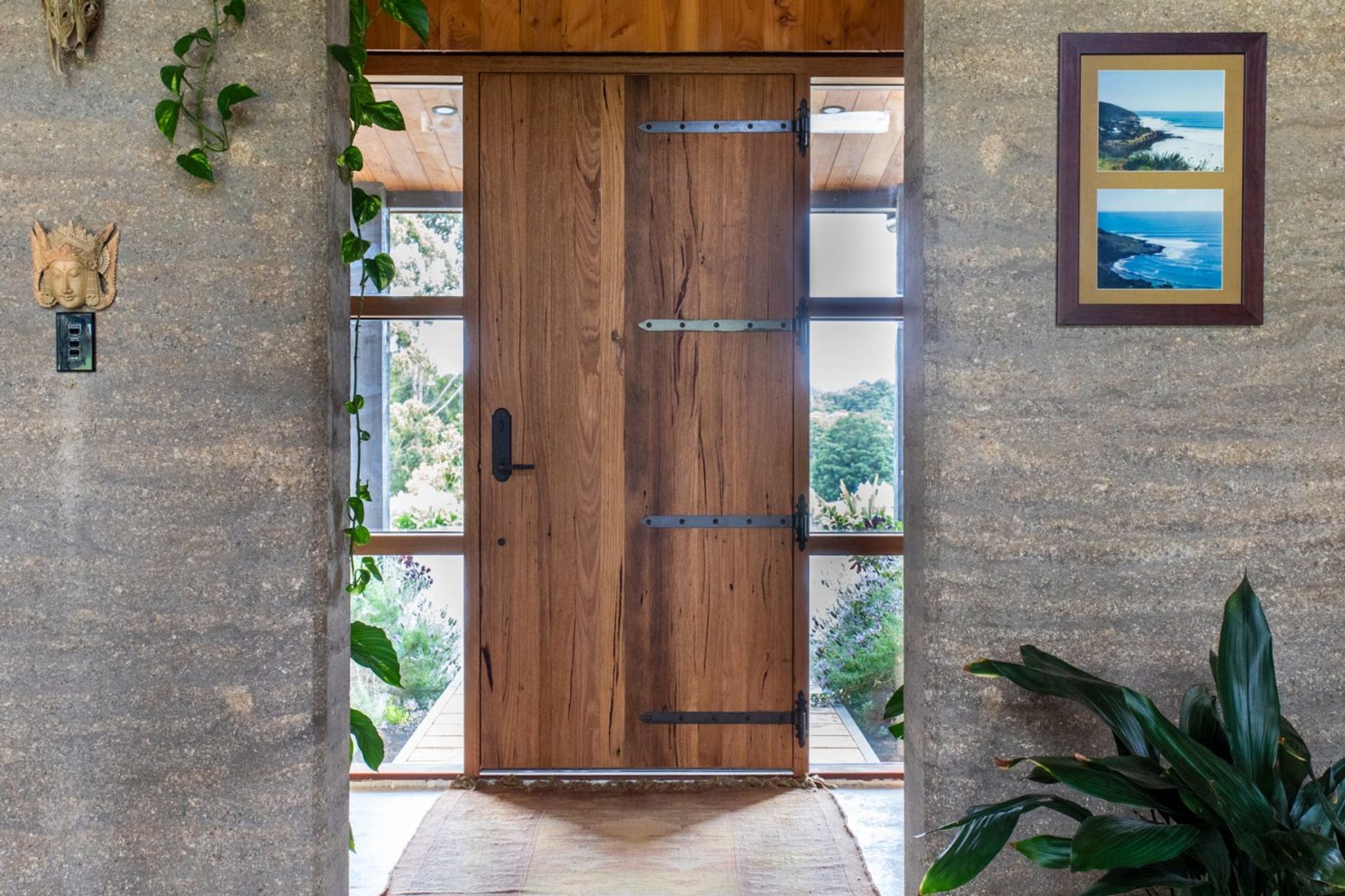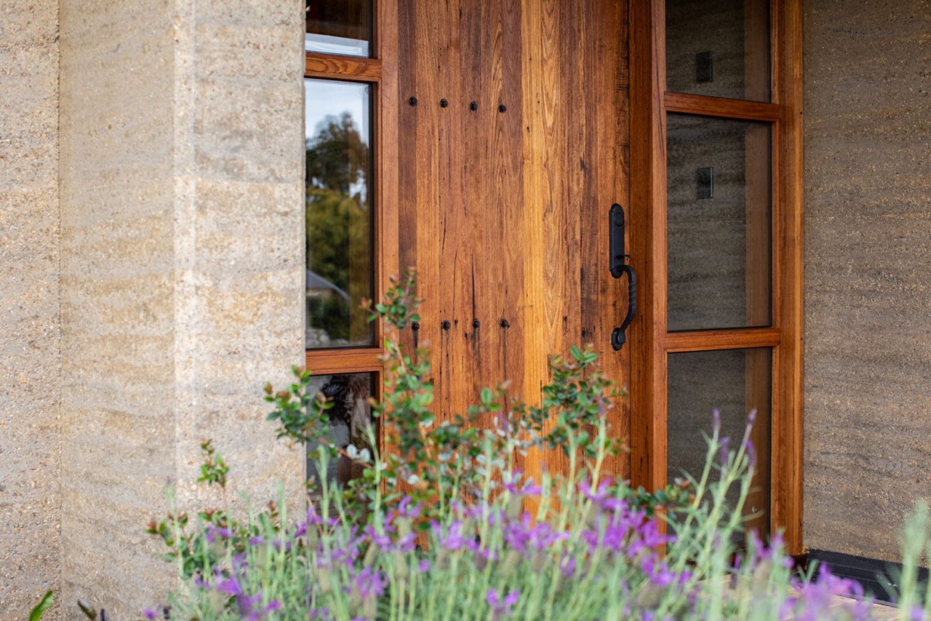 ArchiPro Project Summary - A sustainable rammed earth and timber home designed to harmonize with nature, featuring a spacious open-plan living area and energy-efficient thermal mass for year-round comfort.