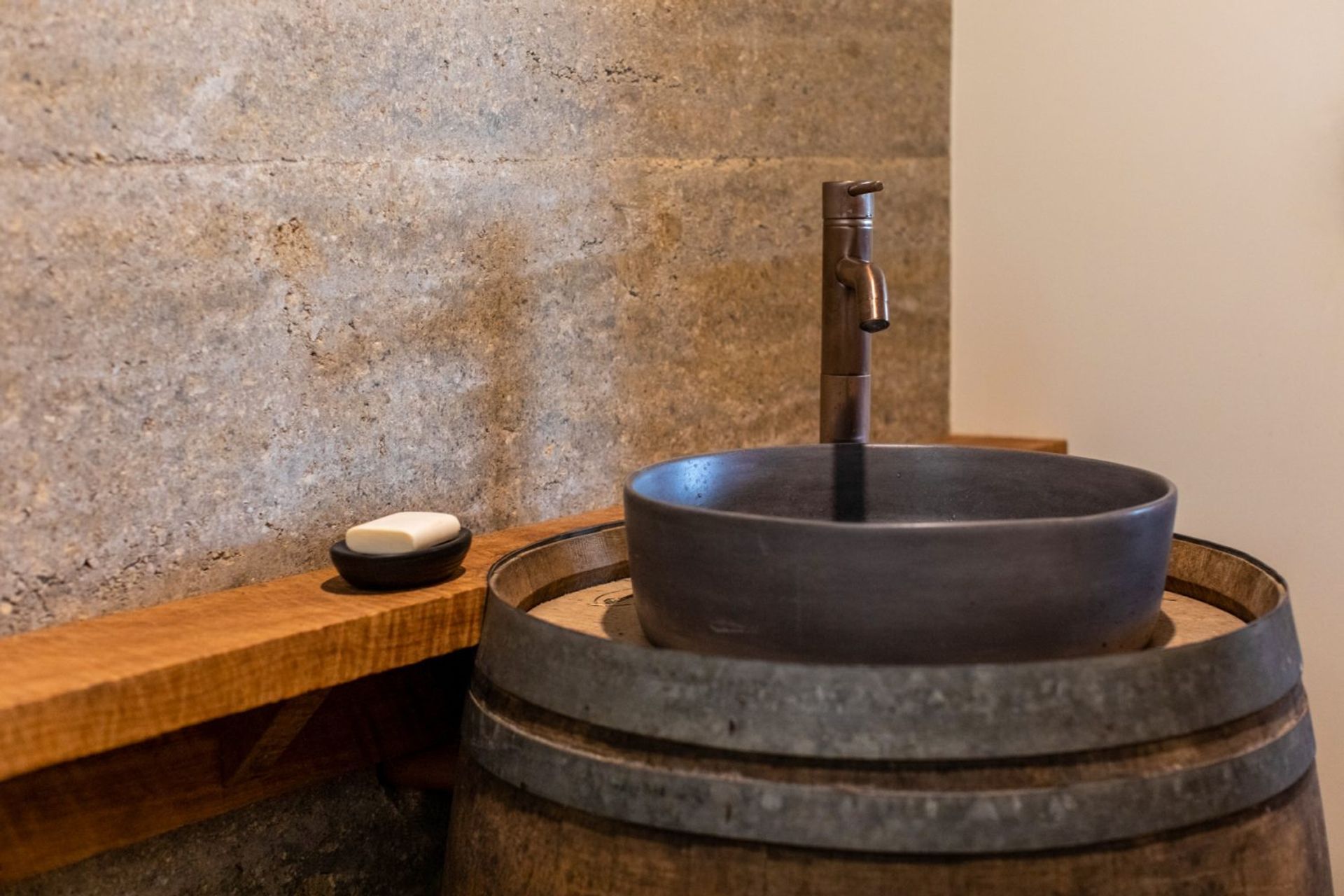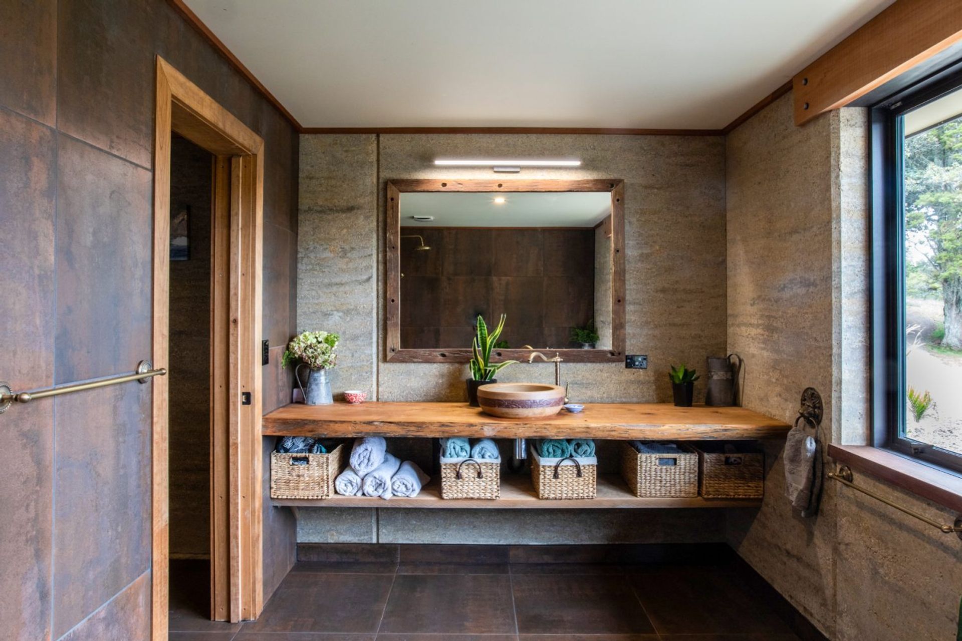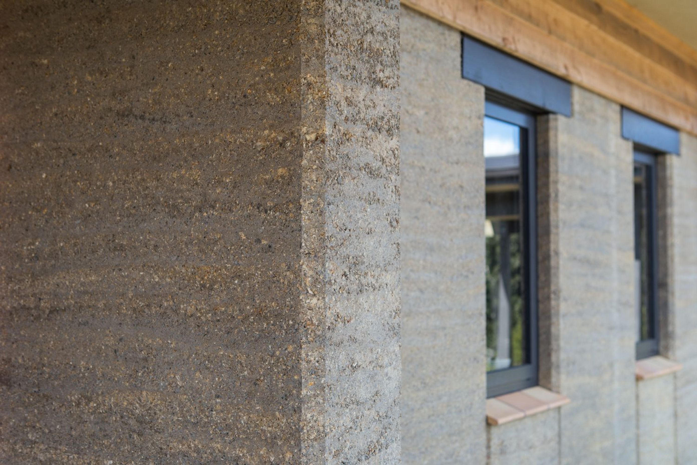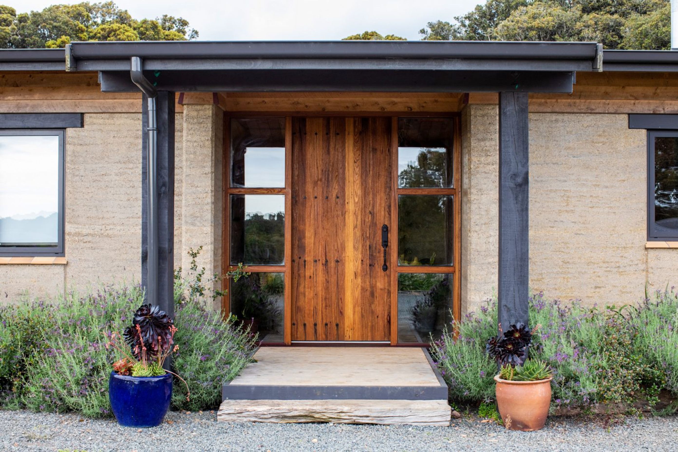 ArchiPro Project Summary - A sustainable rammed earth and timber home designed to harmonize with nature, featuring a spacious open-plan living area and energy-efficient thermal mass for year-round comfort.