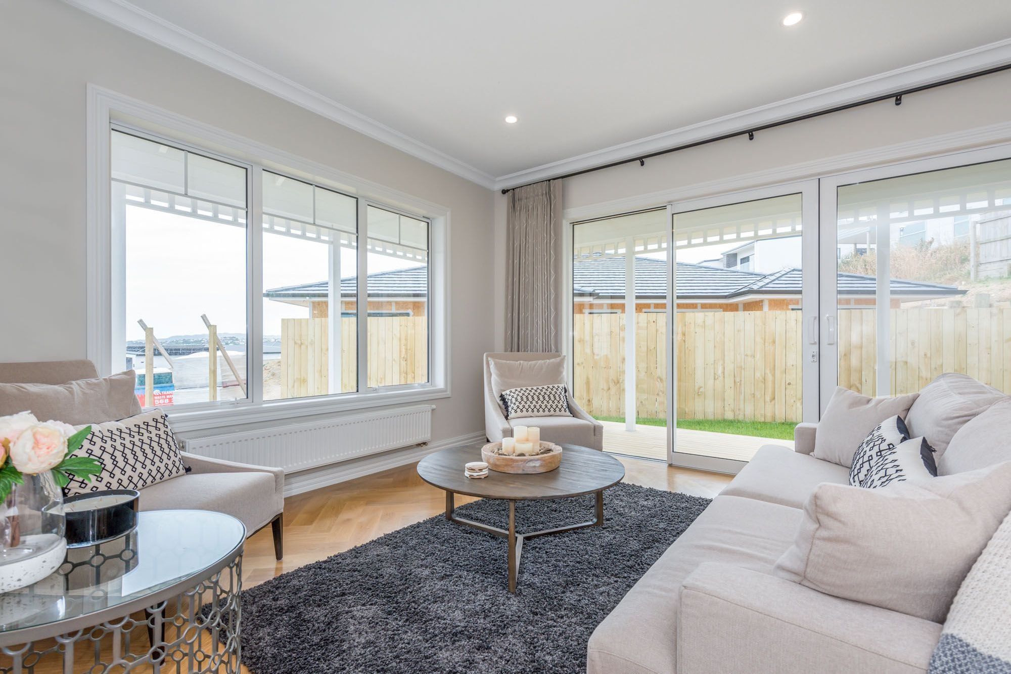 ArchiPro Project Summary - Design and staging of a contemporary show home for Navigation Homes, featuring a villa style with carefully selected paint colours, layout, furniture, tiles, and wood flooring.