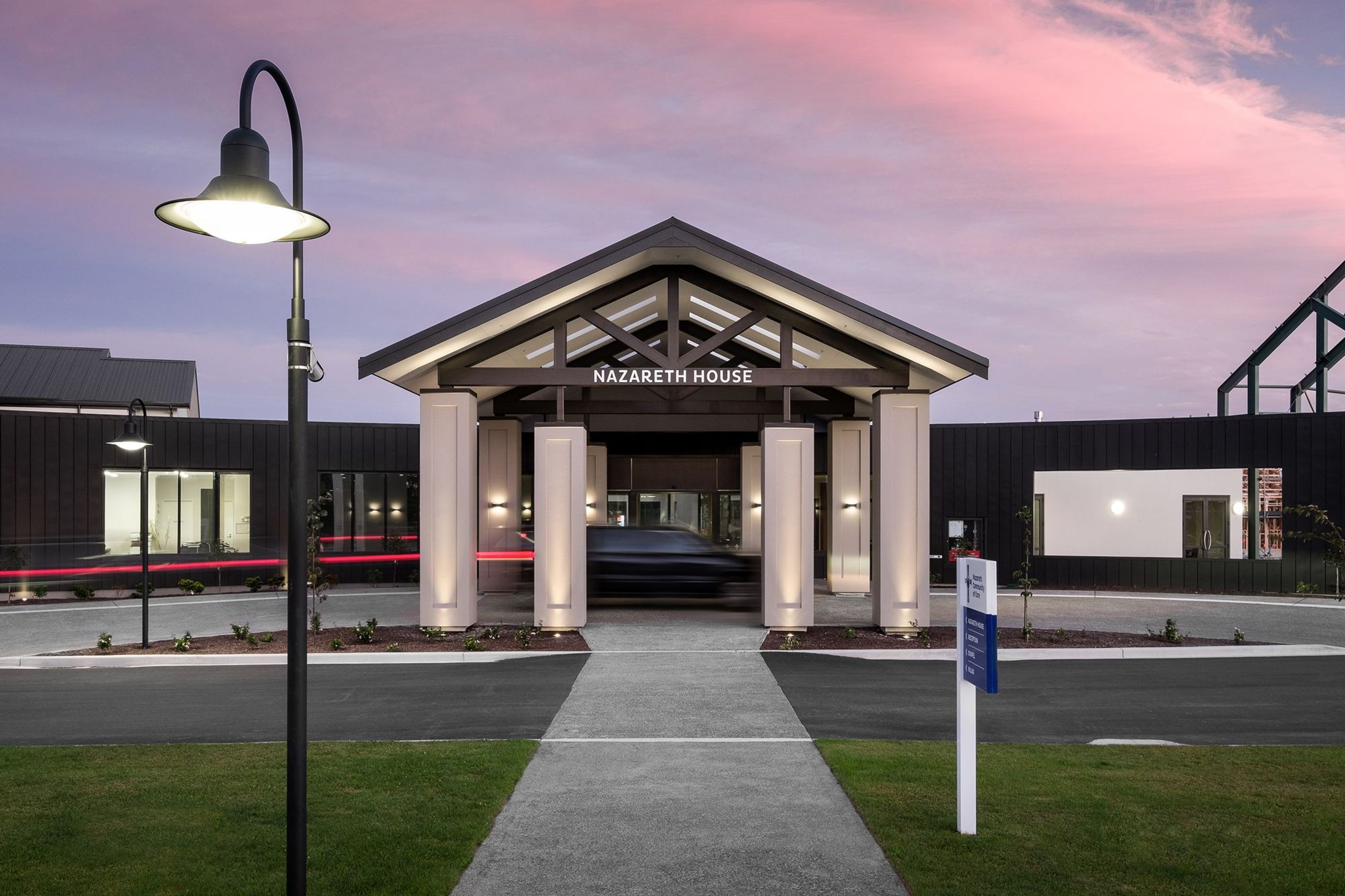 ArchiPro Project Summary - A contemporary care facility at Nazareth House, blending historic elements with modern architecture, featuring 62 villas, 40 rest care beds, and a community center, completed in 2016 as part of the Christchurch Rebuild.