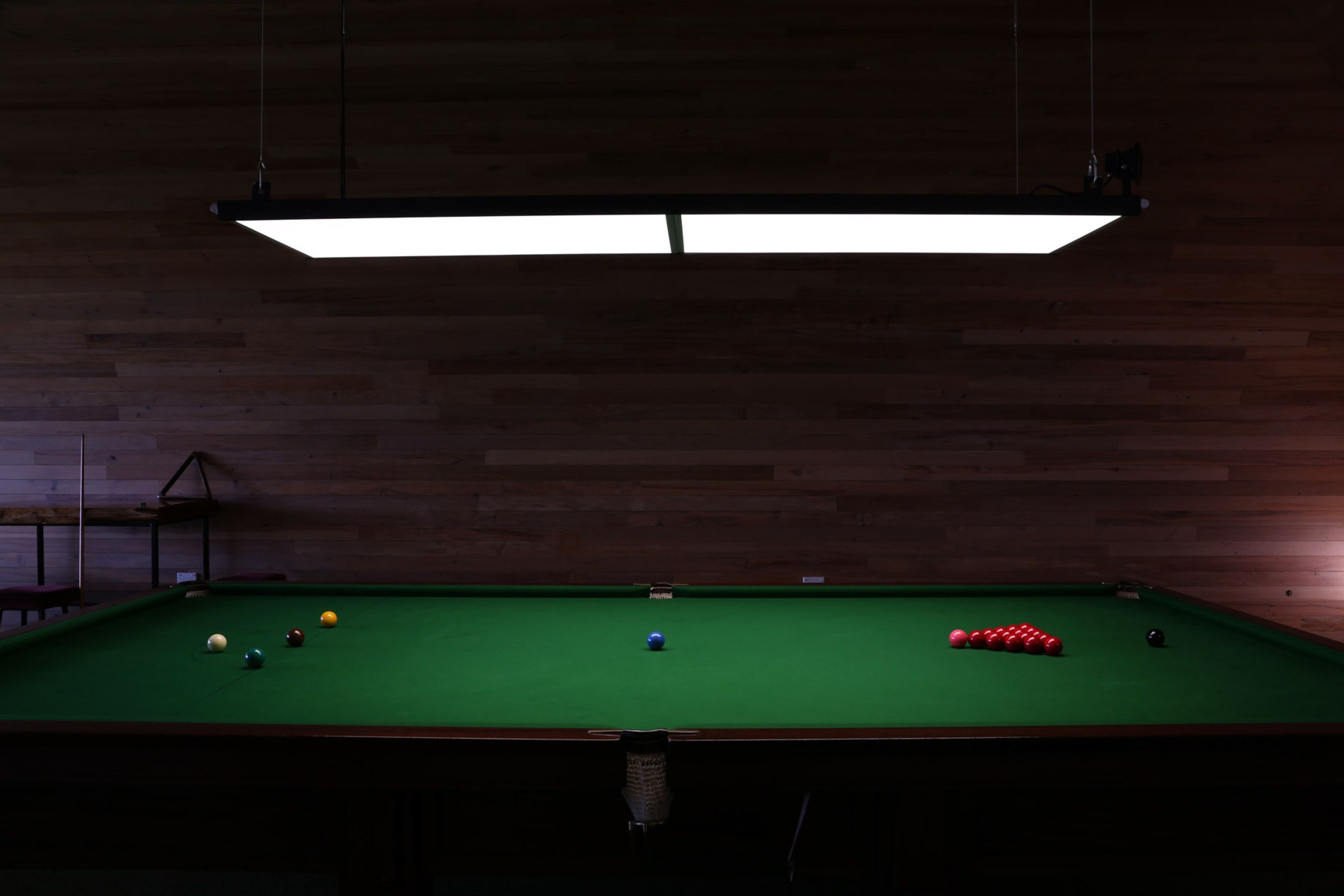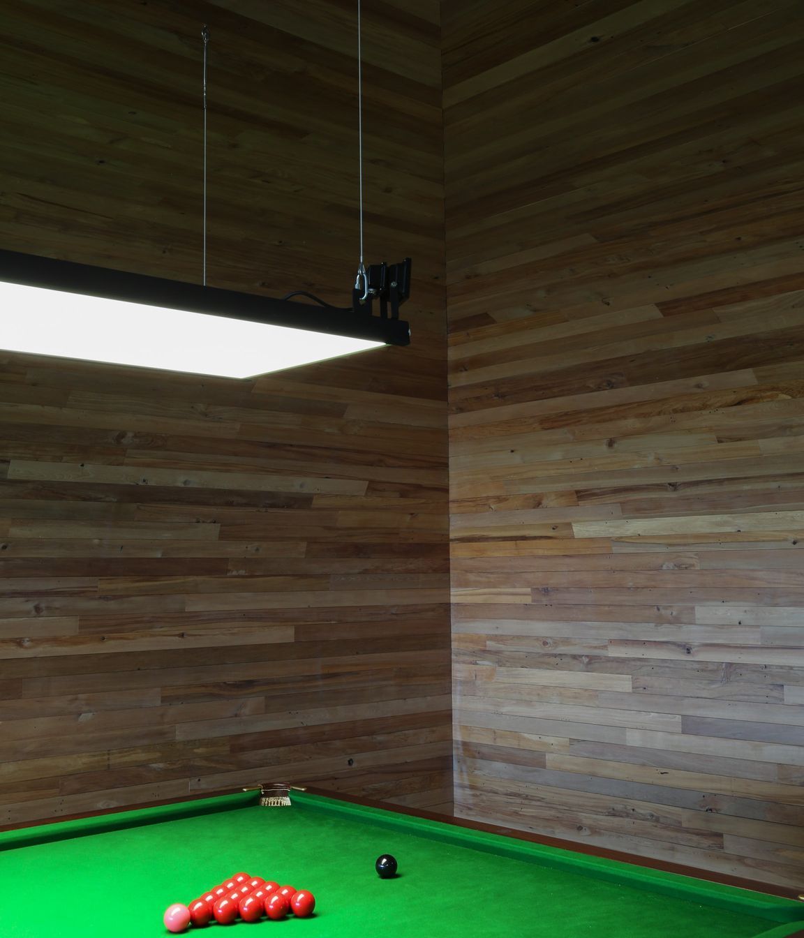 ArchiPro Project Summary - A thoughtfully designed billiards room at New Brighton RSA, featuring recycled Rimu finishes, strategic lighting, and a focus on community engagement, celebrating the history of service members while providing a serene space for leisure and skill.