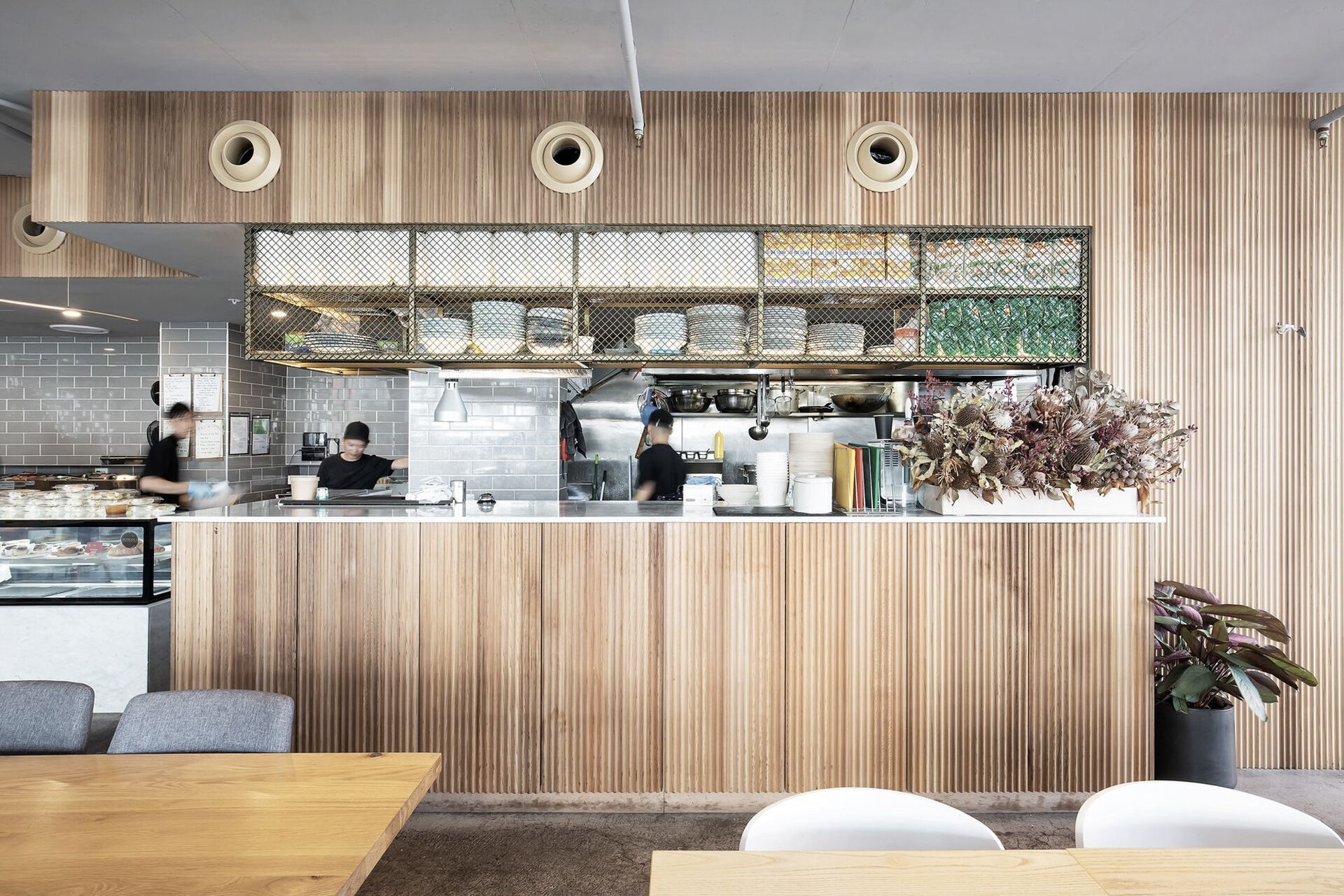 ArchiPro Project Summary - A modern cafe design that blends functionality and aesthetics, fostering community engagement.