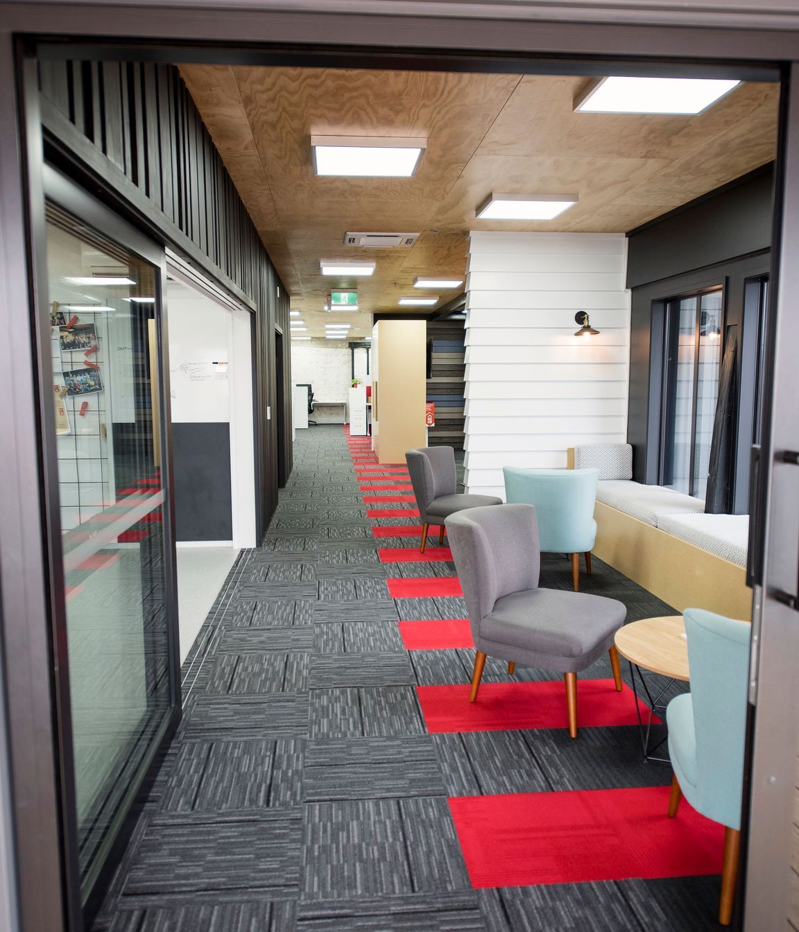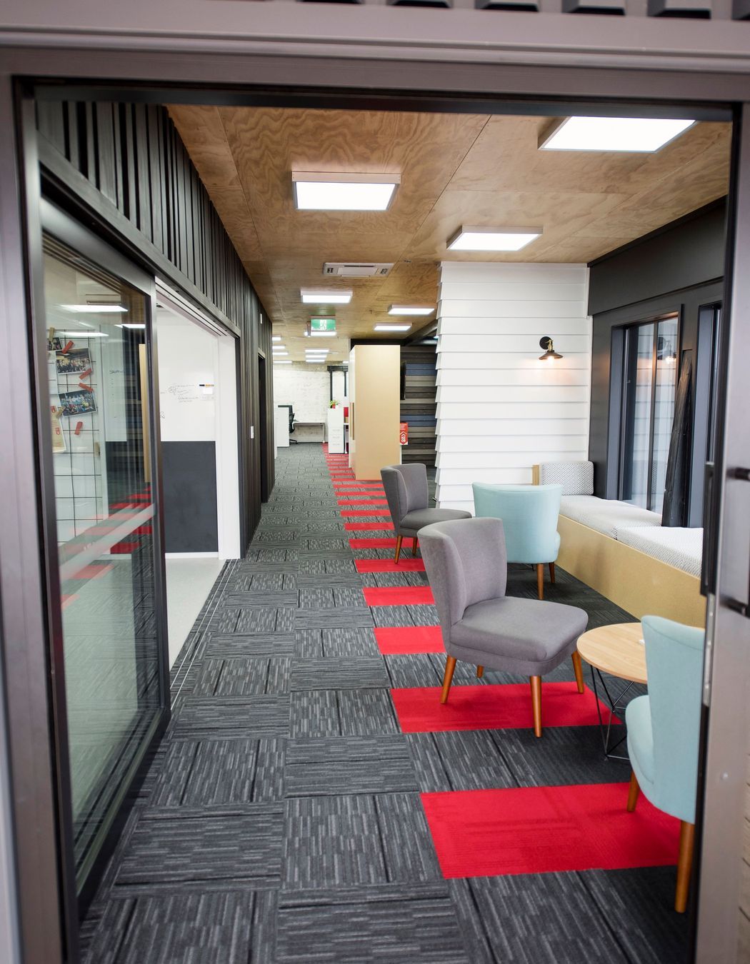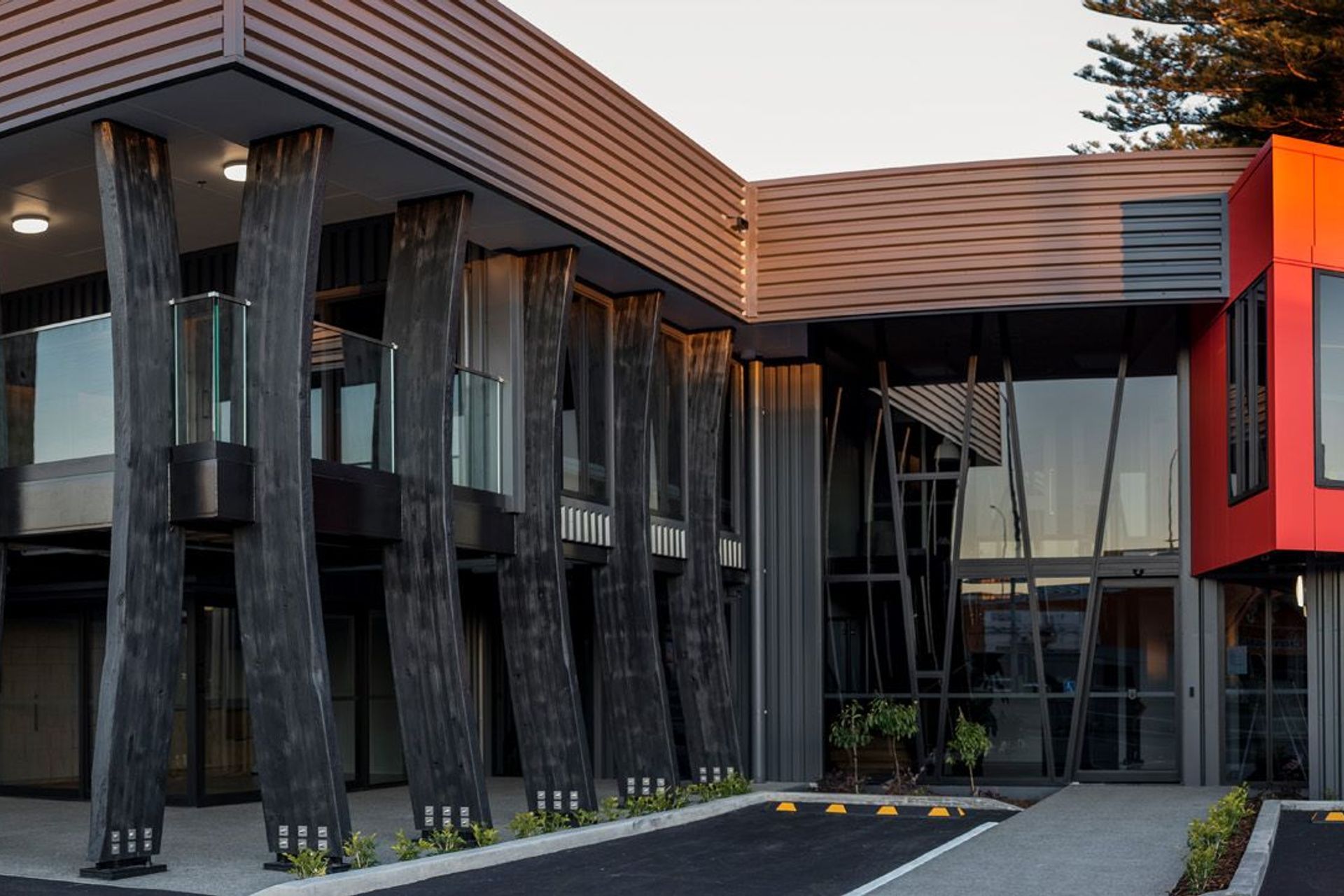 ArchiPro Project Summary - The headquarters of New Zealand Certified Builders features a modern Brutalist design with a striking facade and innovative composite materials.