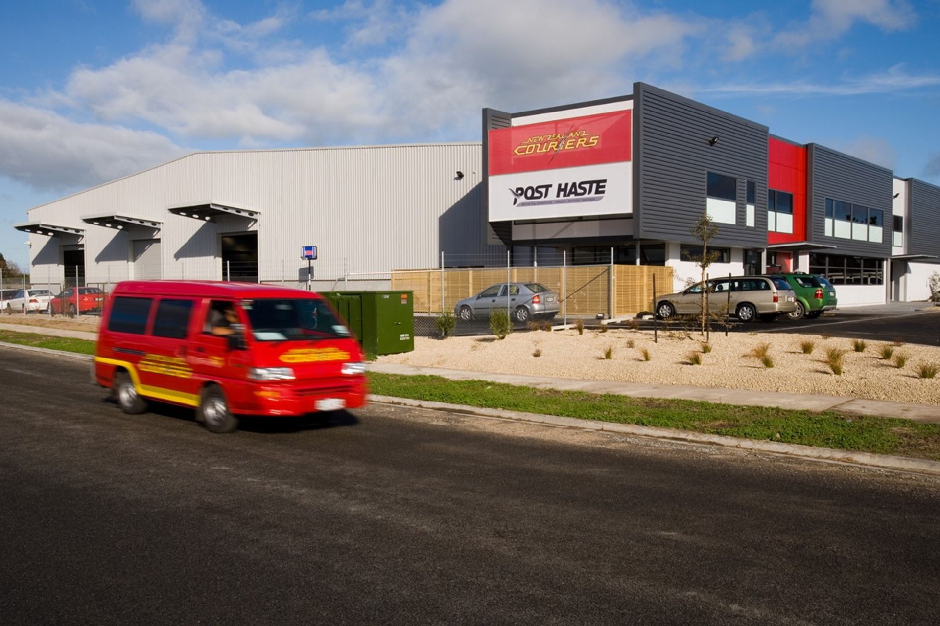 ArchiPro Project Summary - Purpose-built logistics hub for New Zealand Couriers in Hamilton, featuring a 3,250m² sorting area, flexible design for future growth, and advanced office facilities to support efficient operations.