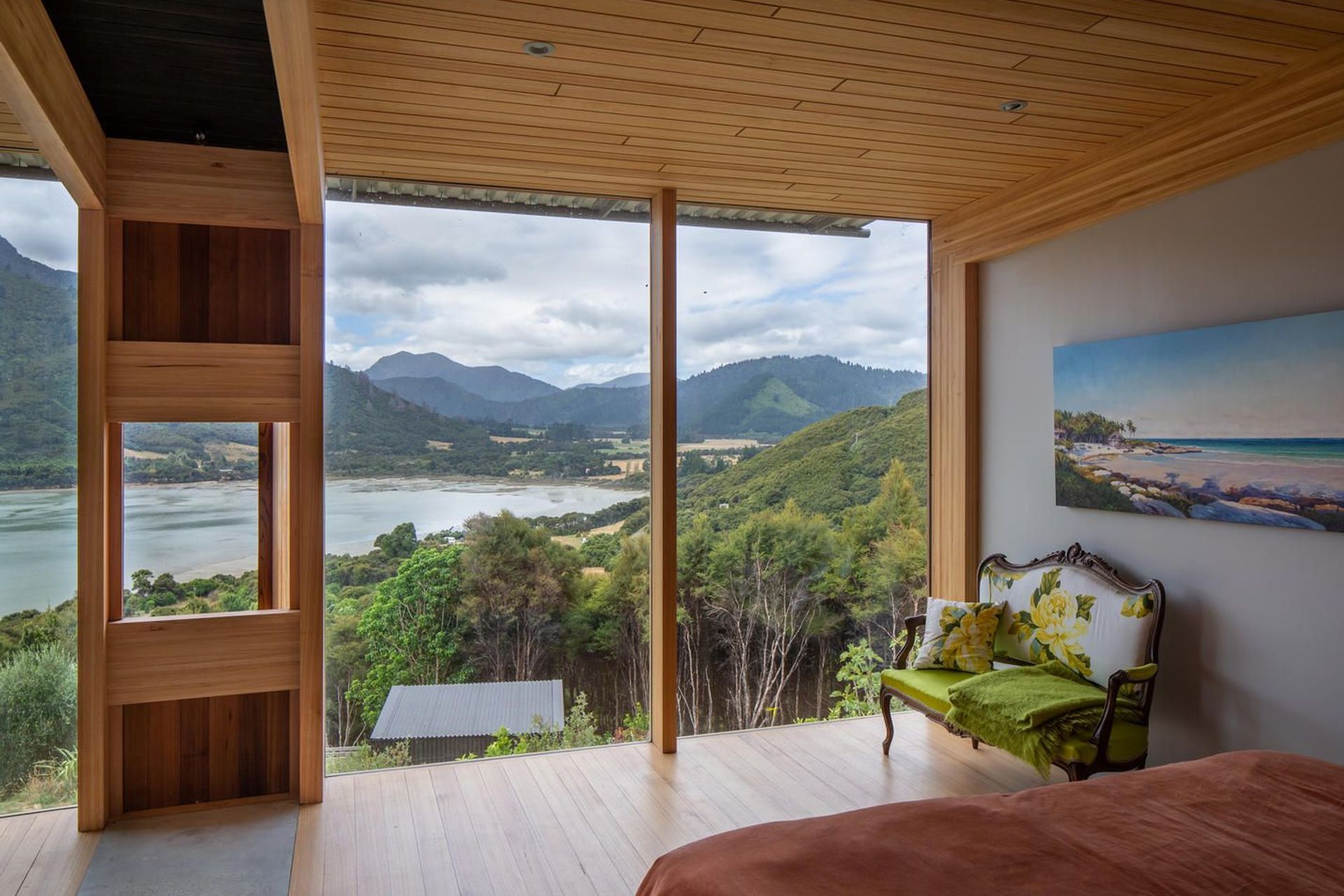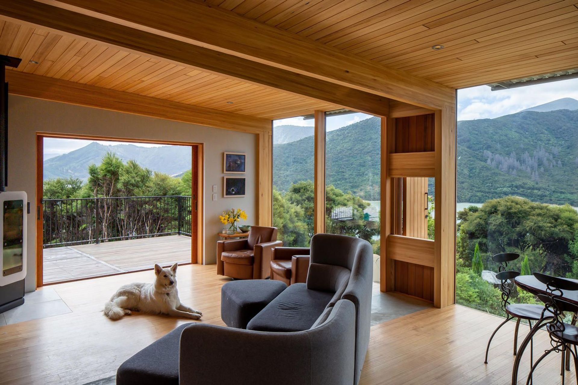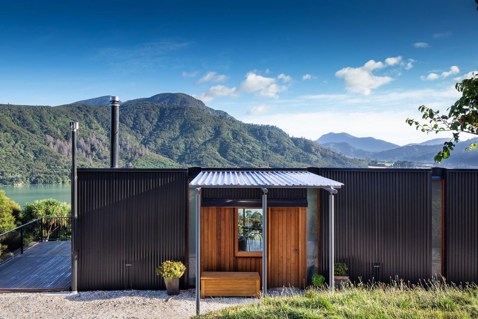 ArchiPro Project Summary - Ngāhere Hou: A sustainable off-grid retreat featuring a two-bedroom house and separate guest room, designed to embrace stunning views of Kenepuru Sounds while addressing the logistical challenges of remote construction.