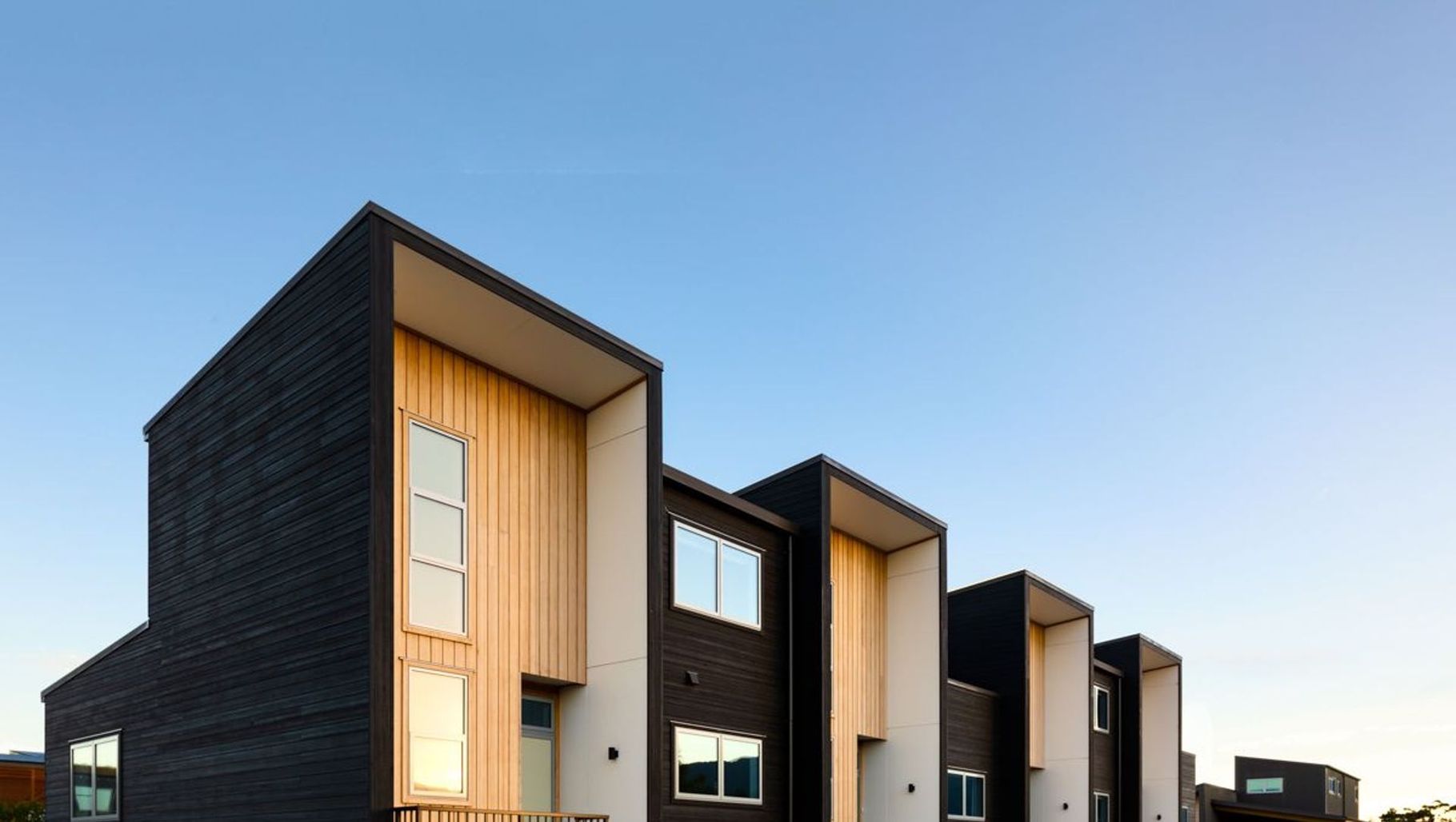 ArchiPro Project Summary - Ngārara Lots 11-14: A pioneering sustainable housing community in Waikanae, featuring 14 low-energy townhouses designed for diverse demographics, with a focus on community interaction, environmental stewardship, and a strong connection to the landscape.