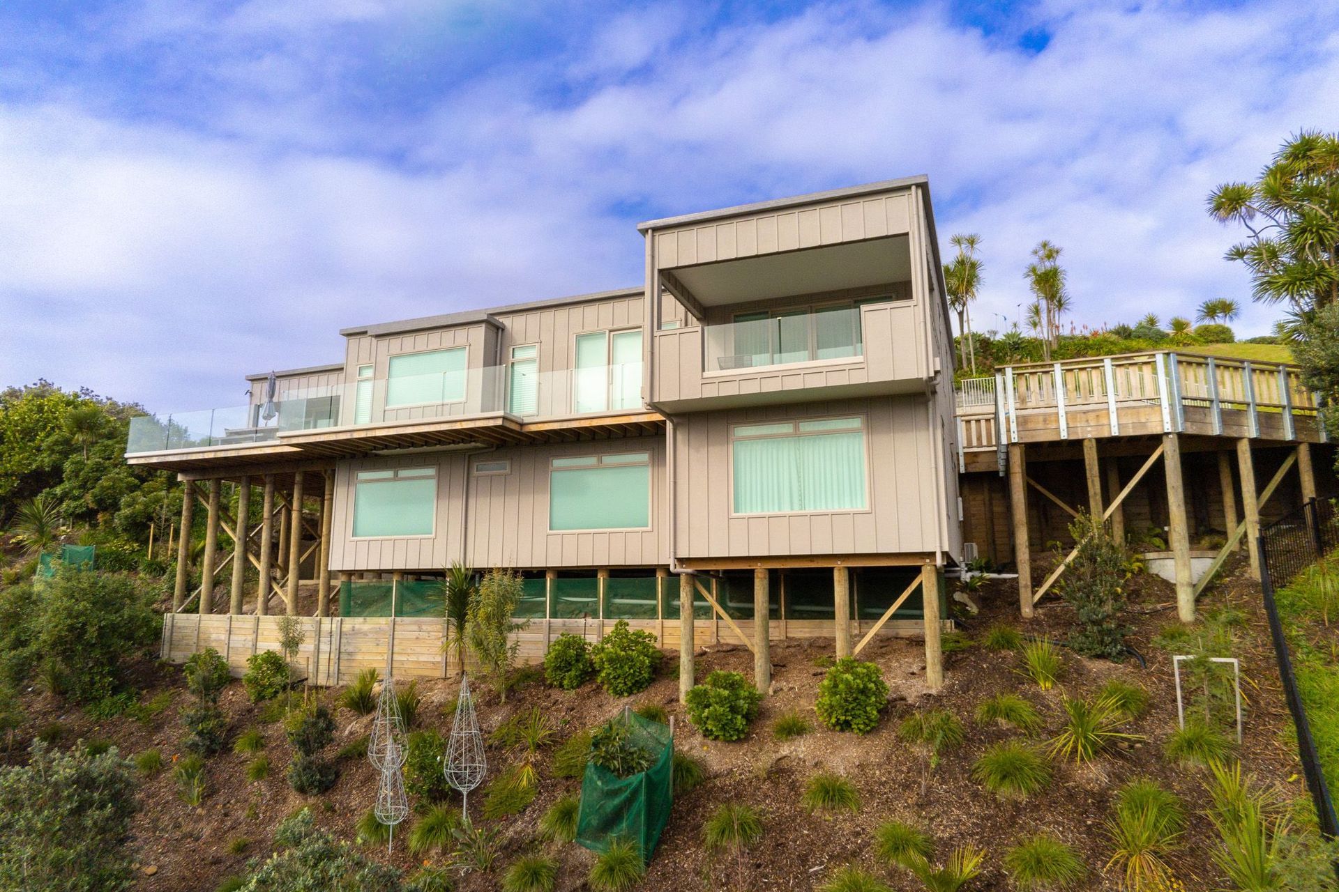 ArchiPro Project Summary - Award-winning home elevated on stilts, featuring refined yet relaxed living spaces, a gourmet kitchen for culinary enthusiasts, and seamless connections between open-plan living and decks, all complemented by stunning views.