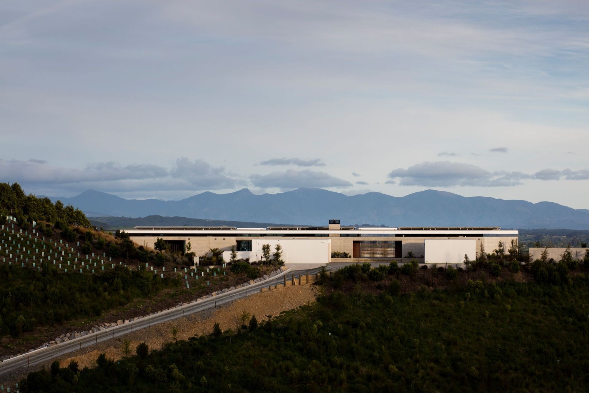 ArchiPro Project Summary - Nomayah House: A private multi-generational home harmoniously integrated into a stunning vineyard landscape, featuring bold native revegetation, a striking outdoor courtyard, and sustainable water management solutions.