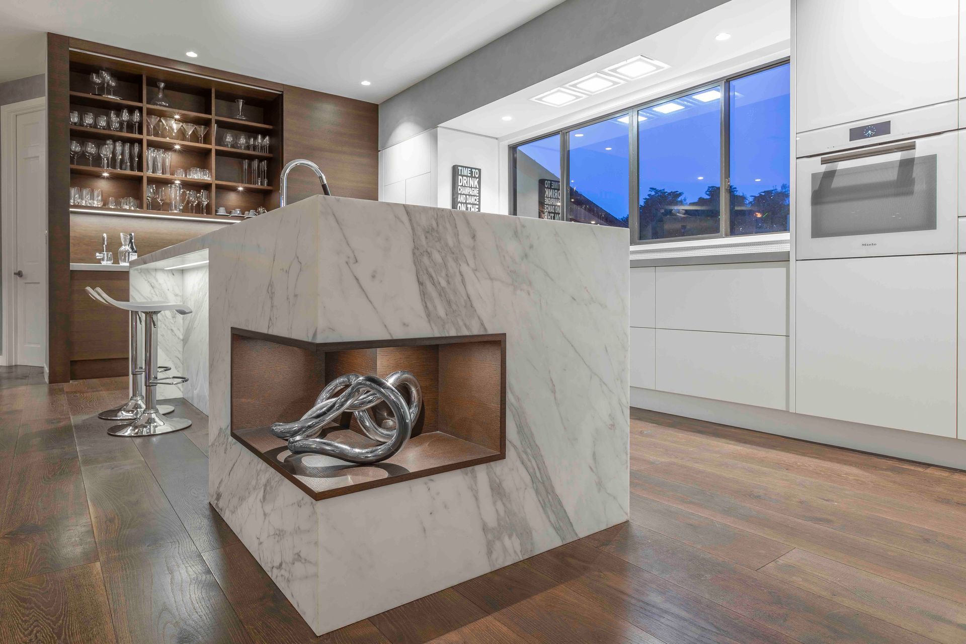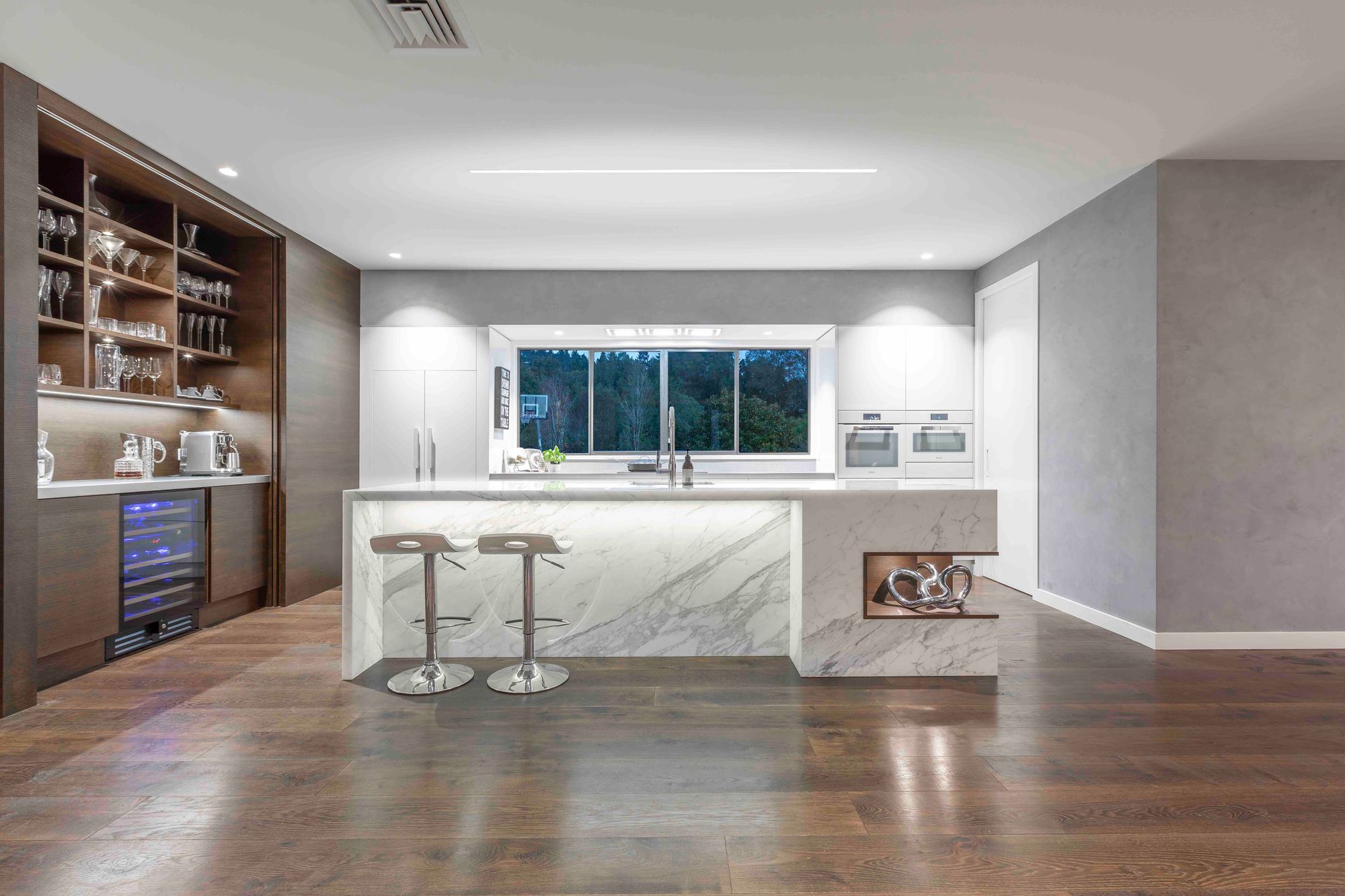 ArchiPro Project Summary - A spacious, contemporary kitchen designed for family living and entertaining, featuring a dedicated drinks area, ample storage, and a striking design that enhances the home's aesthetic without obstructing sightlines.