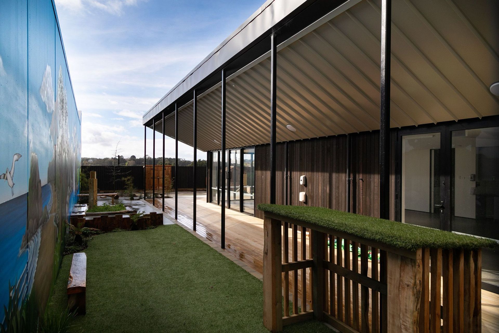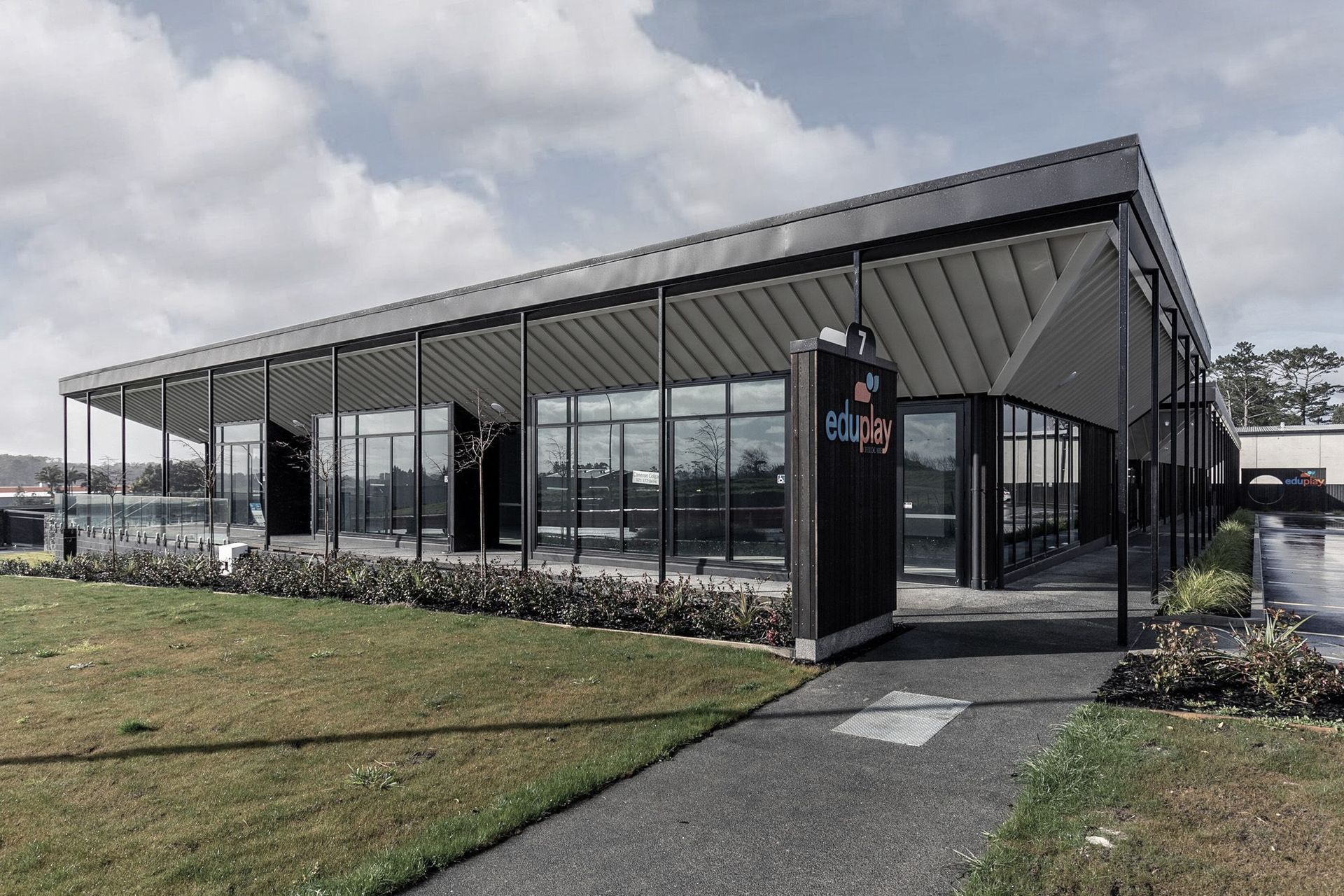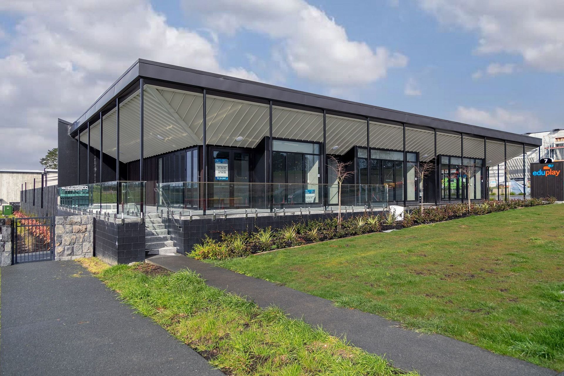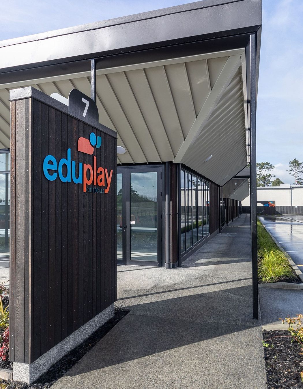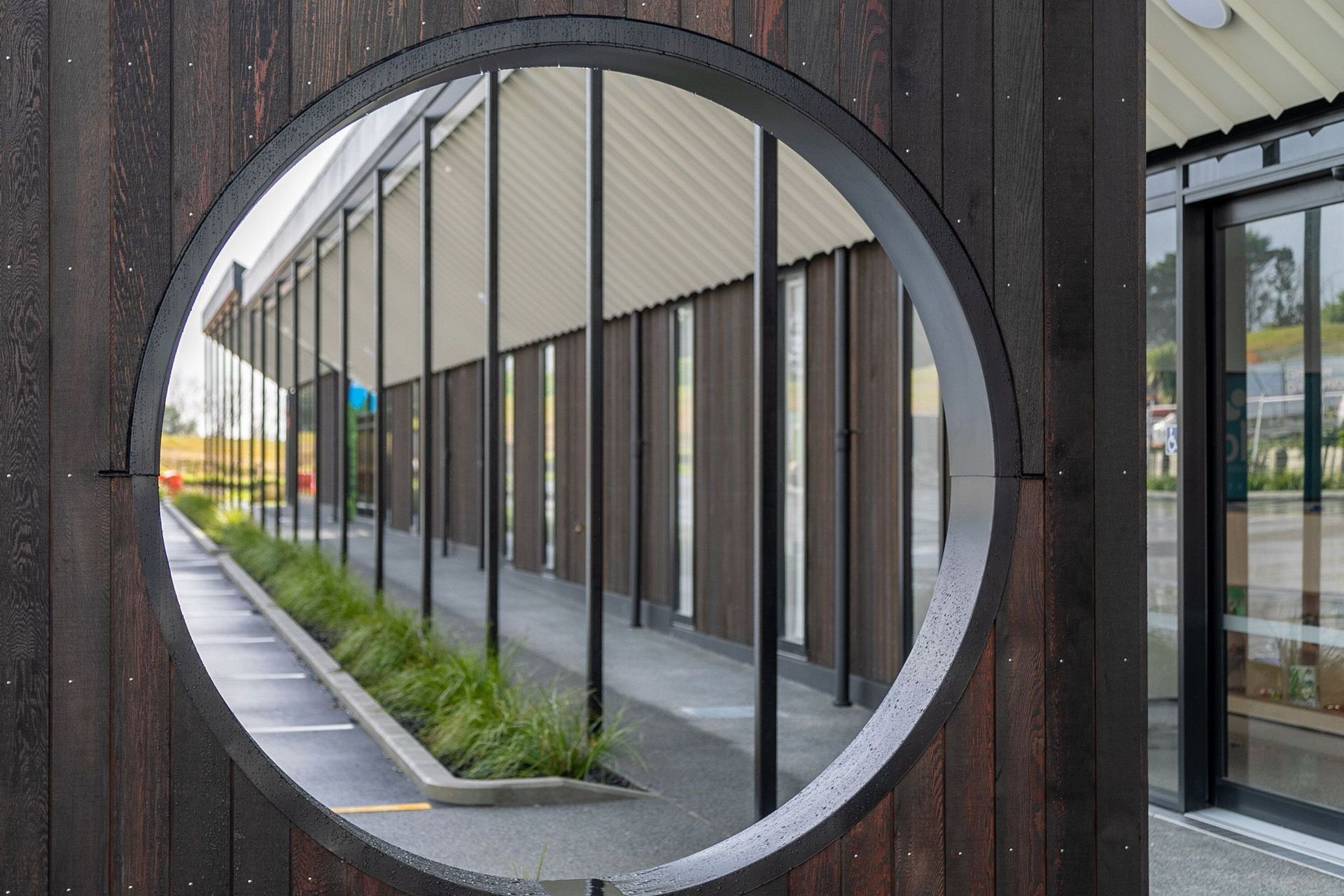 ArchiPro Project Summary - Transformation of two separate buildings into a cohesive retail space featuring timber trusses, internal gutters, and a striking cedar cladding system, completed for Paragon Construction in late 2018 with a contract value of $100K.