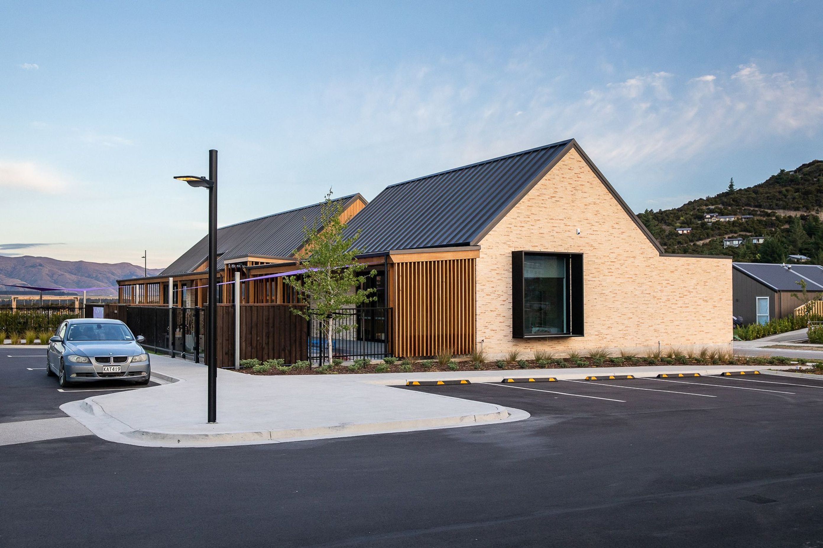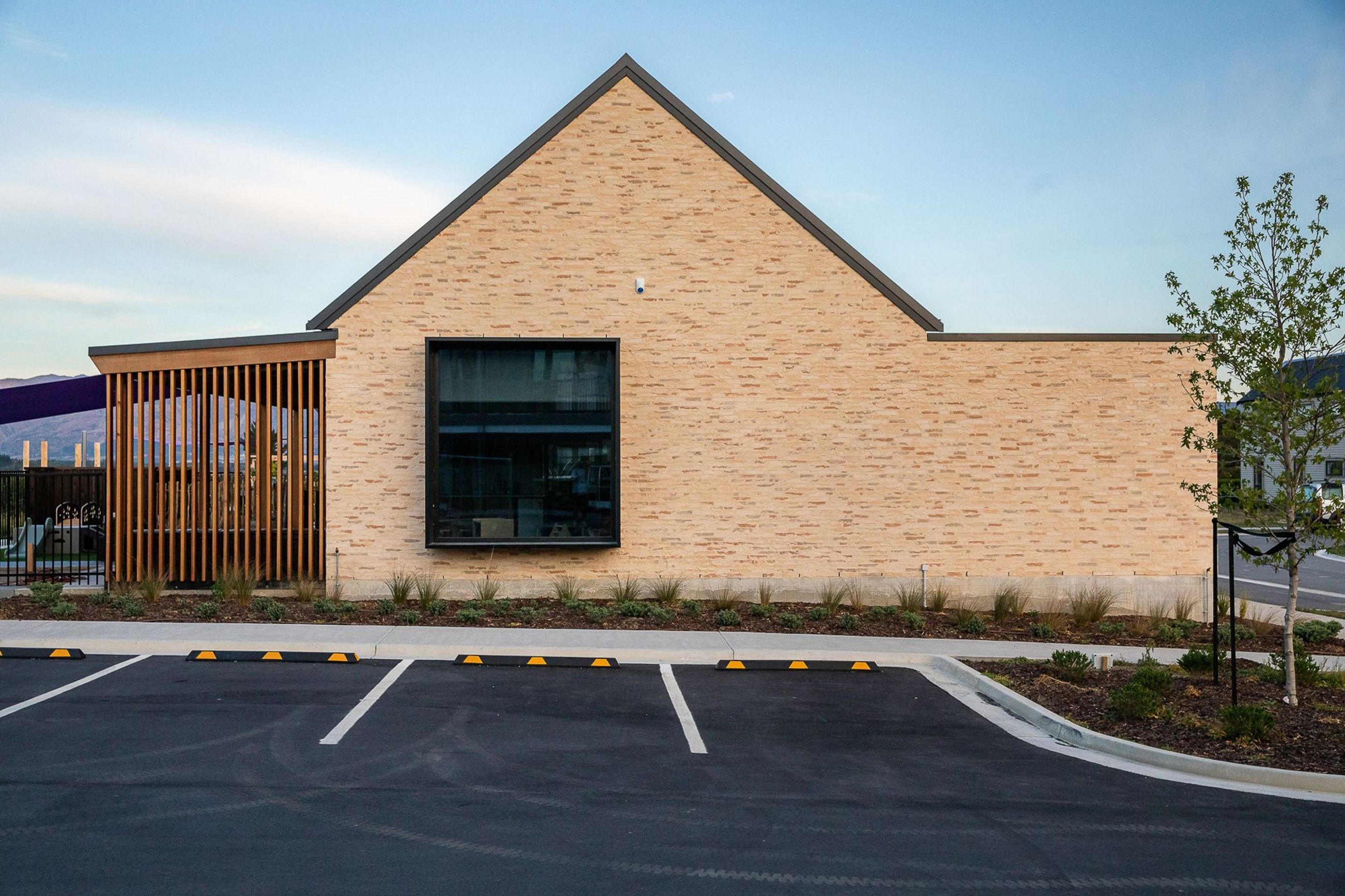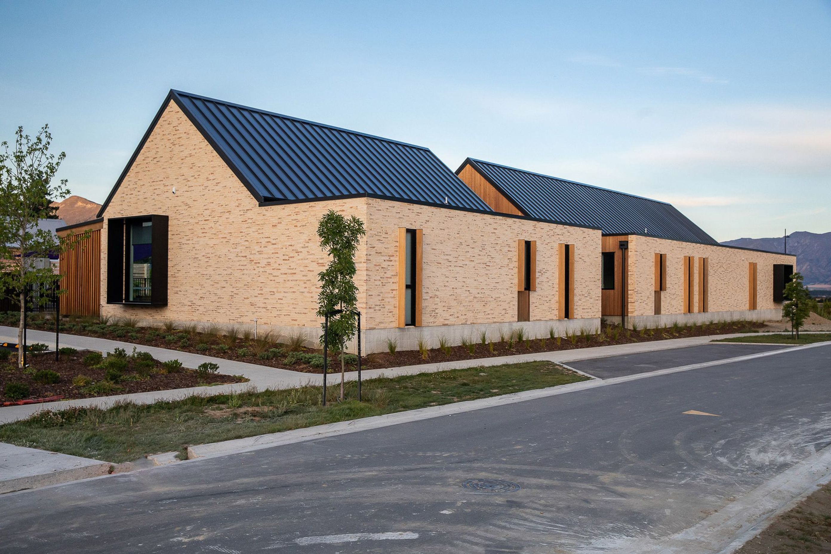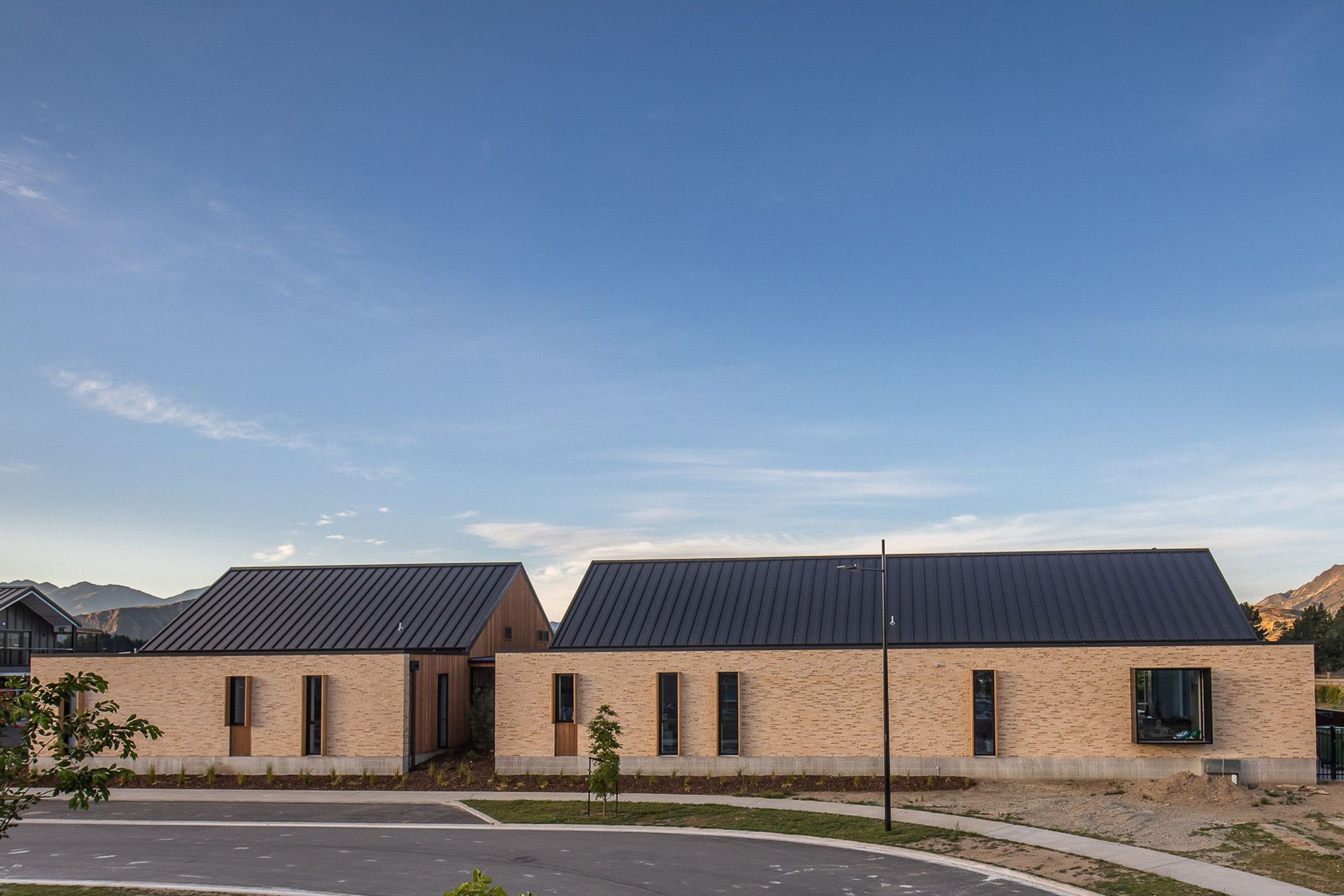 ArchiPro Project Summary - A modern childcare centre in Wanaka, seamlessly blending with Central Otago's natural landscape through a bespoke brick design and skilled craftsmanship, creating a warm and inviting environment for children.