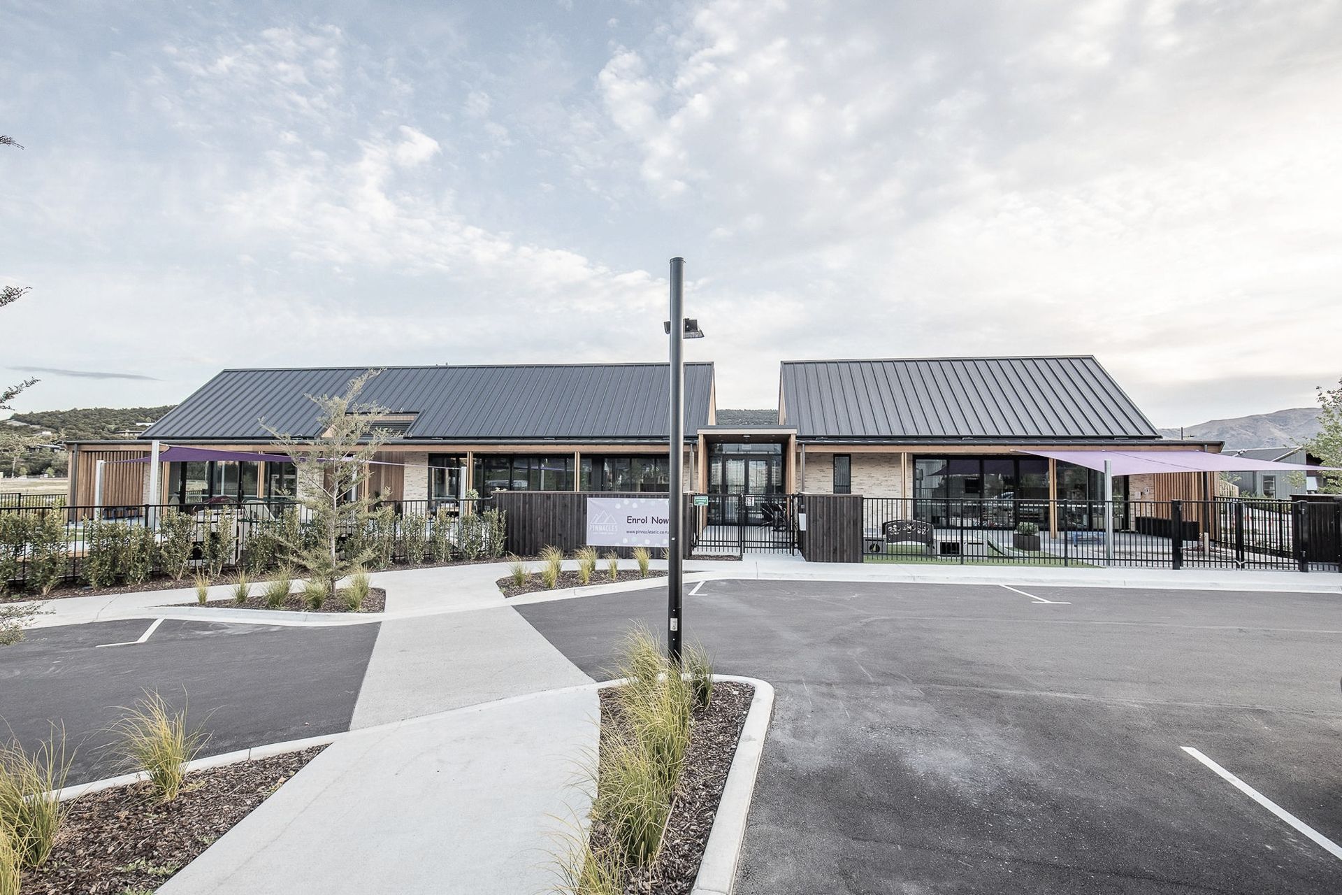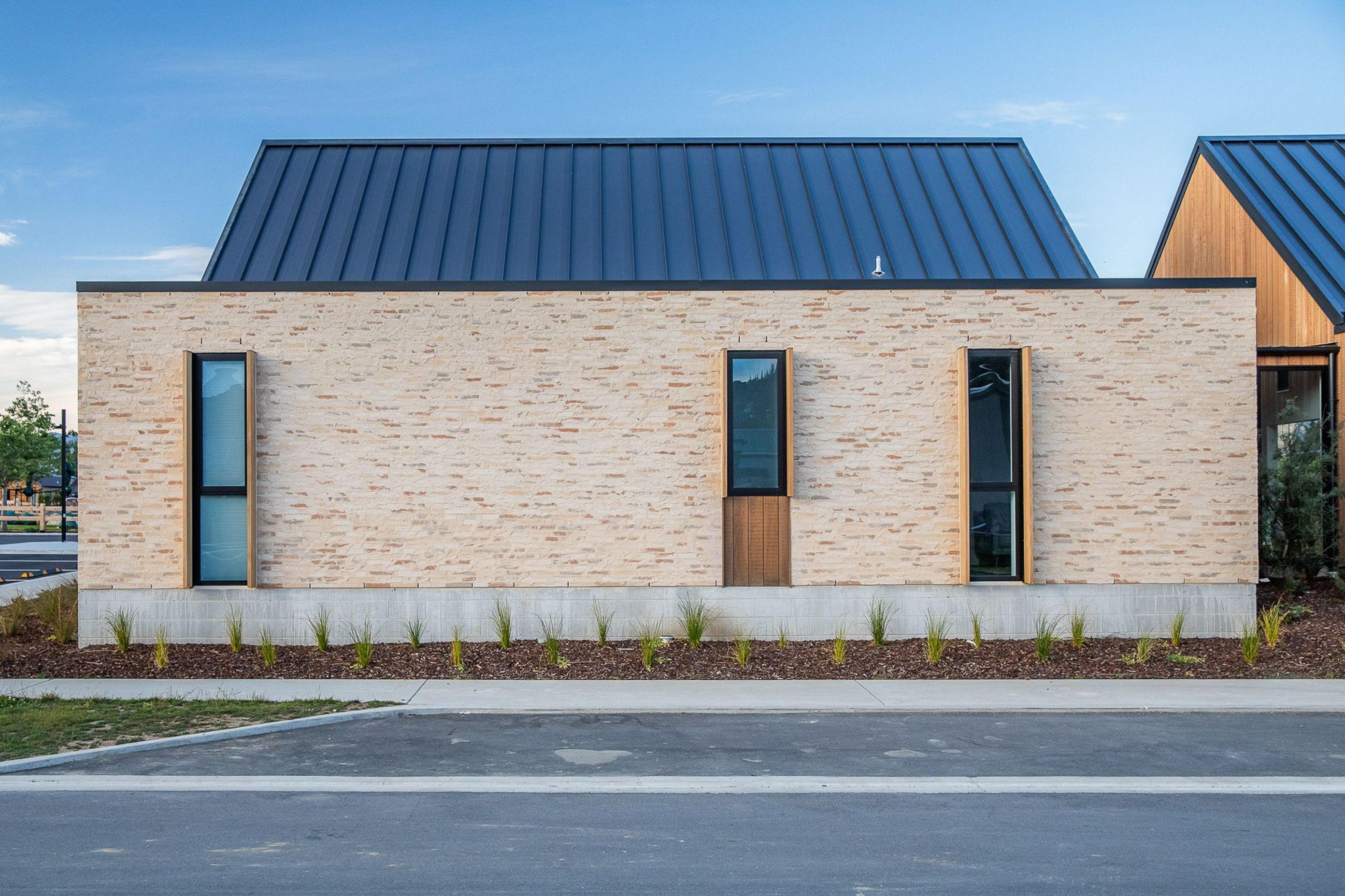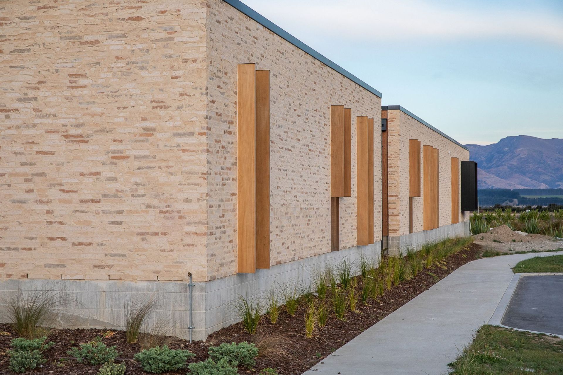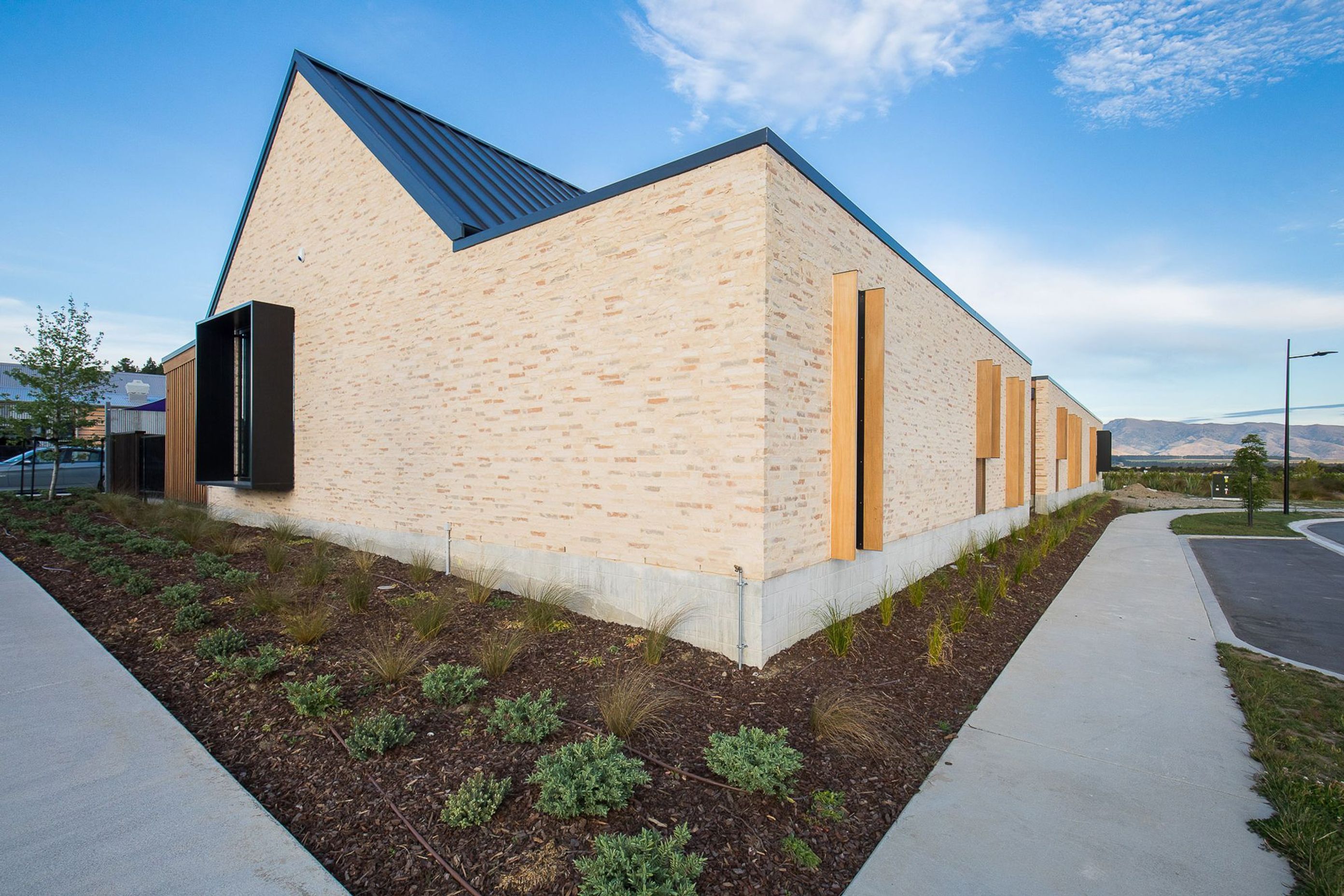ArchiPro Project Summary - A modern childcare centre in Wanaka, seamlessly blending with Central Otago's natural landscape through a bespoke brick design and skilled craftsmanship, creating a warm and inviting environment for children.