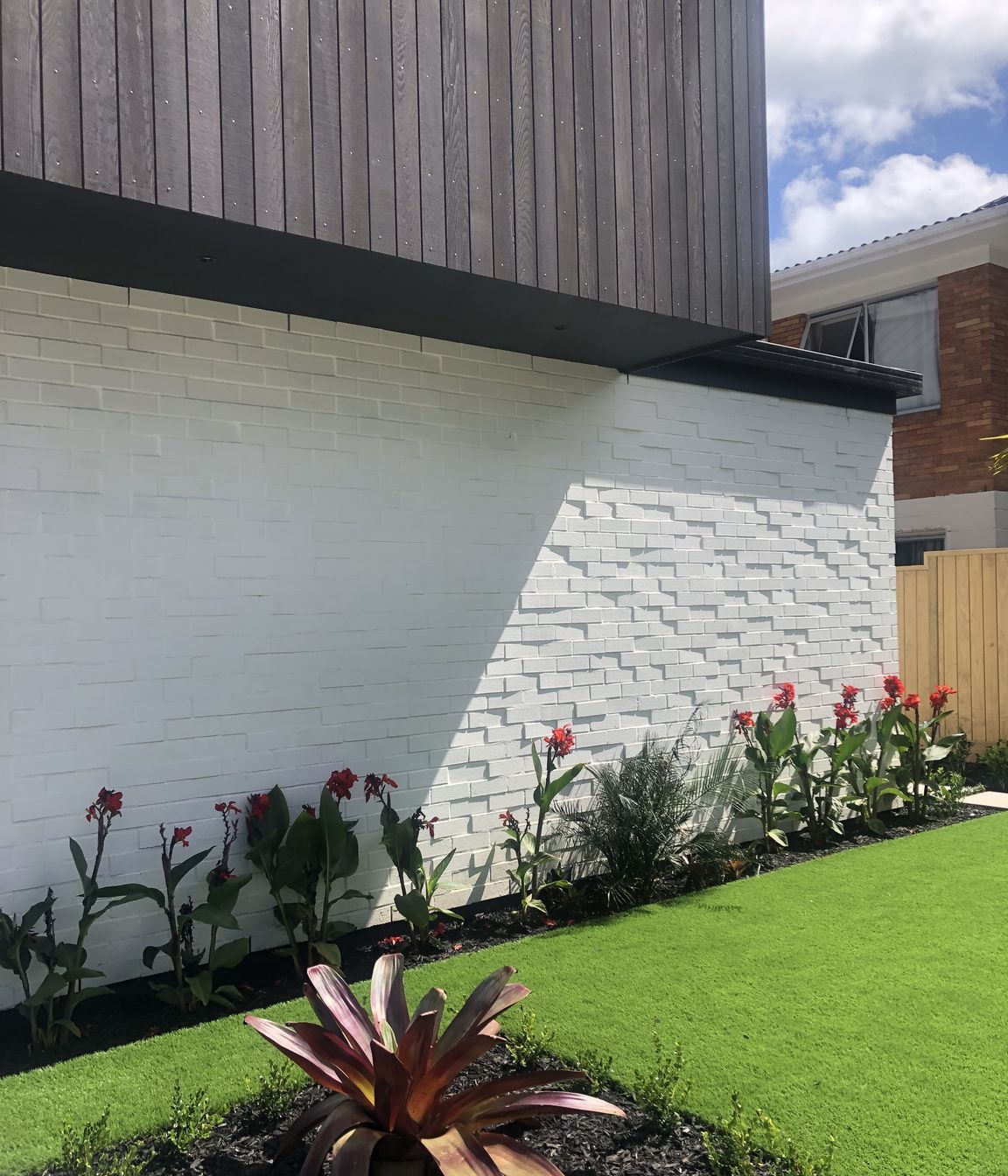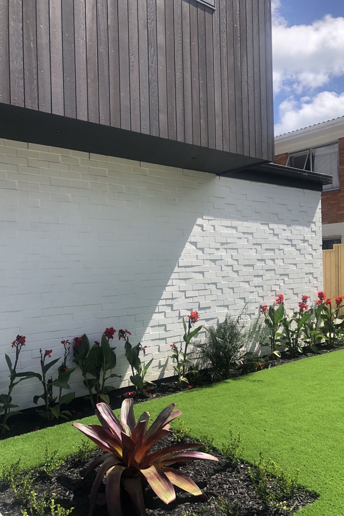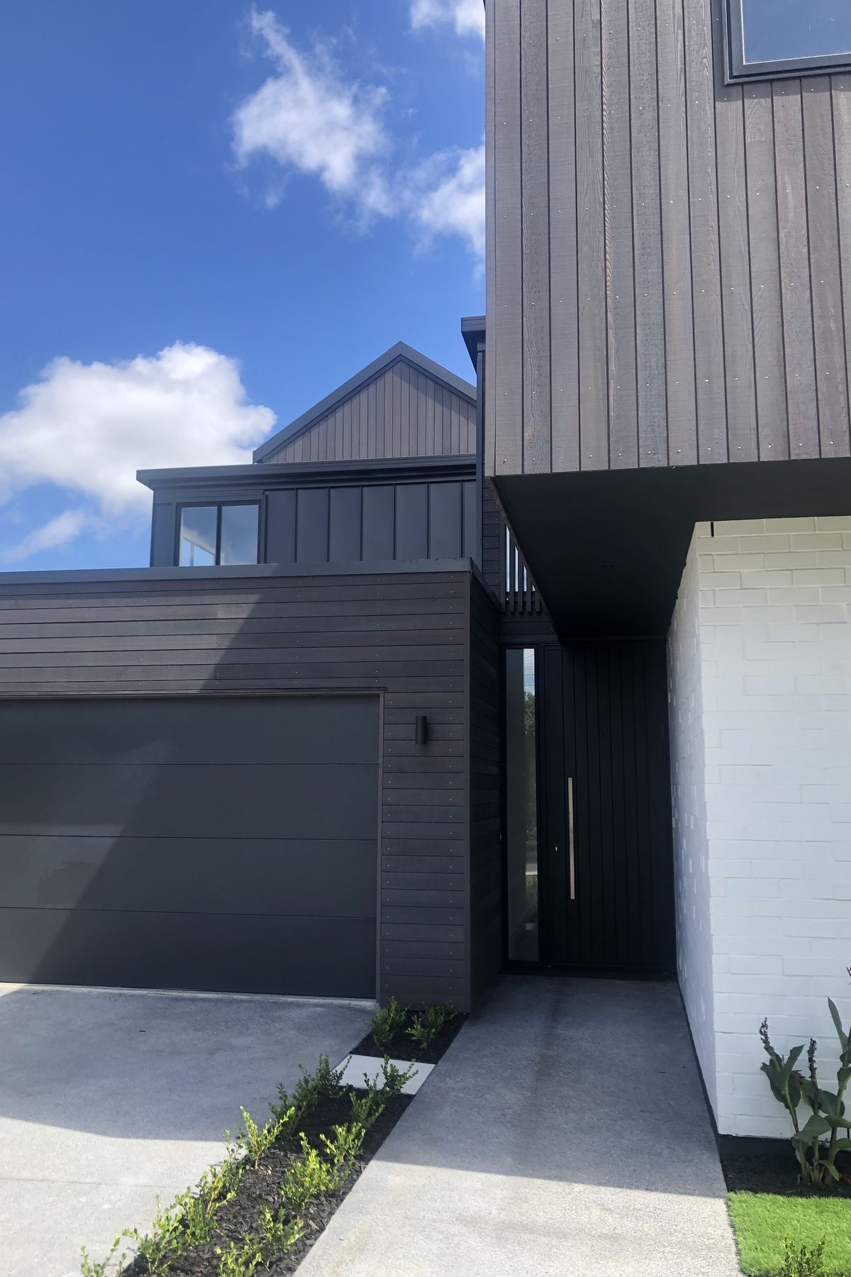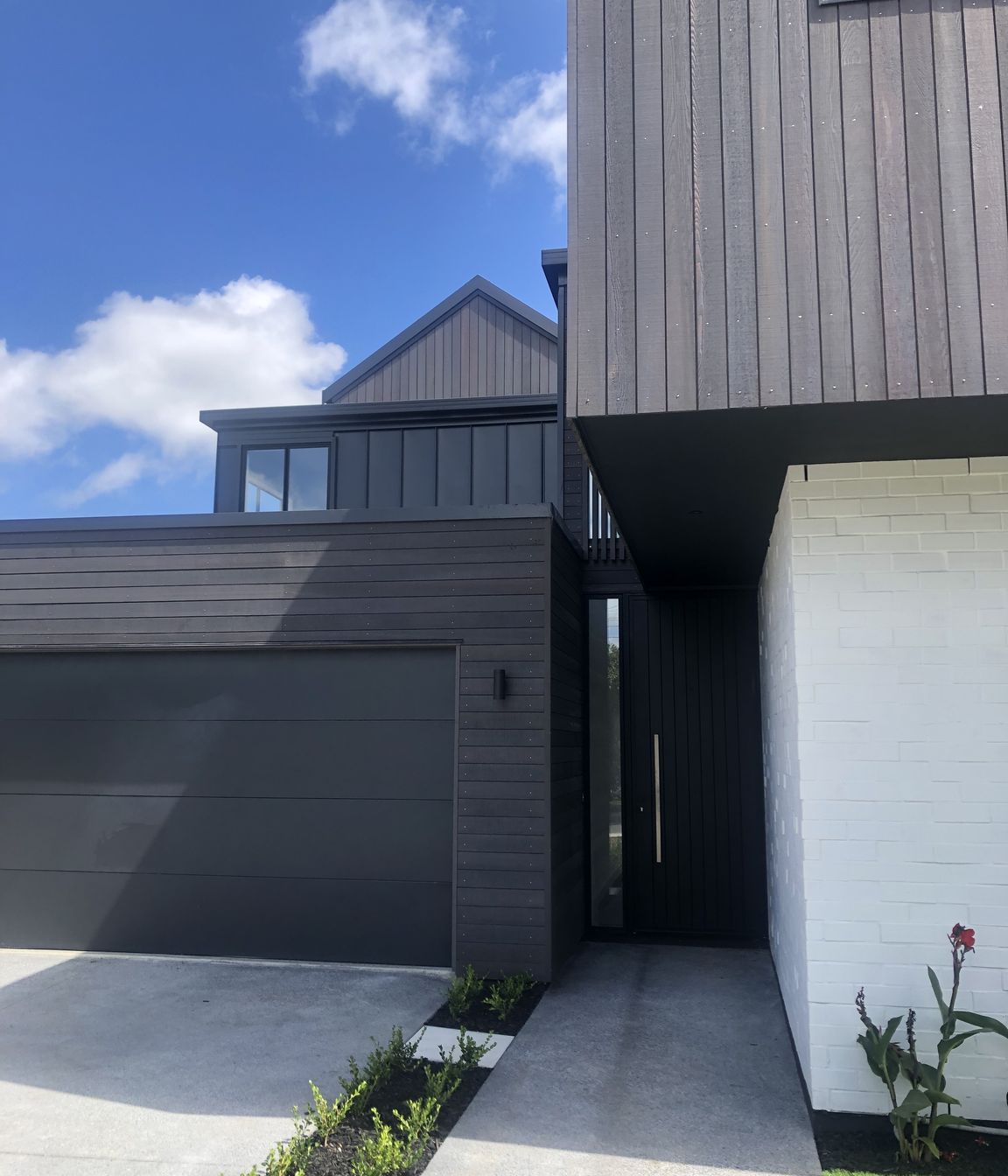 ArchiPro Project Summary - A striking blend of dark stained cedar, white painted brick, and steel cladding defines this modern home, featuring high pitched ceilings and open spaces that create a seamless flow from exterior to interior.