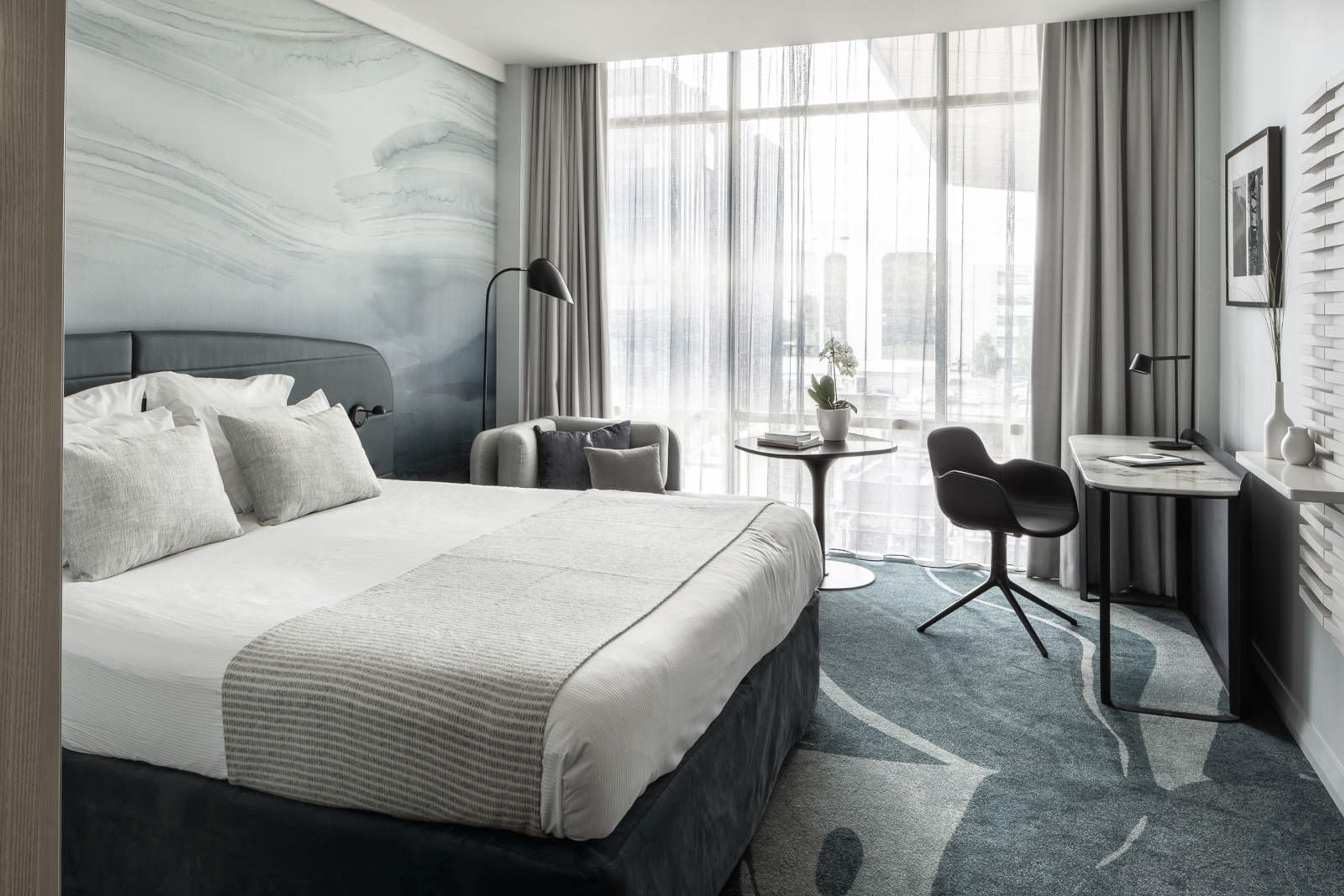 ArchiPro Project Summary - Innovative design for the Novotel Tainui, featuring a new extension and refurbishment of existing rooms, inspired by Tainui's deep connection to the Waikato River.