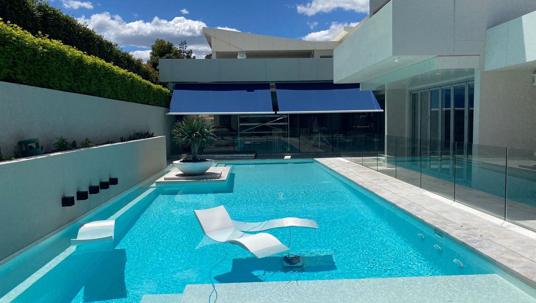 ArchiPro Project Summary - Custom motorised outdoor folding arm awning enhancing style and functionality in residential landscaping, completed in 2022.