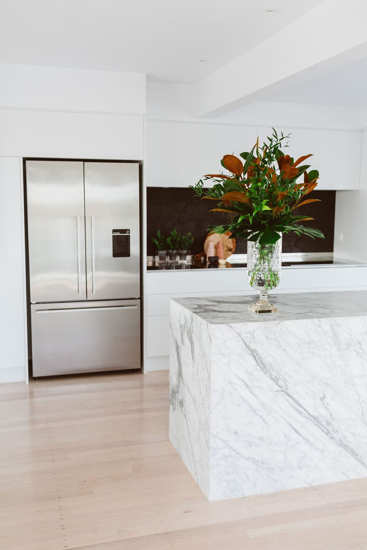 ArchiPro Project Summary - A revitalized 1960s beach house featuring custom cabinetry, Carrara marble benchtops, and seamless indoor-outdoor living through glass balustrades, blending modern aesthetics with classic coastal charm.