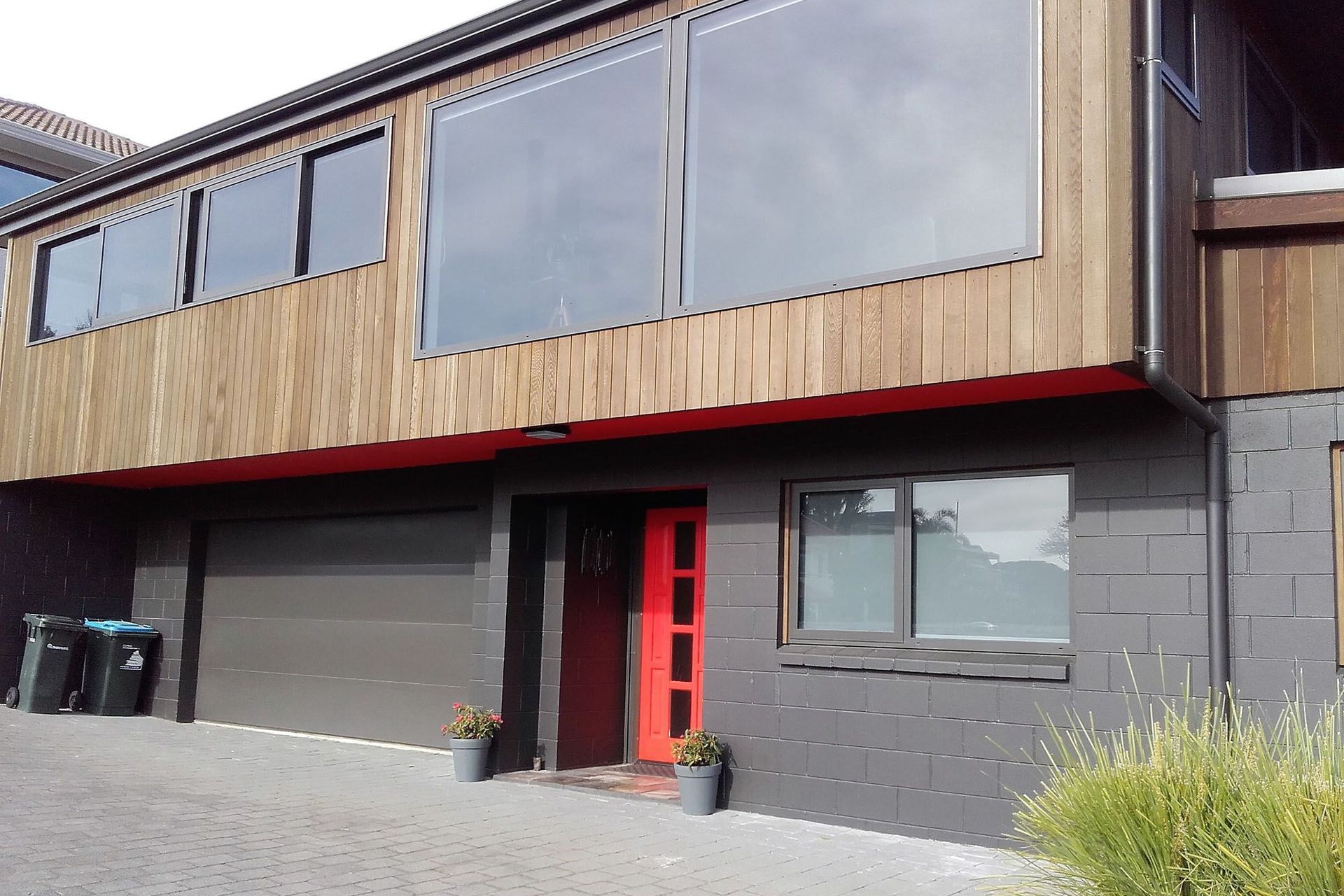 ArchiPro Project Summary - A contemporary transformation of a mid-eighties brick house in Mt Maunganui, featuring a self-contained flat on the lower level and an extended upper level with enclosed balcony for enhanced living space.