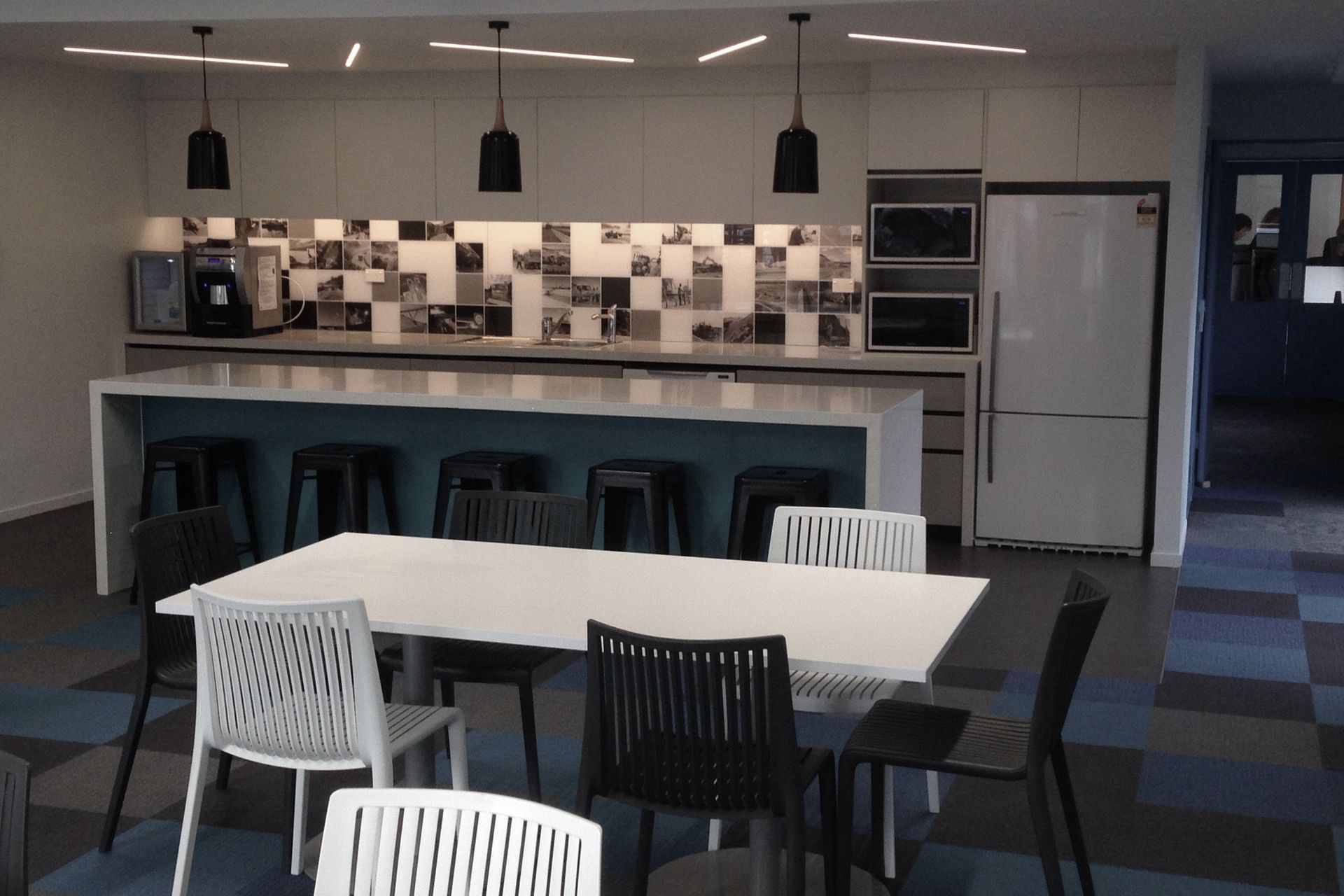 ArchiPro Project Summary - Comprehensive office re-model featuring exterior re-cladding, modern interior upgrades, architectural lighting, double glazed windows, heat-pumps, enhanced insulation, and improved facilities for staff including a kitchen area.