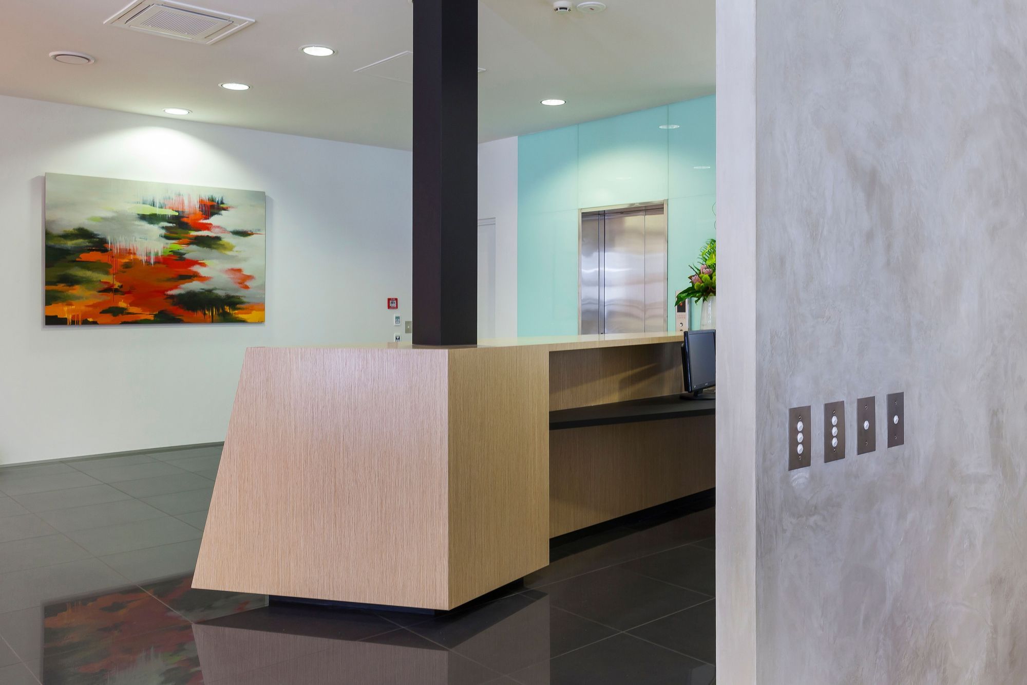 ArchiPro Project Summary - A contemporary office reception designed to create a welcoming atmosphere while reflecting the brand's identity, featuring modern furnishings and efficient space utilization for optimal visitor experience.