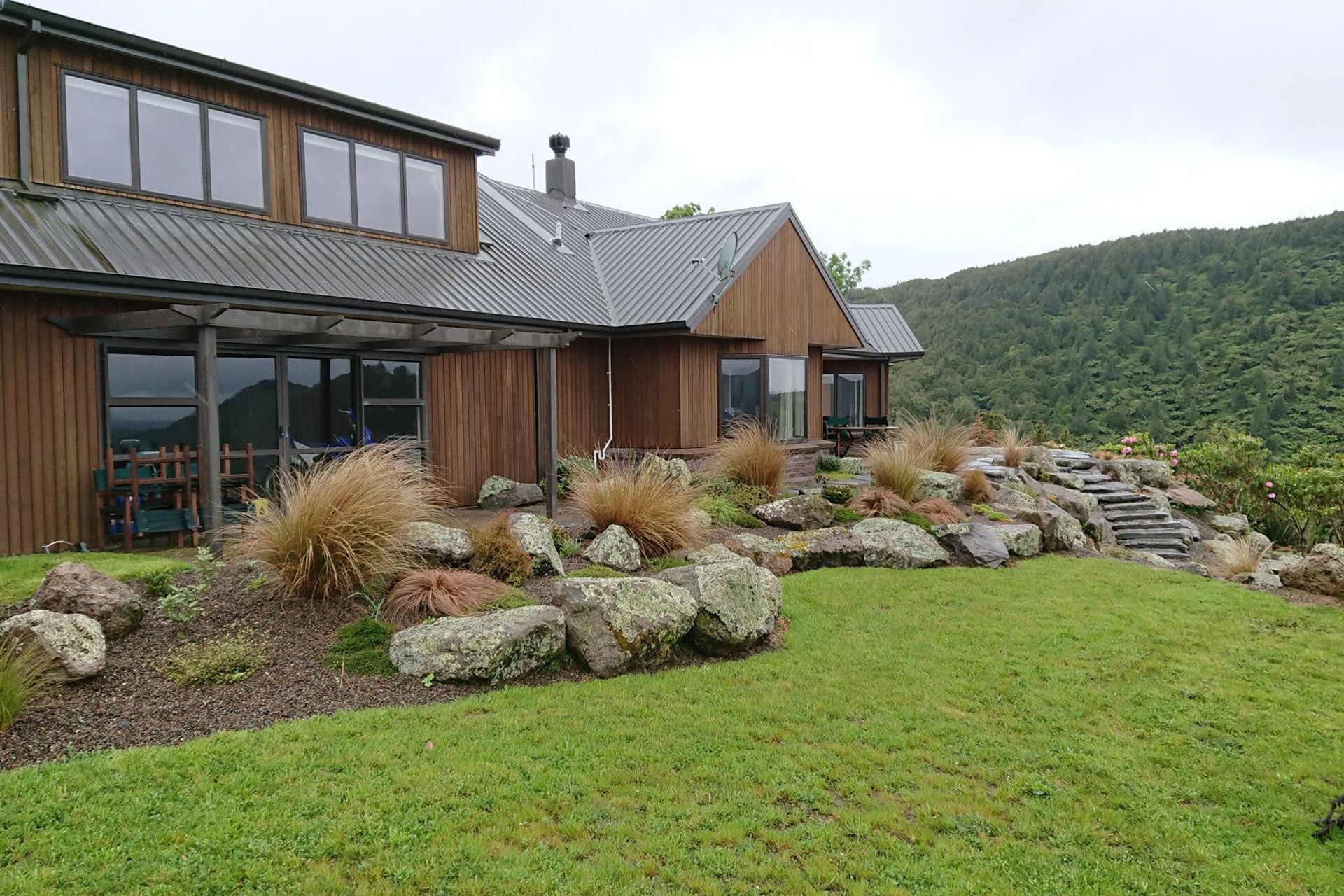 ArchiPro Project Summary - A stunning deer farm and forestry block featuring an elevated homestead with breathtaking views of Lake Okareka and Mt Tarawera, enhanced gardens, and a major refurbishment of recreational spaces, creating a remarkable leisure environment.