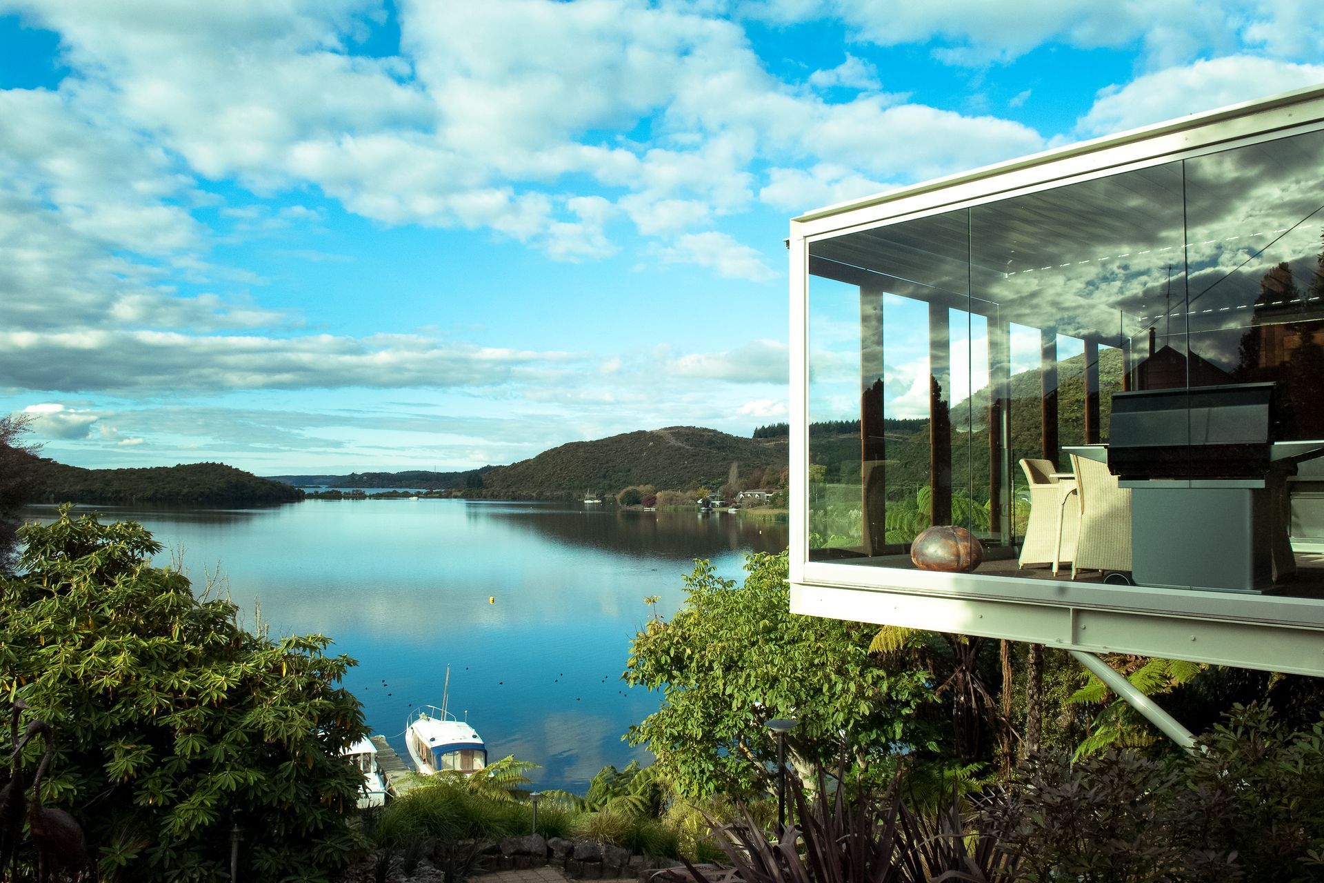 ArchiPro Project Summary - Total refurbishment of a holiday home into a permanent residence, featuring a cantilevered steel structure that enhances outdoor living and connects with the stunning landscape of Okawa Bay, Lake Rotoiti.