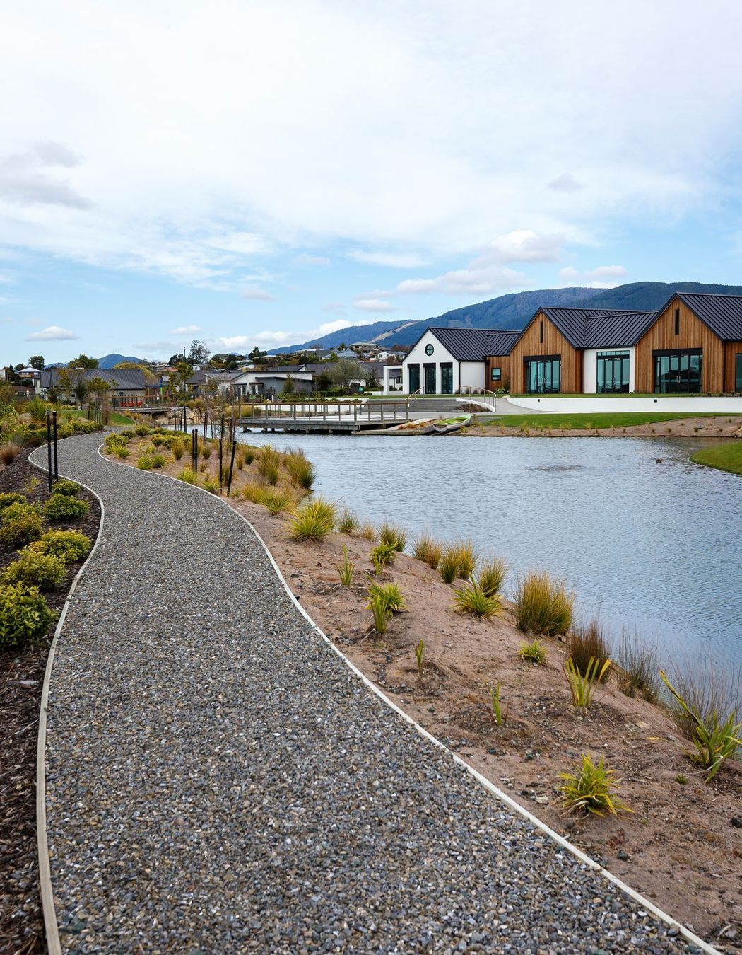 ArchiPro Project Summary - Olive Estate Lakehouse: A coastal vernacular-inspired architectural gem, harmoniously situated beside a feature pond, featuring innovative construction techniques and a natural riverside aesthetic that enhances the village's unique character.