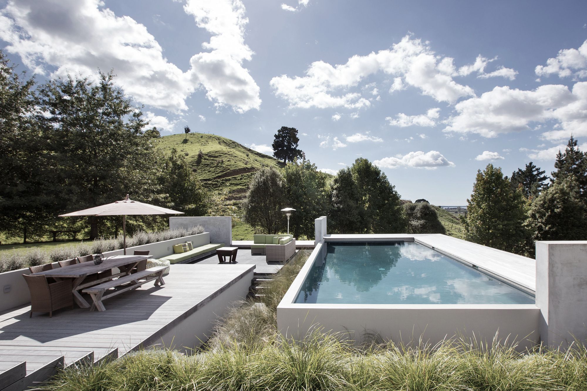ArchiPro Project Summary - Idyllic country setting featuring a relaxing outdoor entertainment area and a heated pool.