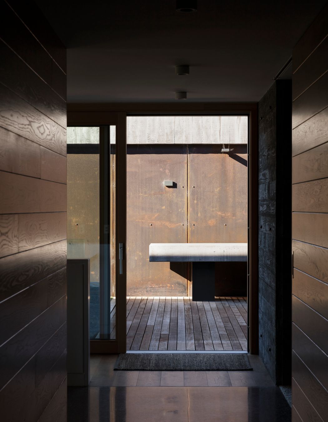 A close-knit collaborative team of local contractors and consultants worked hard to deliver this well-crafted home, incorporating materials, finishes and products that beautifully reflect its context. “The architectural finishes really came from the simple yet evocative brief that we were given from the owners,” he explains. “They were looking for things like permanence, robustness, practicality, texture, warmth, sustainability and ‘being of this land’, so we looked at the landscape for inspiration. We used natural and local stone, Corten steel, concrete and interior timbers that don’t need much maintenance at all and have a beautiful richness of expression.”