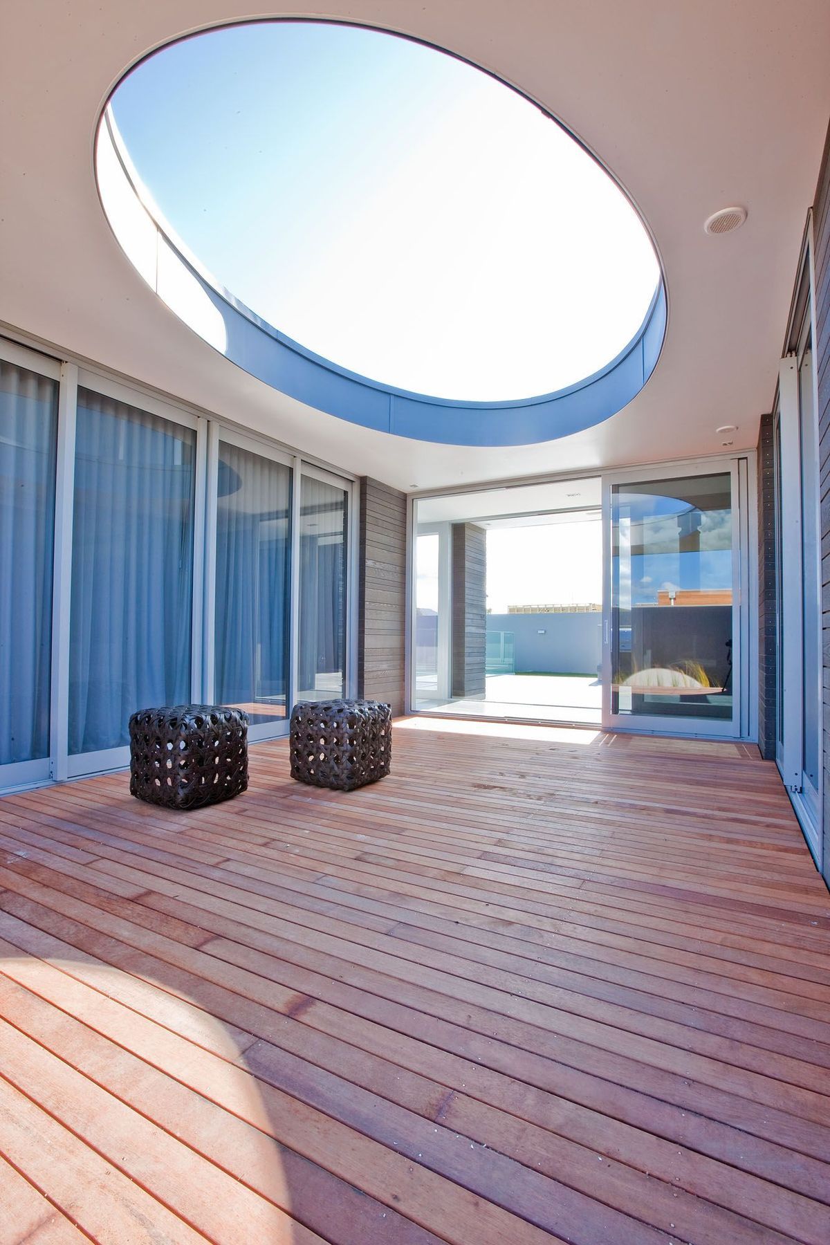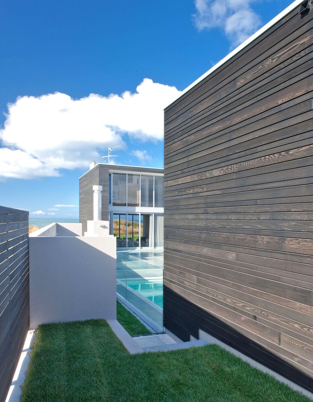 A textured timber-clad summer retreat offering stunning ocean views and a private courtyard, designed for offshore clients to enjoy memorable gatherings with friends and family.