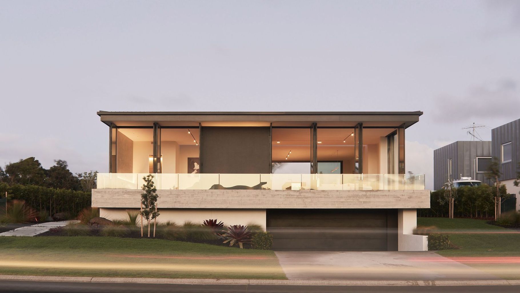 “It was this aspect that resulted in the creation of the private, west-facing courtyard and which also largely dictated the height for the entire main level floor plate. The east-facing section of the house has no side windows, however, the generous ceiling height and floor-to-ceiling glazing, ensures the outlook, while not coastal viewing, captures ample morning sun. Likewise, the elevation above the road creates privacy.”