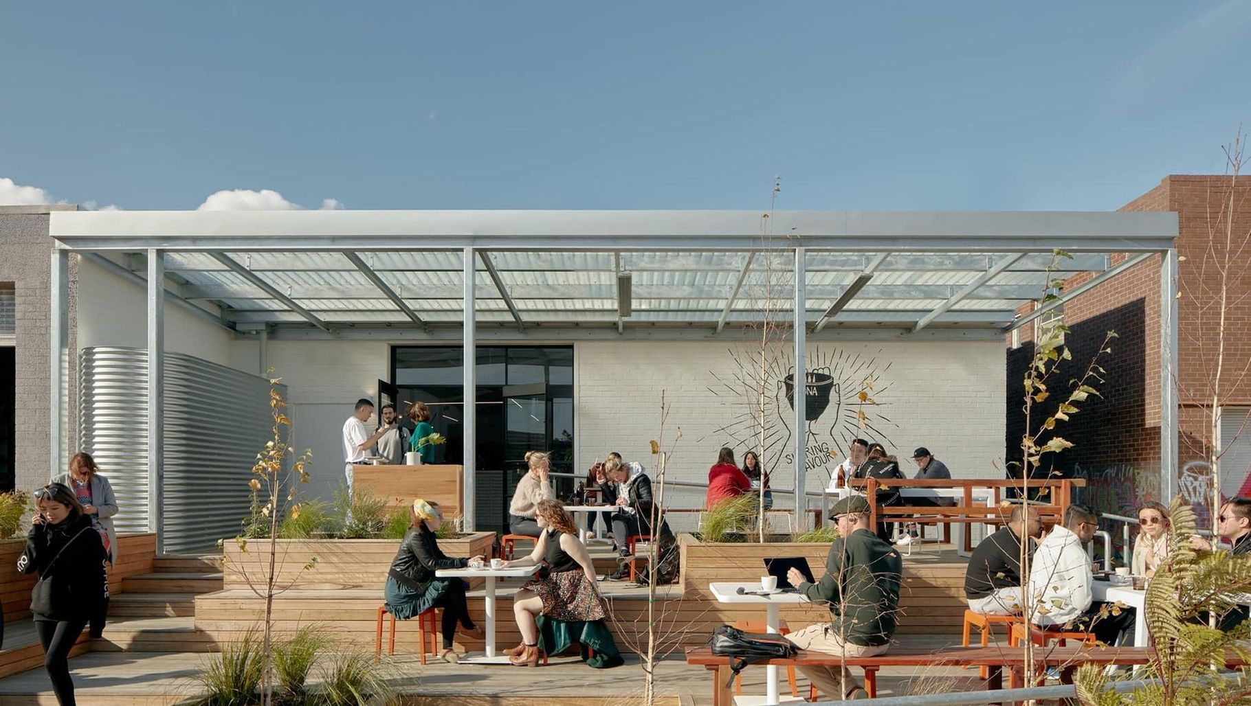 ArchiPro Project Summary - Ona Coffee Melbourne: A sustainable café in a converted Brunswick warehouse, featuring a welcoming atmosphere, reclaimed materials, and a focus on community engagement and coffee education.