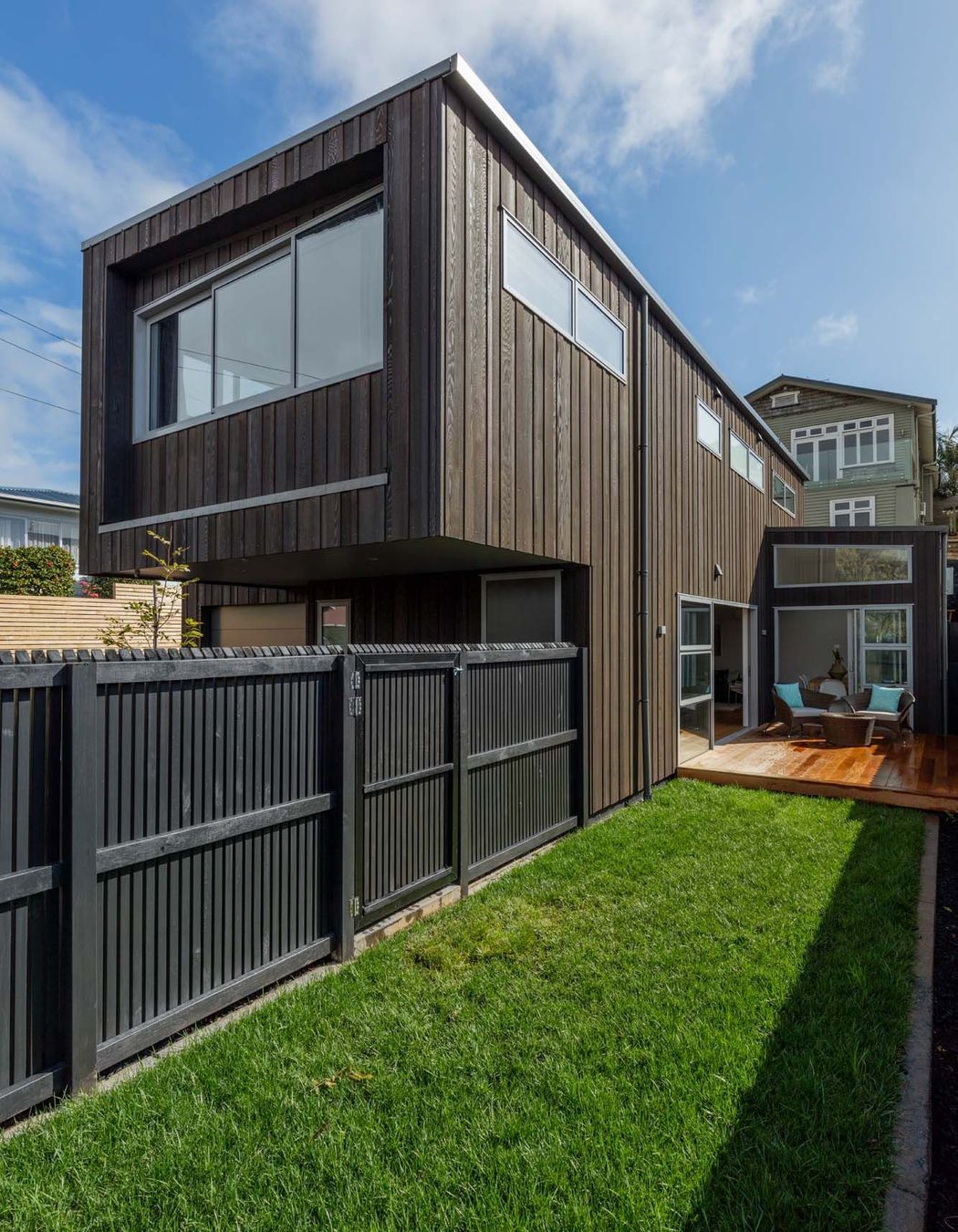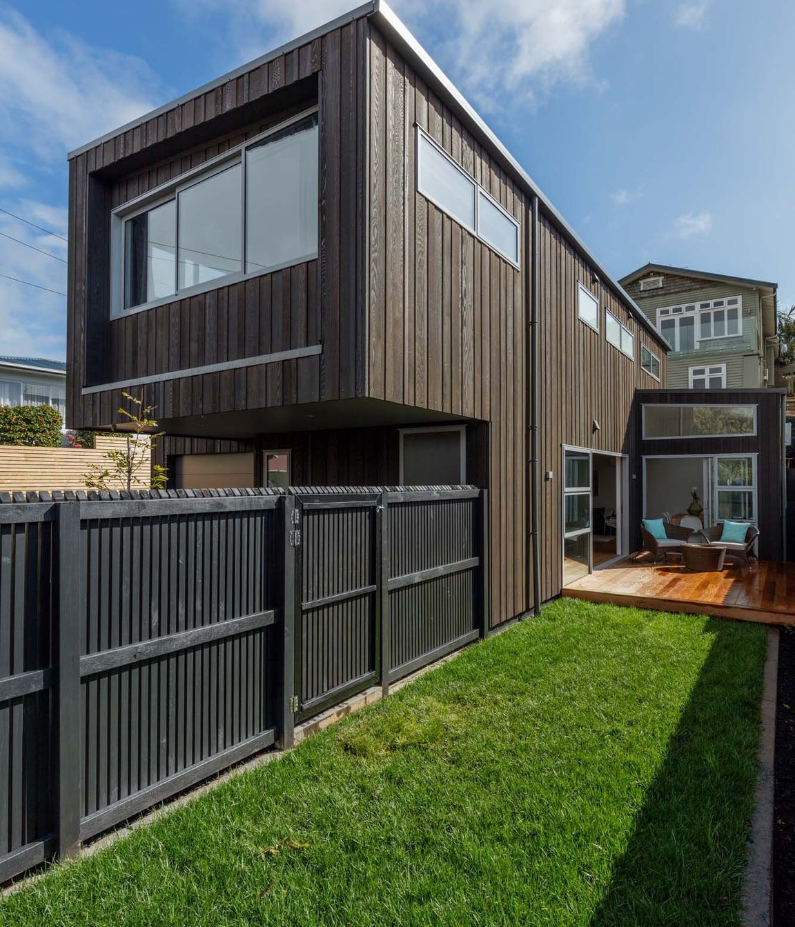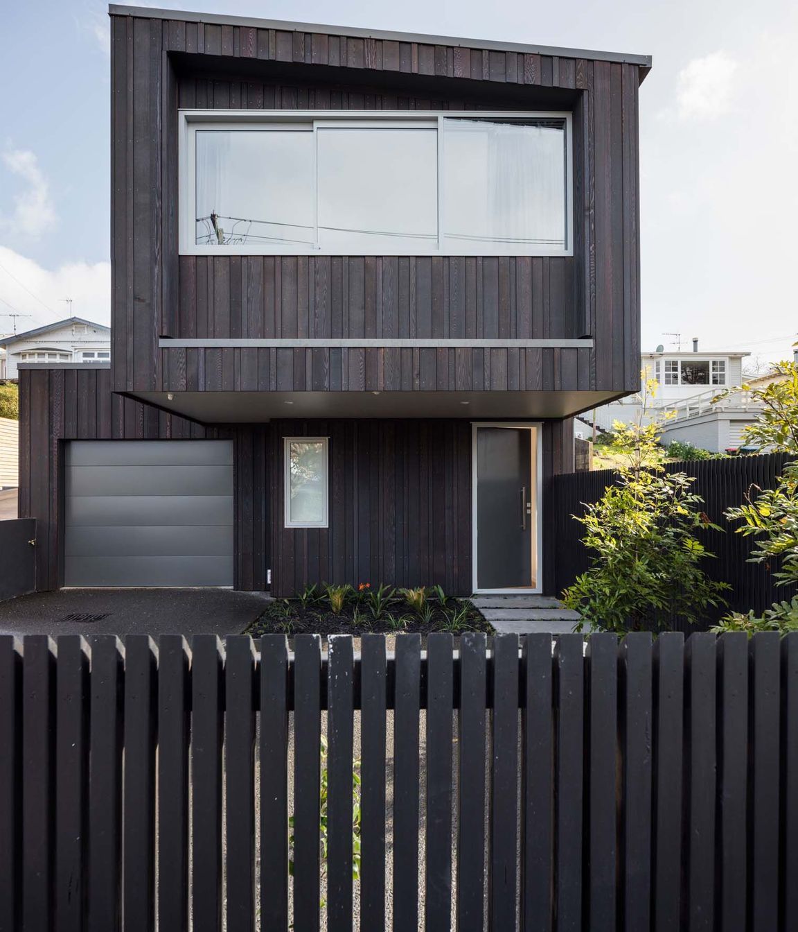 ArchiPro Project Summary - A stylish, modern cantilevered cedar-clad dwelling designed for a busy Auckland couple, maximizing a compact sloping site while addressing council requirements and ensuring privacy and views.