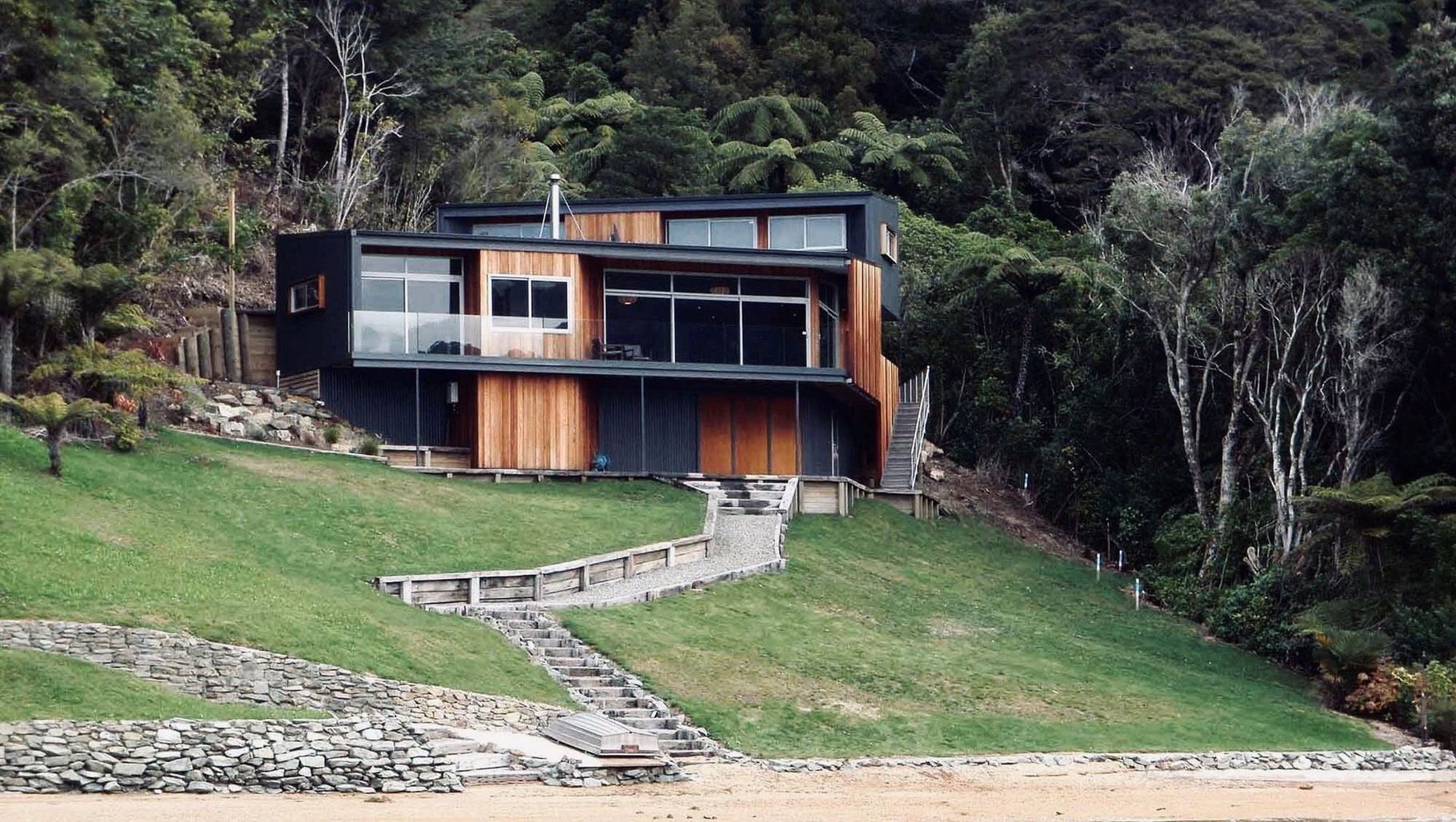 ArchiPro Project Summary - Onekoura Bach: A holiday house in Queen Charlotte Sound, designed to harmonize with its stunning surroundings while prioritizing simplicity, sustainability, and functionality.