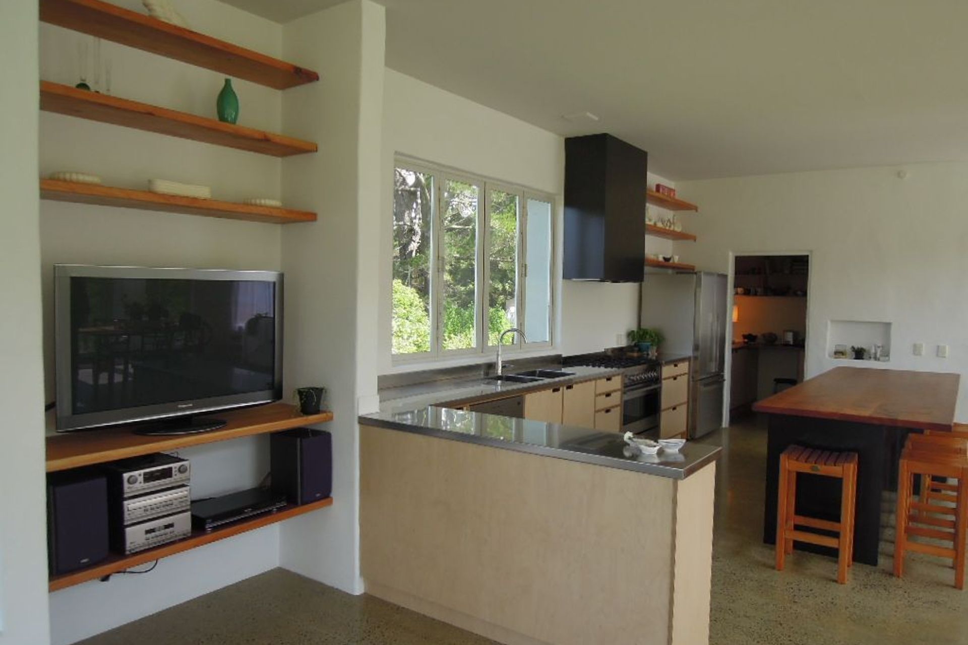 ArchiPro Project Summary - Thoughtfully designed additions and a modern kitchen enhance the connection of an unfinished masonry blockhouse to its site, featuring a new cedar pergola, triple car garage, and a refreshed living area with a functional scullery.