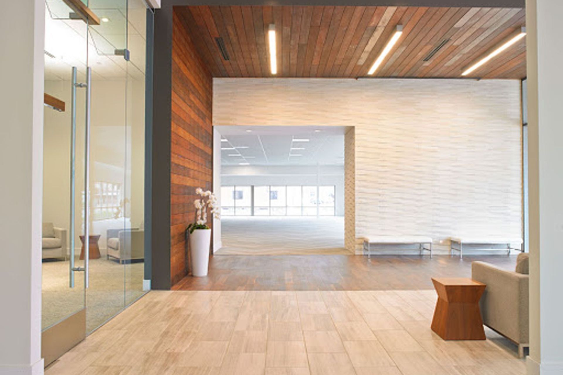 ArchiPro Project Summary - Renovation of 30,000M2 office space at Orchard Commons, featuring Rustic II cladding in Tropical White Limestone, harmonizing with cold-rolled steel and wood, while enhancing the interior's fresh, light ambiance.