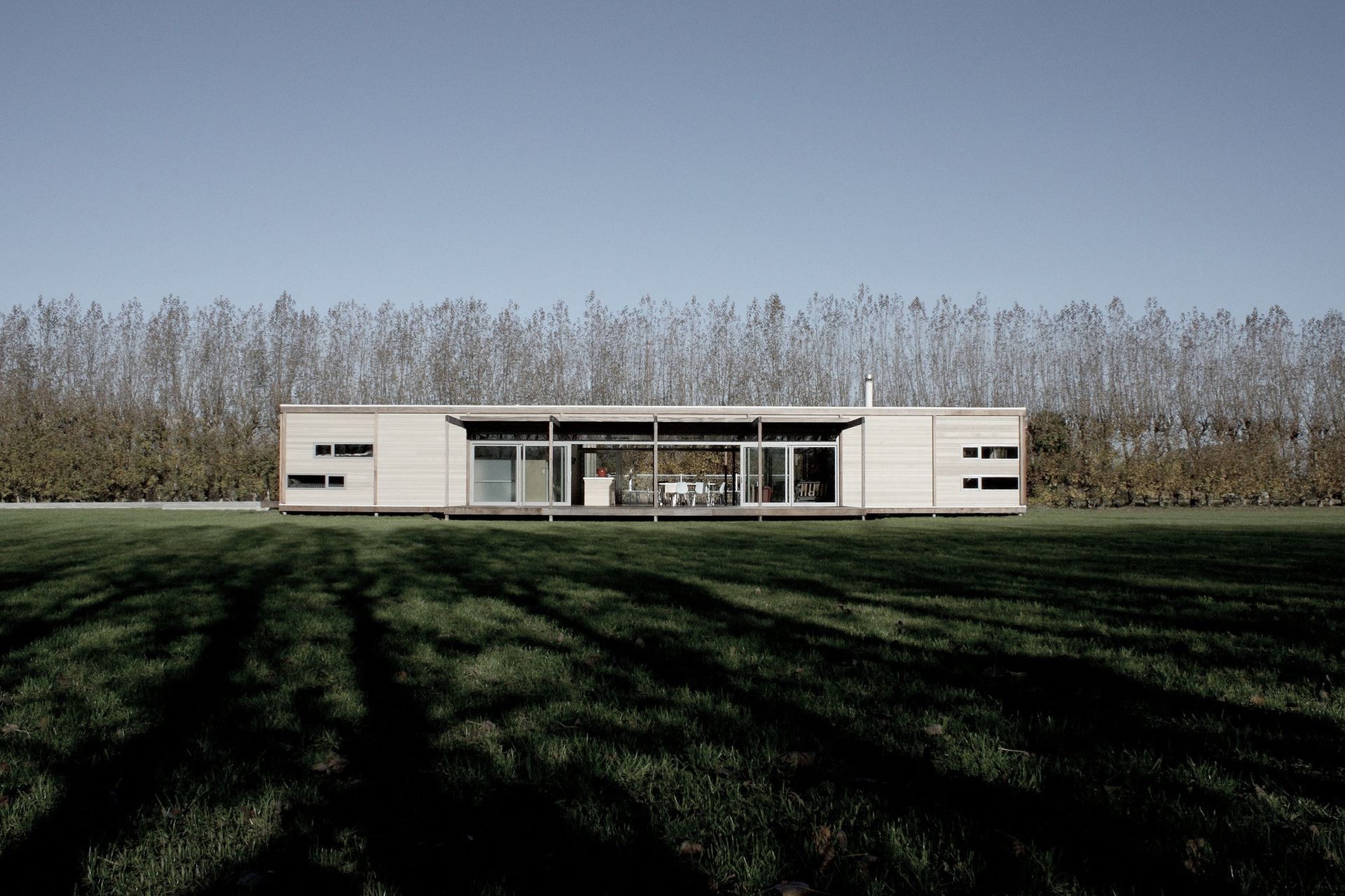 ArchiPro Project Summary - A unique holiday home in New Zealand's North Island, inspired by apple crates, featuring two interconnected boxes, sustainable design principles, and a façade that pays homage to its orchard origins.