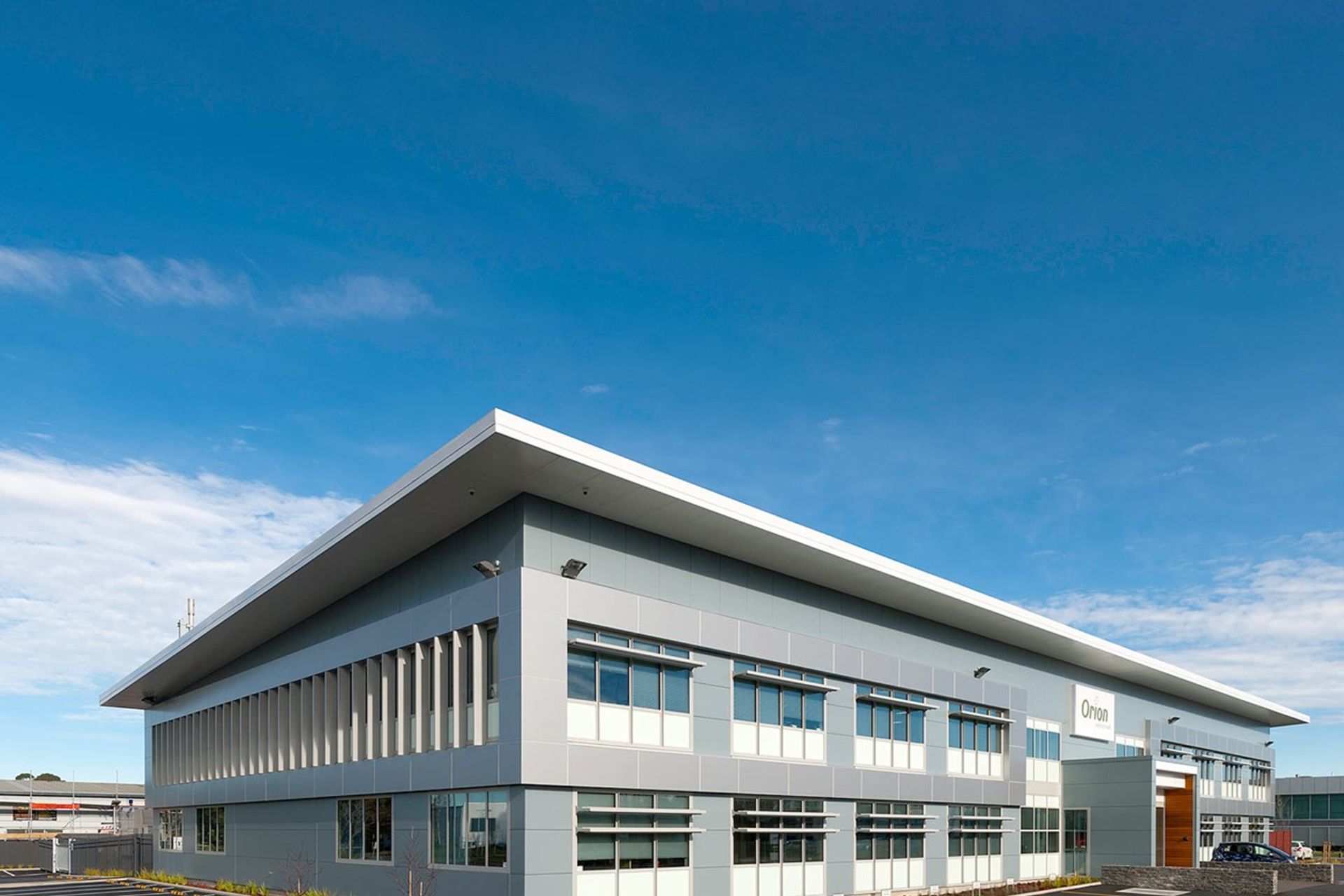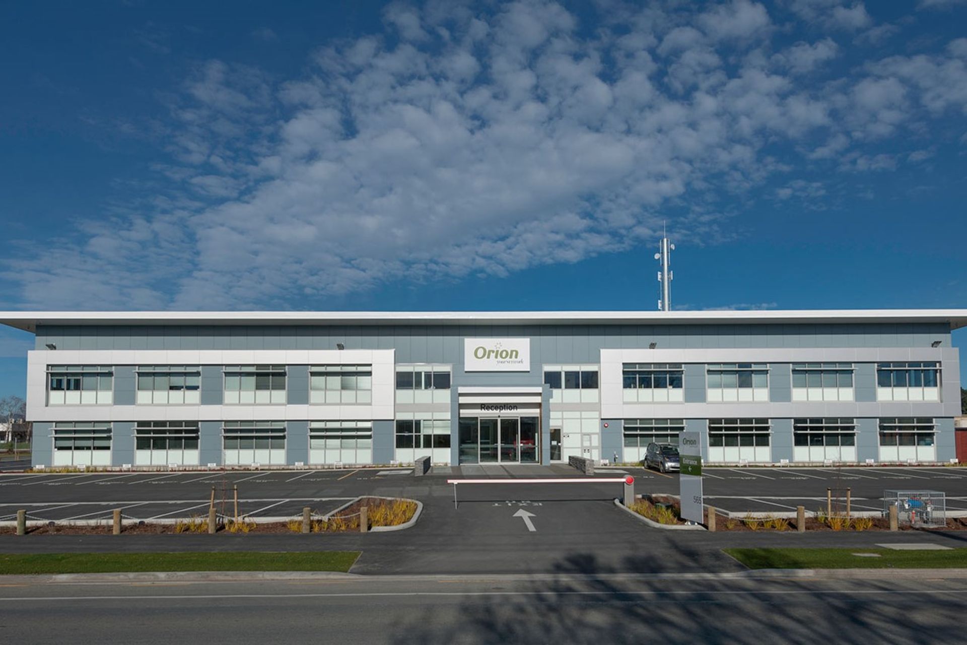 ArchiPro Project Summary - Orion's 3,200m² head office and network depot in Christchurch features a structural steel frame, advanced insulation, and a central command unit, meeting IL4 code requirements for critical infrastructure, completed in May 2013.