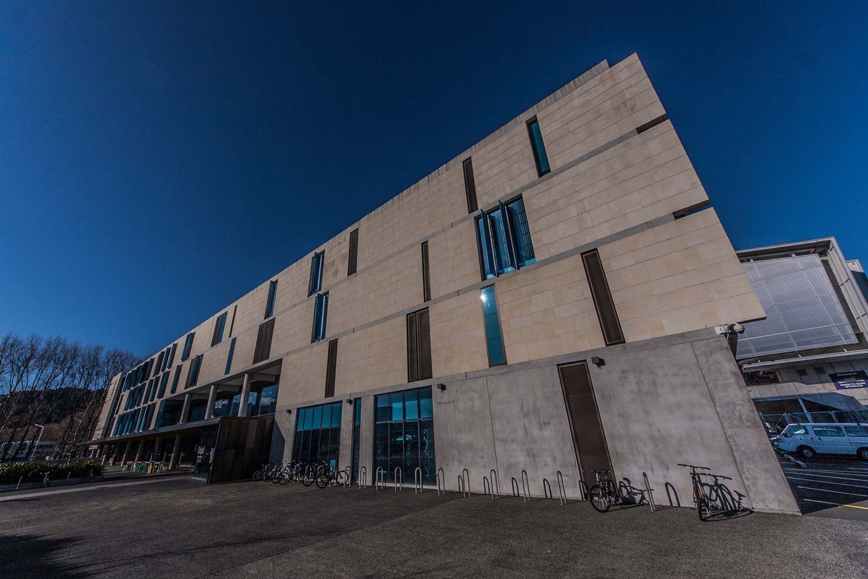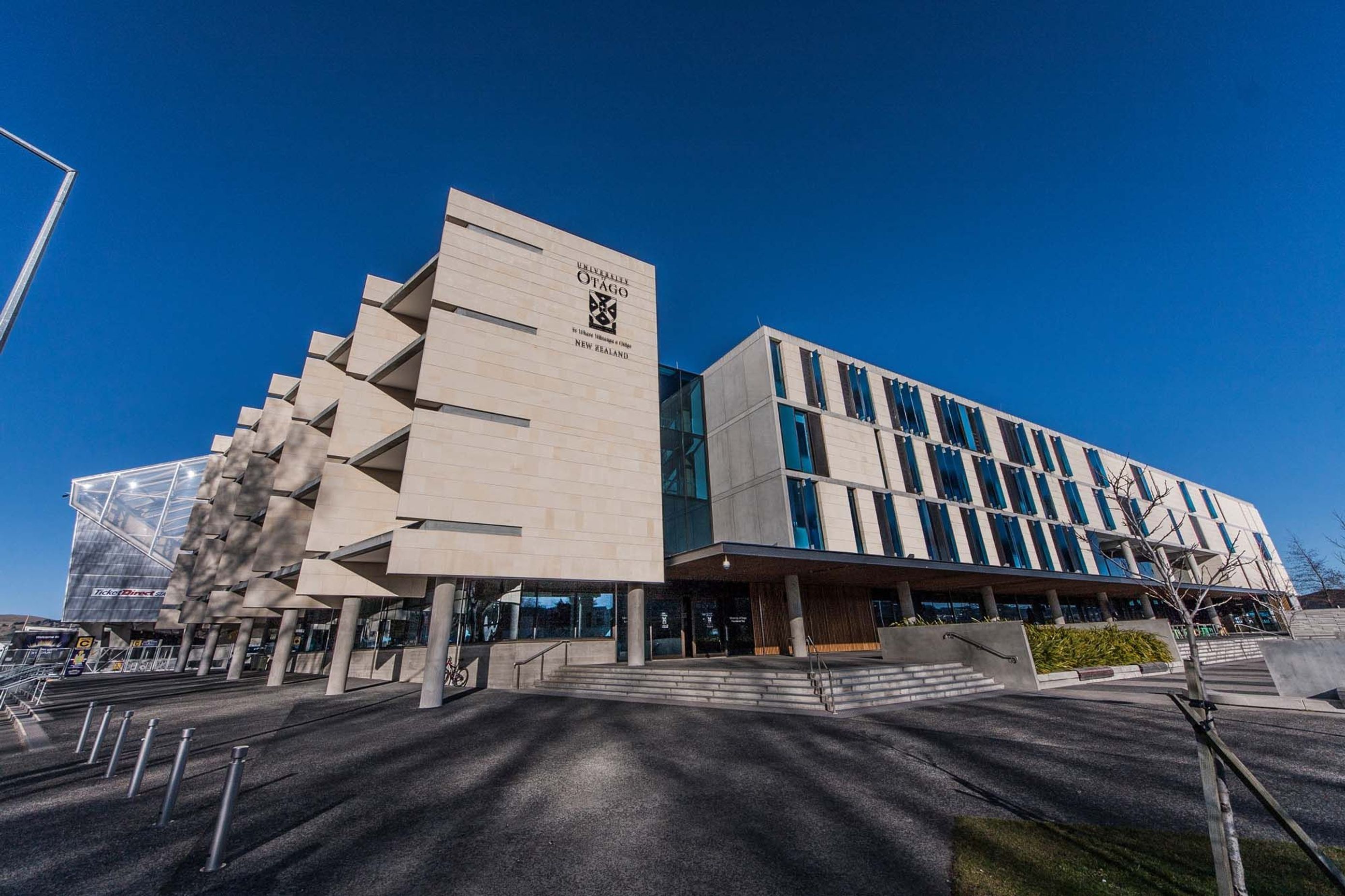 ArchiPro Project Summary - Otago Stadium features durable and aesthetically pleasing Oamaru Stone limestone cladding, expertly crafted to ensure a striking and timeless exterior, reflecting the natural beauty of the Otago region.