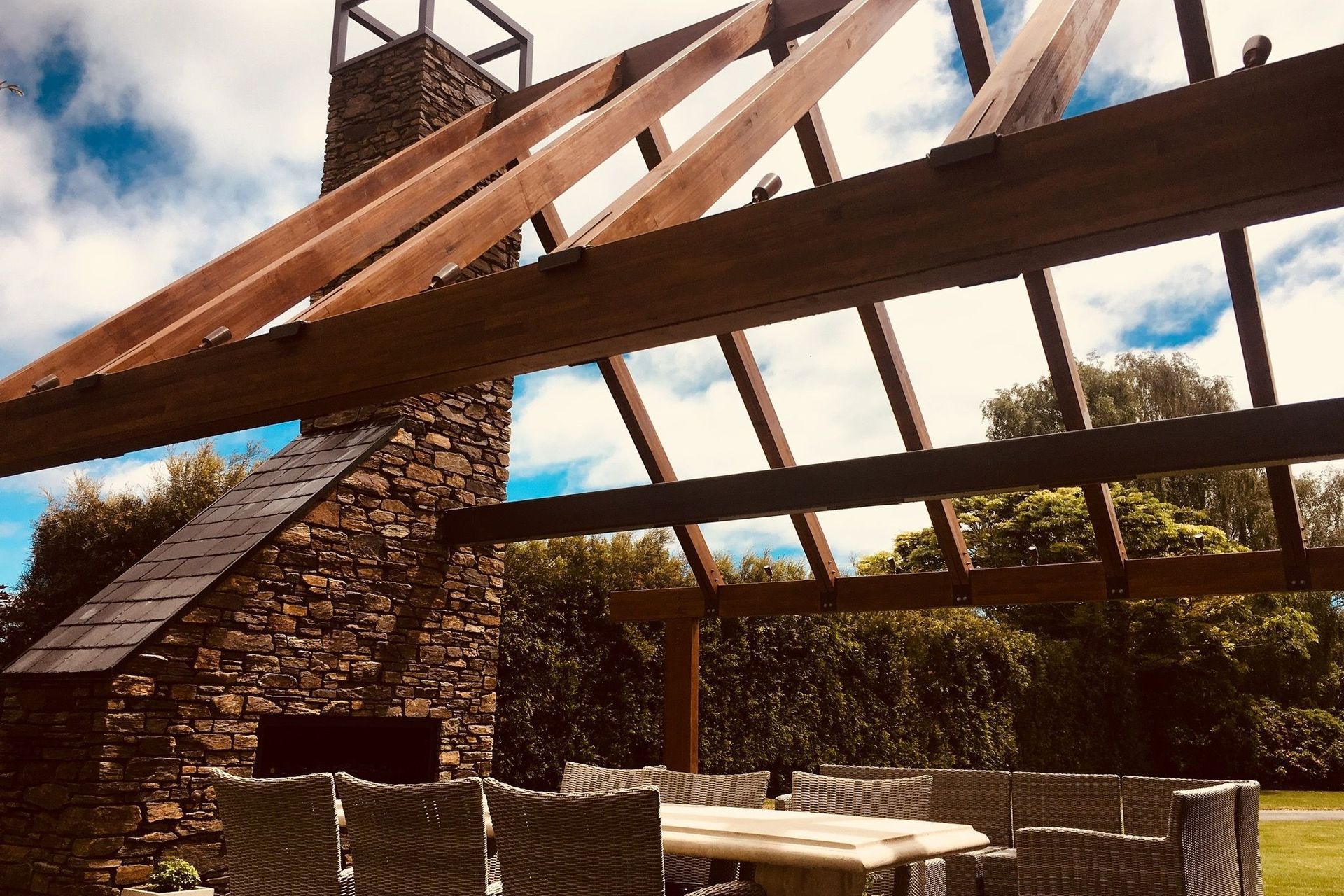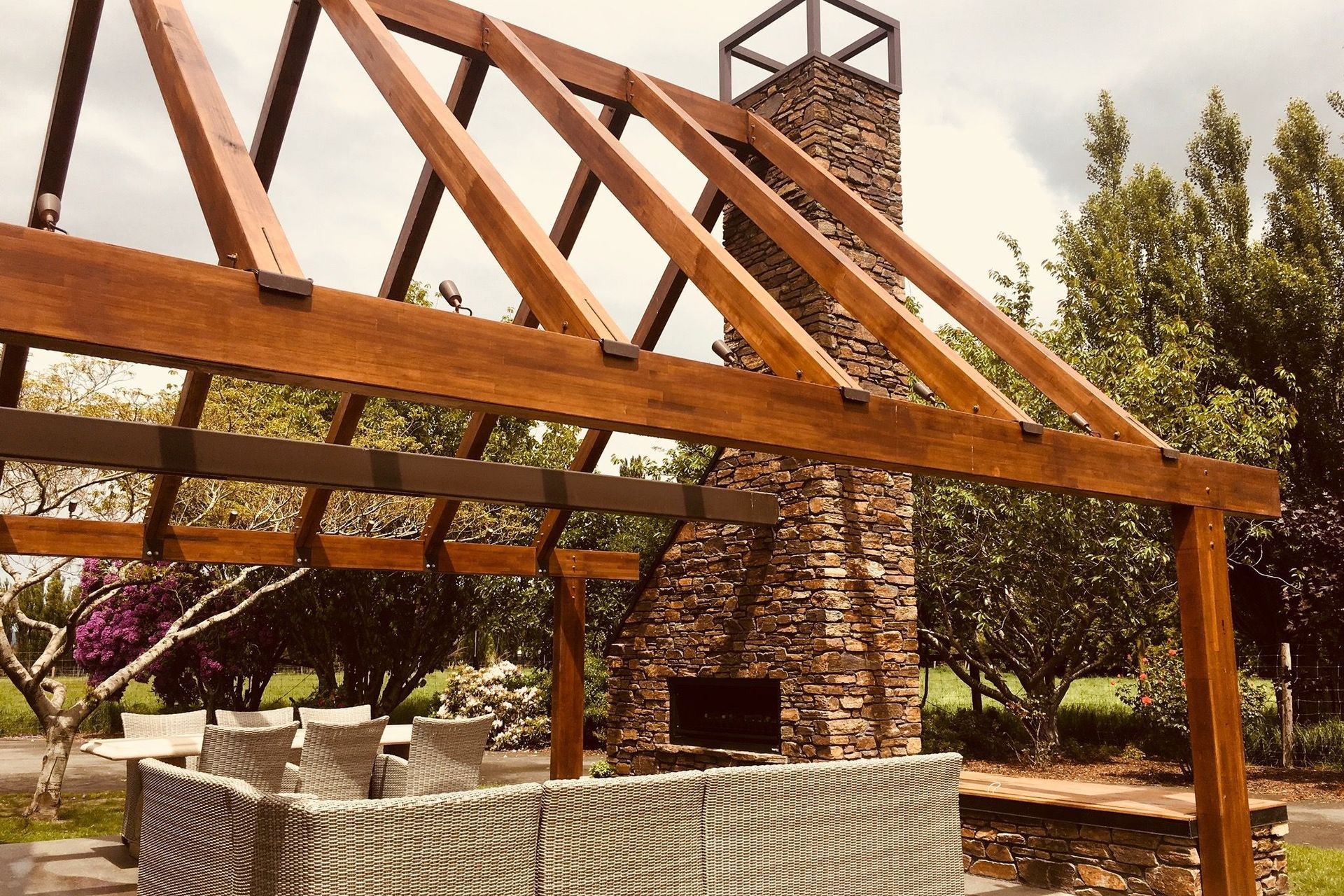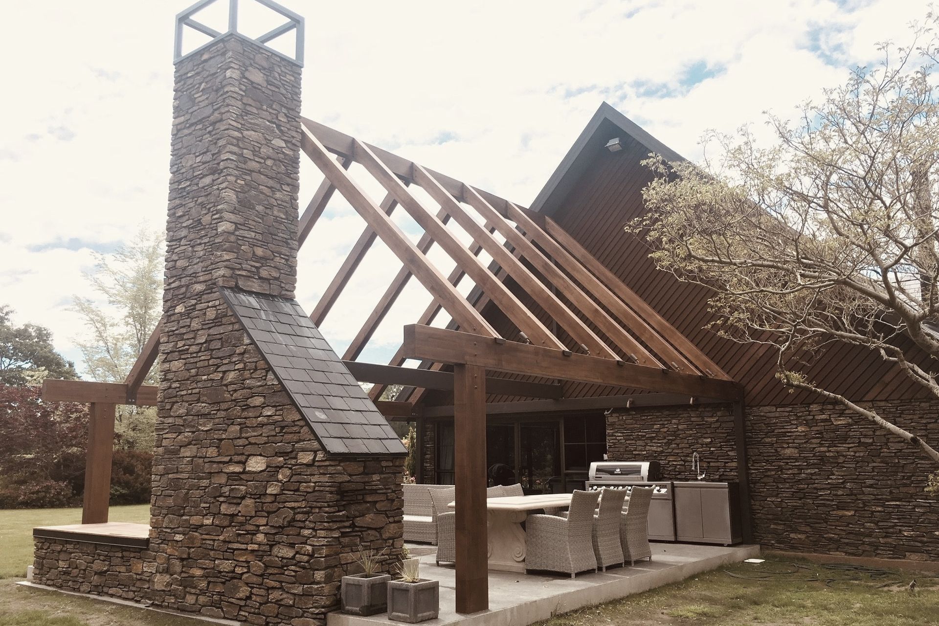 ArchiPro Project Summary - Thoughtfully designed outdoor fire patio extension that enhances the existing architecture while providing a protected and inviting entertainment space.
