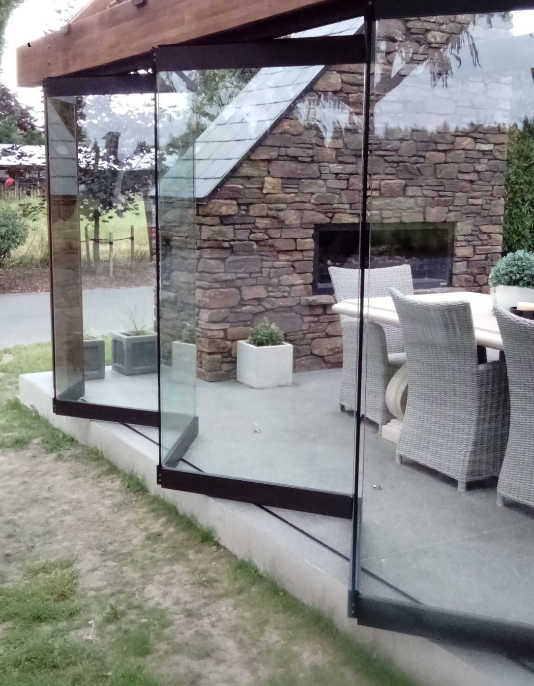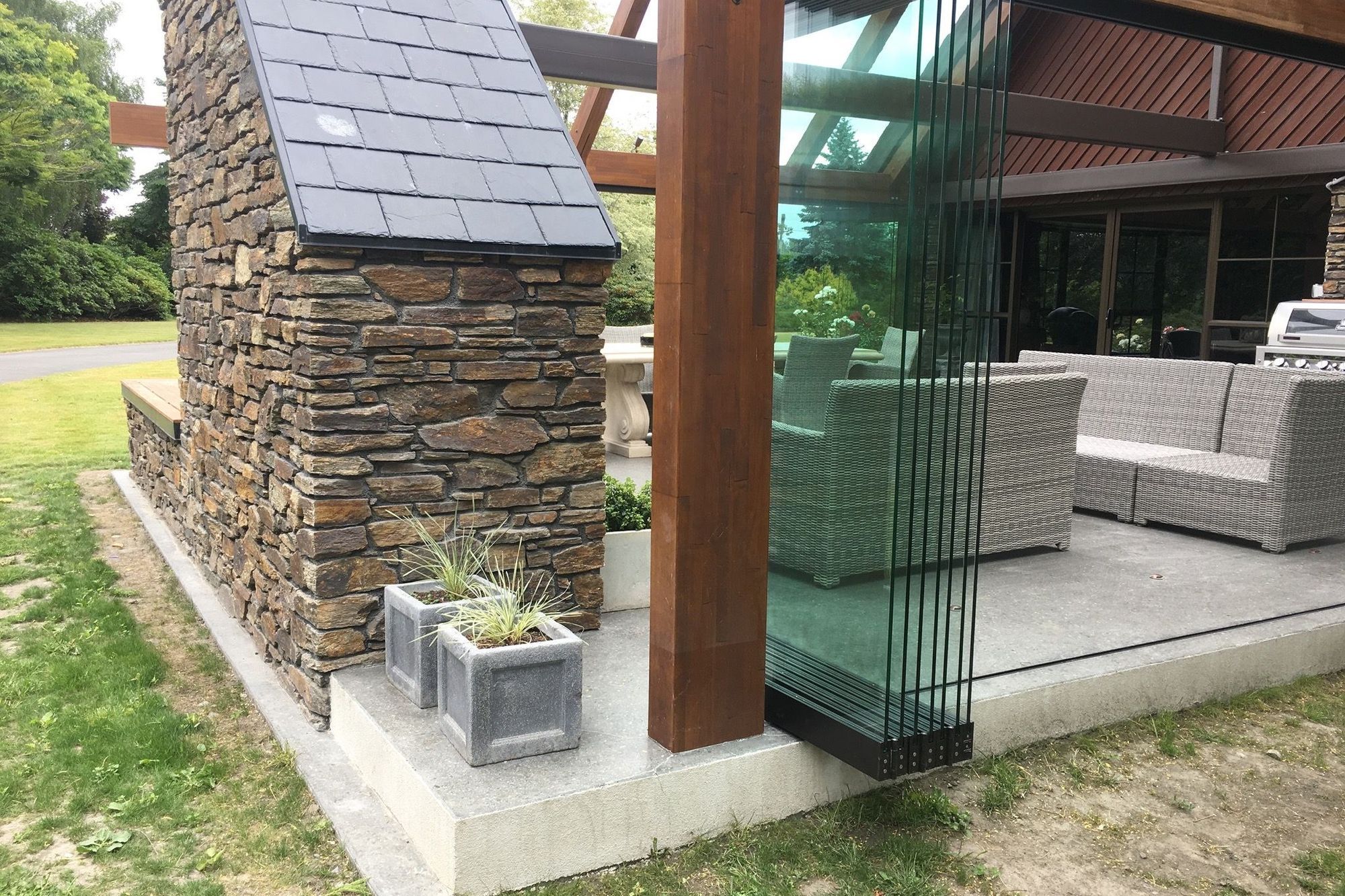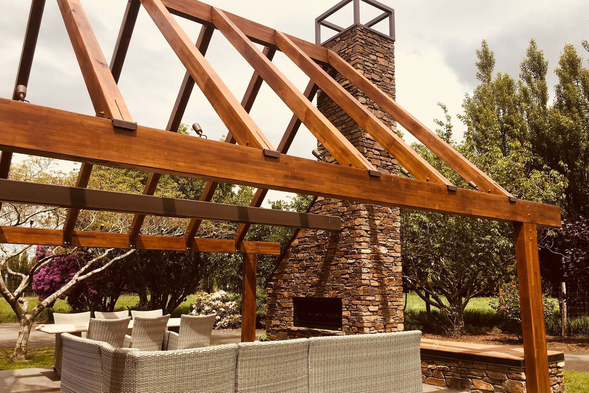 ArchiPro Project Summary - Thoughtfully designed outdoor fire patio extension that enhances the existing architecture while providing a protected and inviting entertainment space.