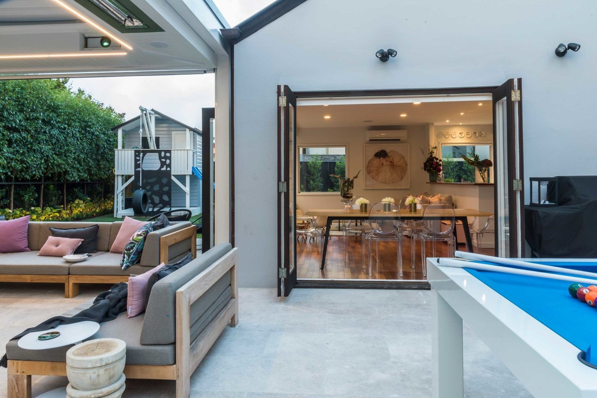 ArchiPro Project Summary - Comprehensive outdoor renovation in Remuera featuring automated audio, visual, and lighting systems, enhancing family lifestyle with a hidden projector, multiple speaker zones, and integrated control for a seamless outdoor experience.