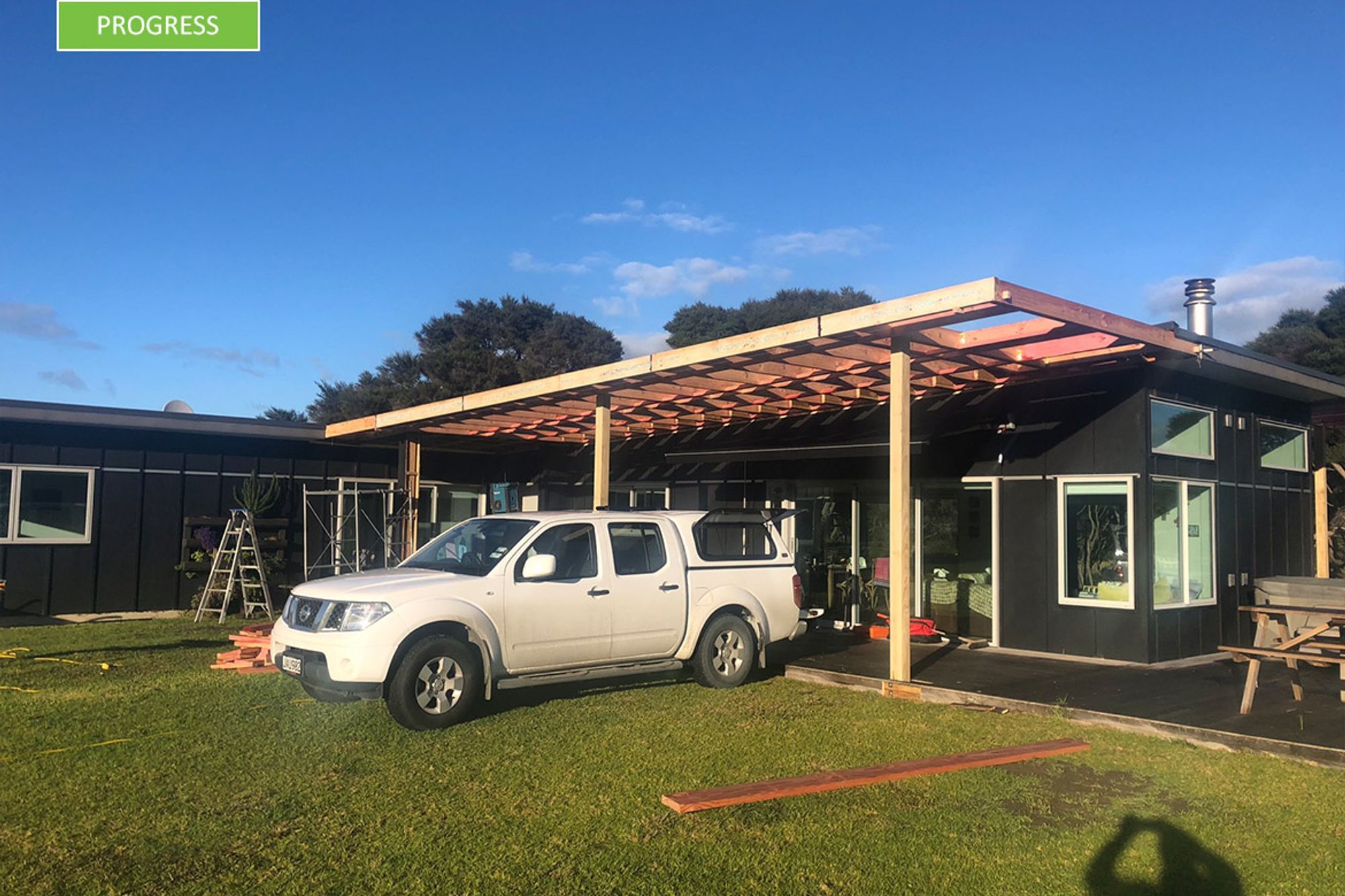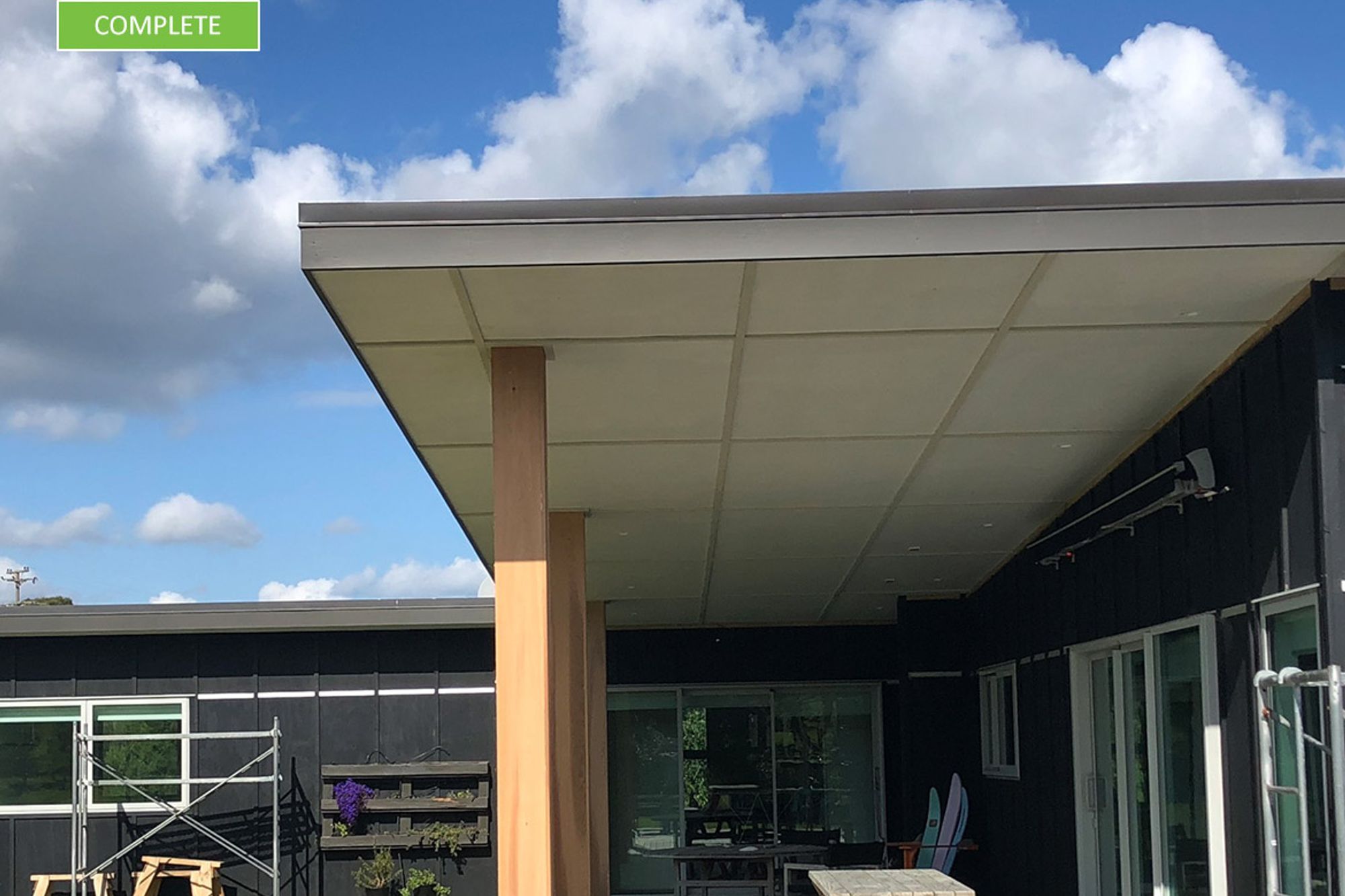 ArchiPro Project Summary - A comprehensive renovation featuring expansive roof structures over dual decks, including demolition, new foundations, robust framing, and innovative cladding, resulting in a versatile outdoor living space suitable for all weather conditions.
